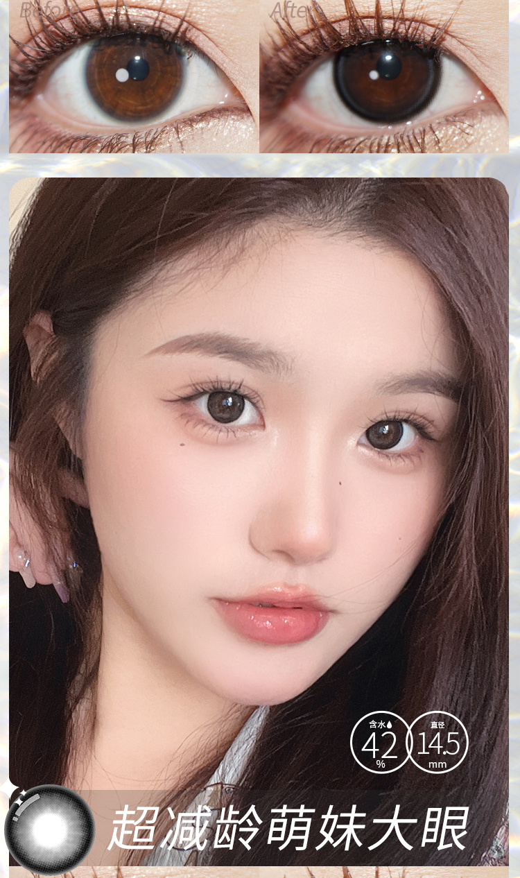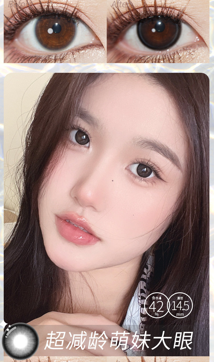 新款【超大芭比学院黑灰】14.5大直径半年抛美瞳1片装