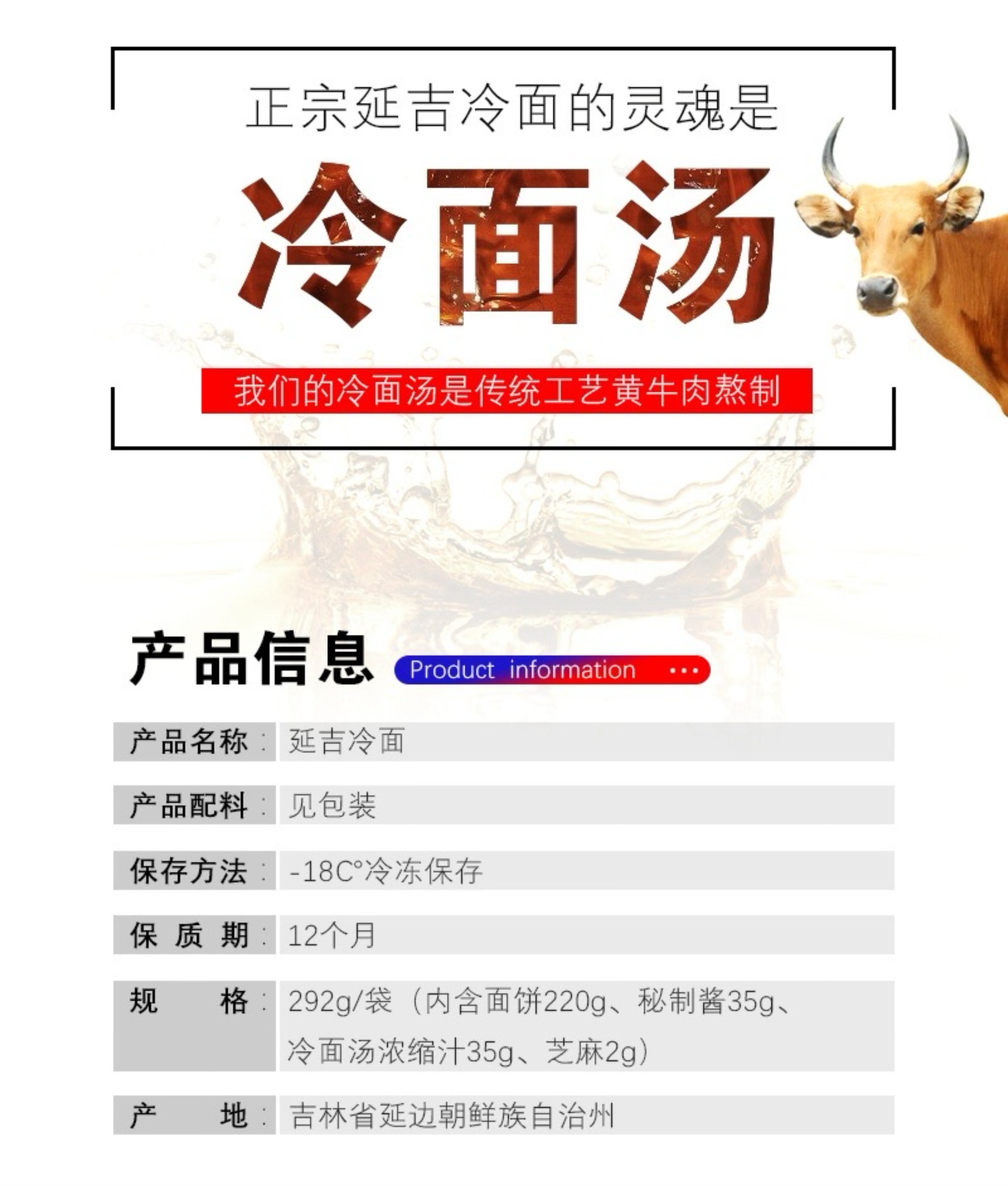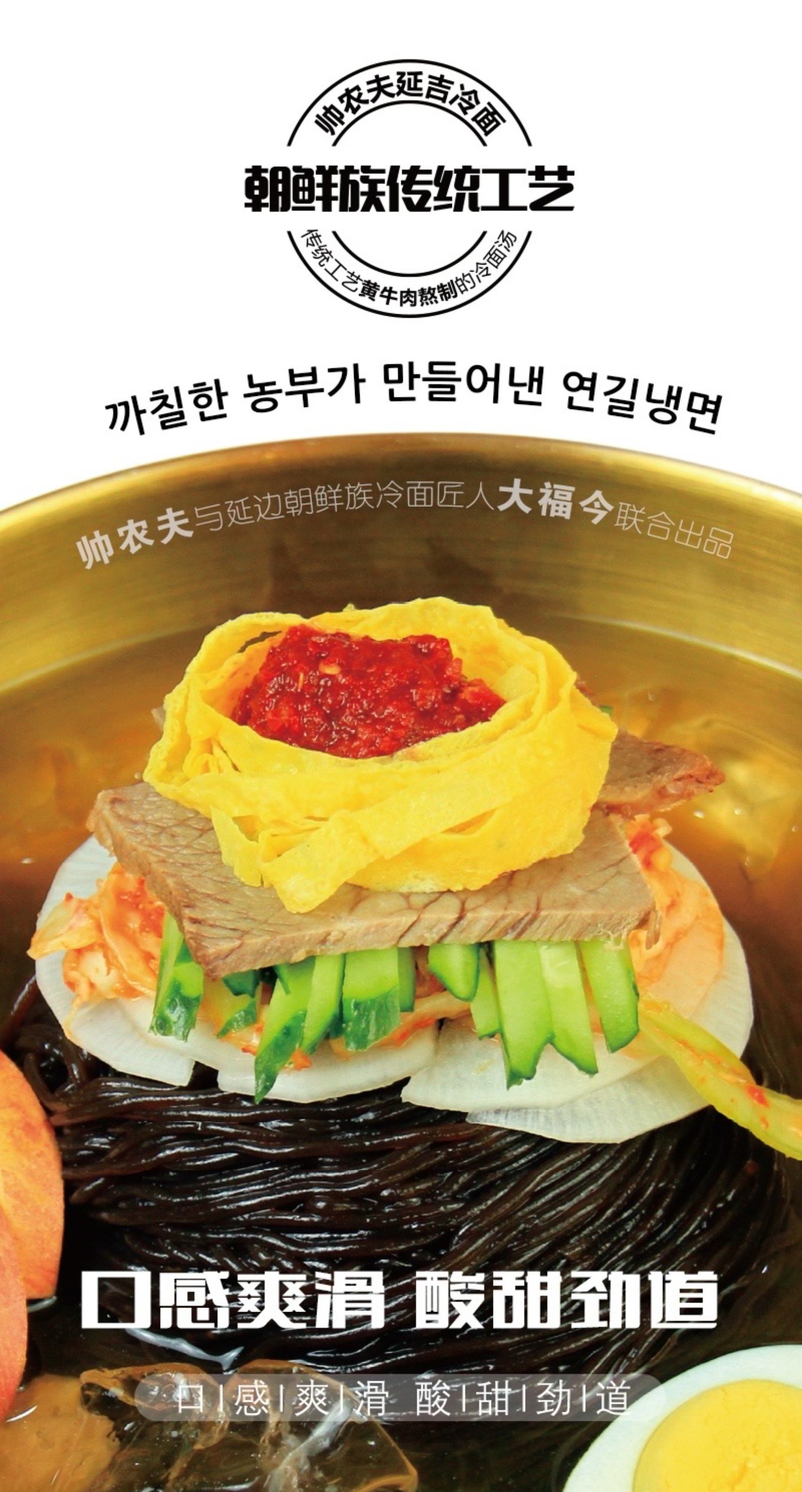 [屁侠推荐]延吉冷面 清凉爽口筋道爽滑甜酸辛辣香五味俱全 精选延边精瘦黄牛肉鸡肉+18种健康食材熬制8小时熬制