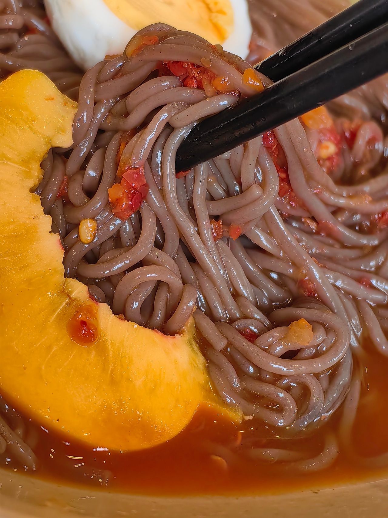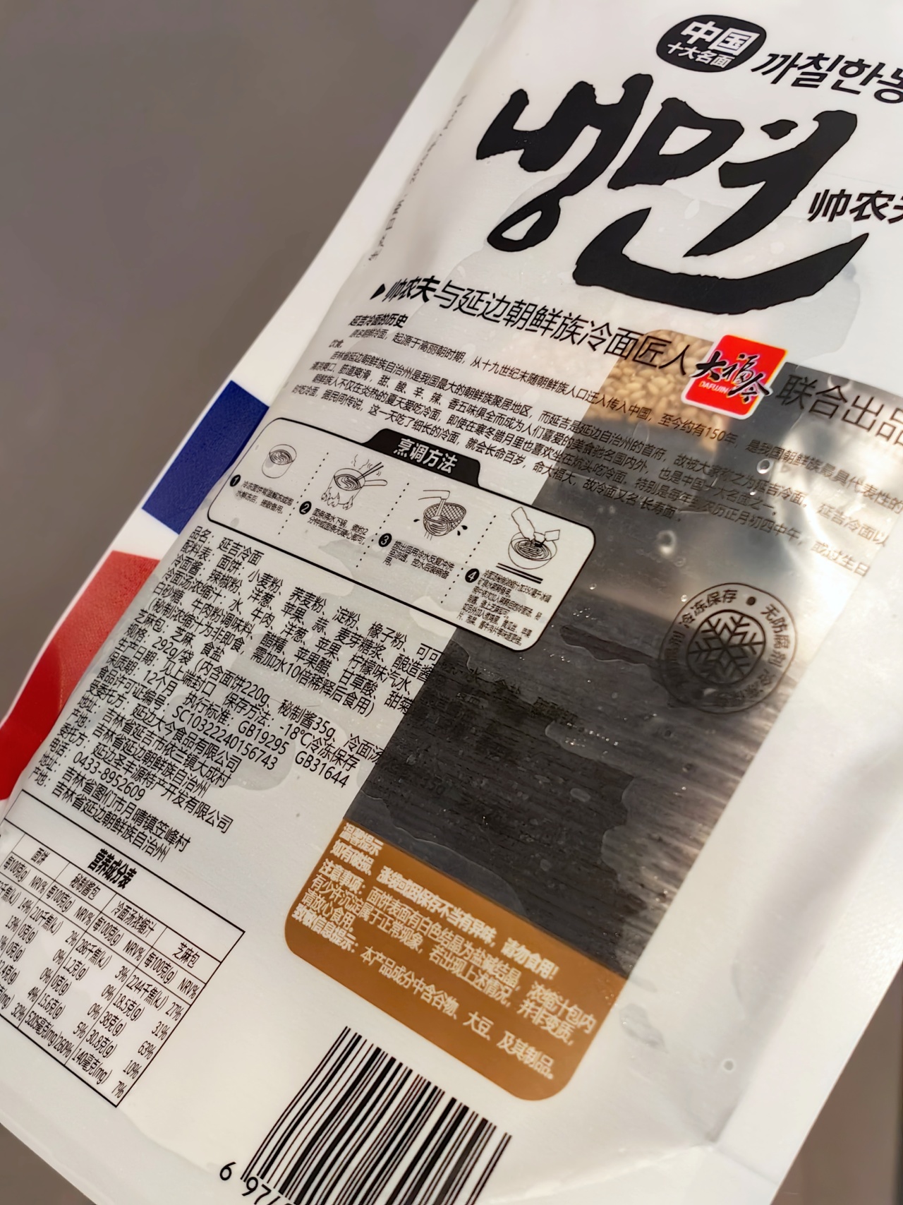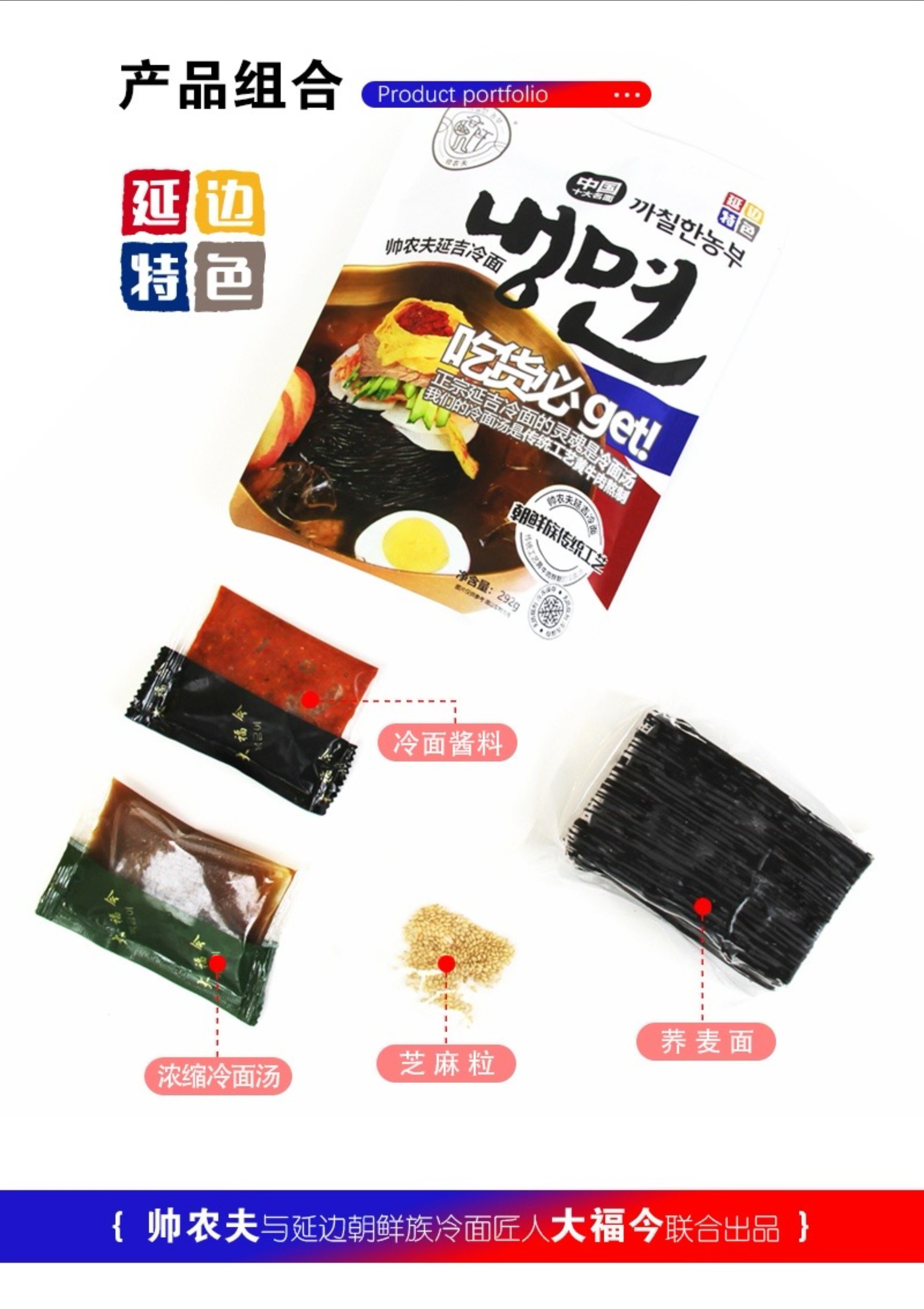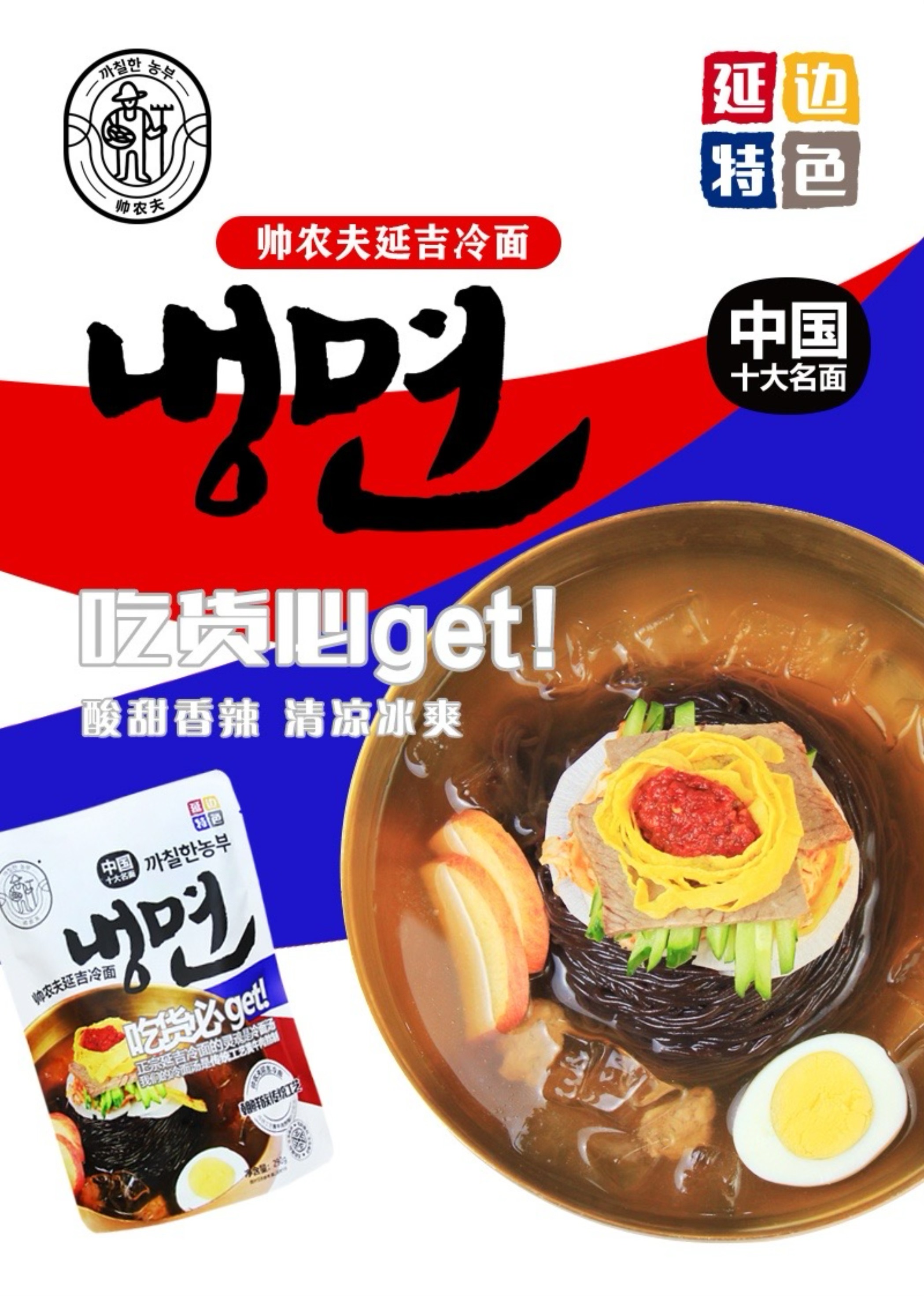 帅农夫延吉冷面,凝聚着地道延边风味。它由爽滑的荞麦面、风味独特的冷面酱料、浓缩冷面汤和香气扑鼻的芝麻粒搭配而成。荞麦面口感格外劲道,而冷面的灵魂,当属那碗遵循朝鲜族传统工艺熬制的汤,黄牛肉慢火细炖,每一口都能品尝到的浓郁醇厚!秘制冷面酱也是点睛之笔,既完整保留了发酵产生的复合鲜香,又通过科学配比让酸、辣、甜、咸达成微妙平衡。