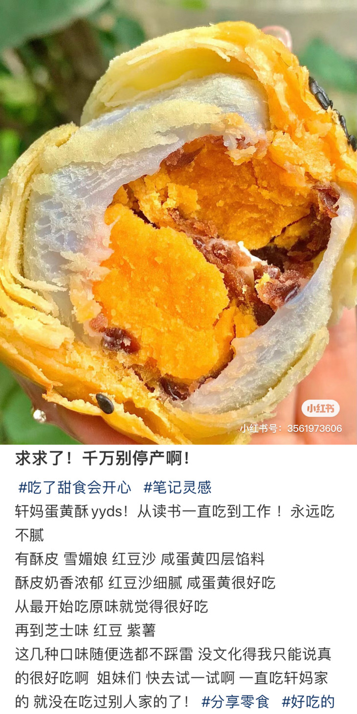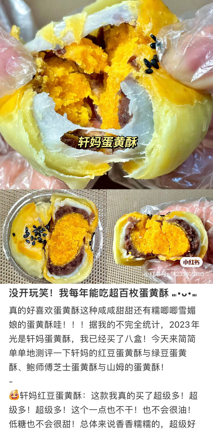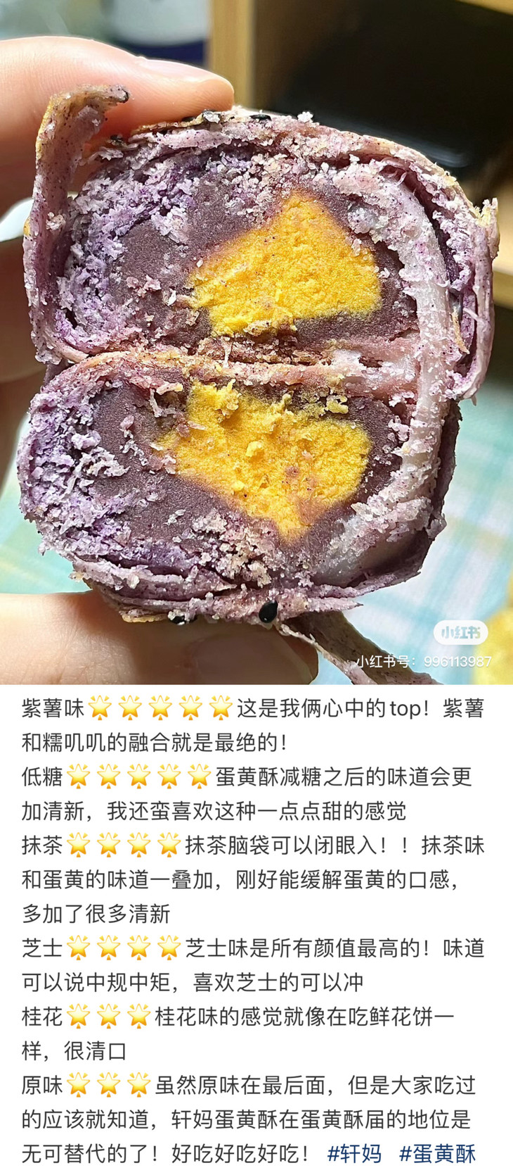 我之前因为蛋过敏,每次有蛋黄酥样品也只能浅尝辄止,这次是快快乐乐的大口大口的都吃完啦!非常可以,而且三个口味,不分伯仲,都好吃!轩妈也算是将口味和性价比平衡得比较好的品牌了,喜欢蛋黄酥的,要尝尝!(口味会因季节更新,以实际为准,介意慎拍。)