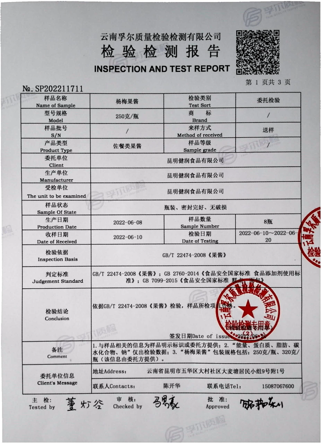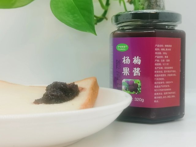【名称】杨梅果酱【规格】320g/瓶【产地】云南永仁【保质期】12个月【储存方式】阴凉干燥,低温冷藏更佳,开盖需冷藏,7天内吃完。【加工方式】蒸熟炒糖【原料】生态杨梅、臻和黄冰糖【推荐吃法】果汁特饮、冰沙、果露、甜品、糕点。【特点】1、杨梅来自自产农园,生长环境天然无污染,通过278项农残检测。2、杨梅酱除了臻和黄冰糖以外,不添加任何添加剂(无香精、色素、防腐剂)。3、正规工厂生产,高温杀菌,品质保障。
