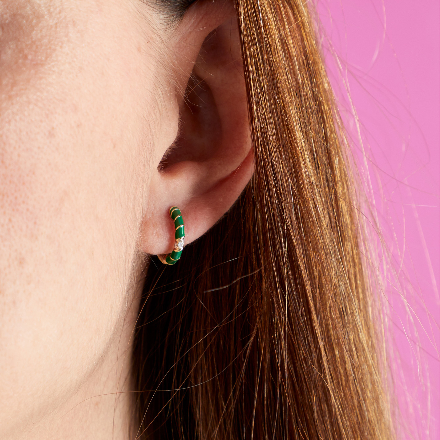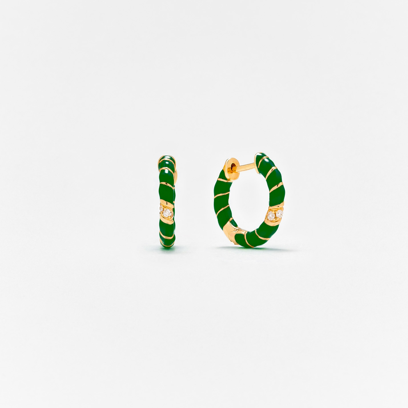 订购10周到|Yvonne Leon-Les Torsades-9K黄金 珐琅 钻石 麻花 耳环(祖母绿色)[法国设计师]