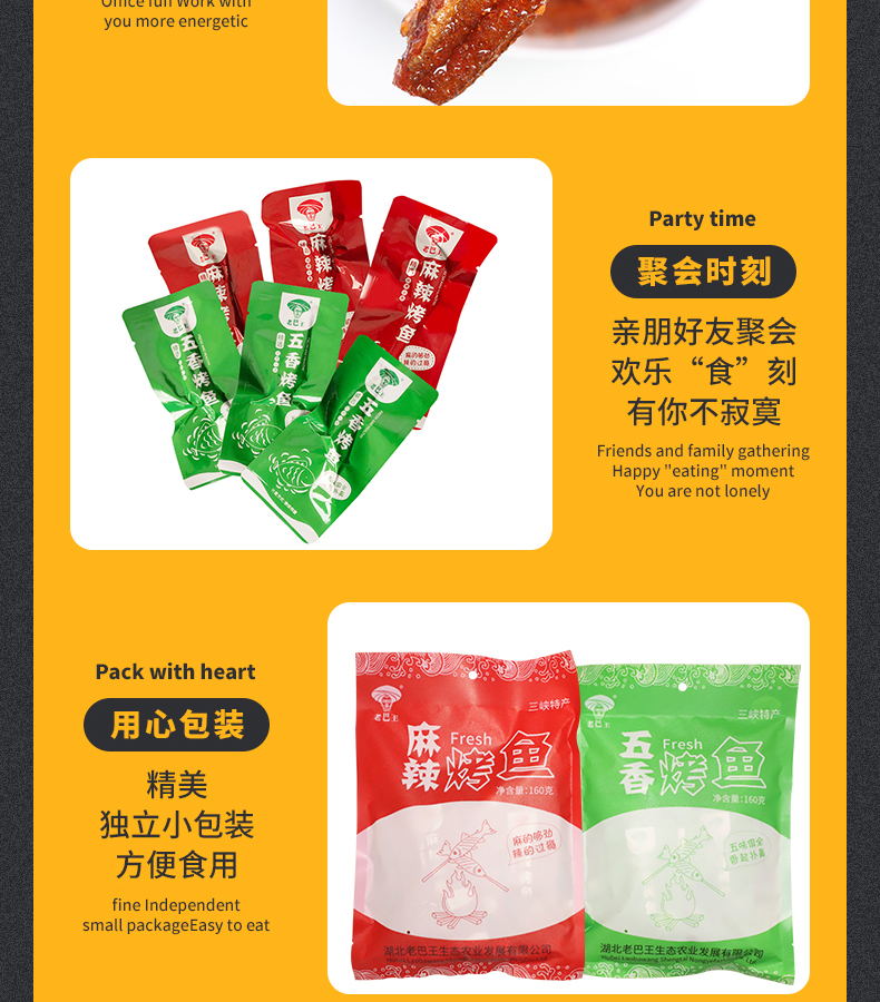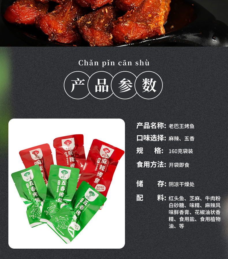 【宜昌助农馆】老巴王 烤鱼160g五香味/麻辣味 休闲零食