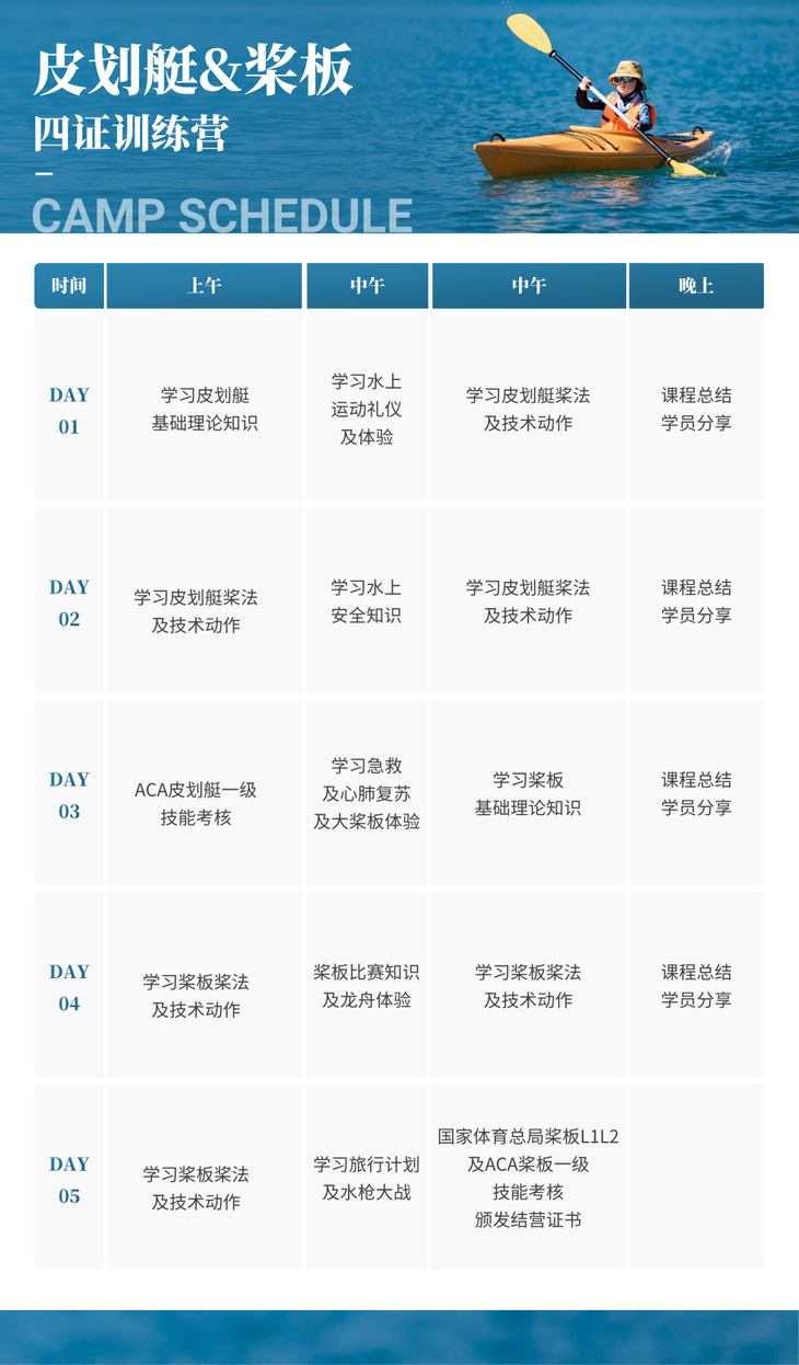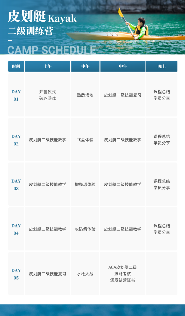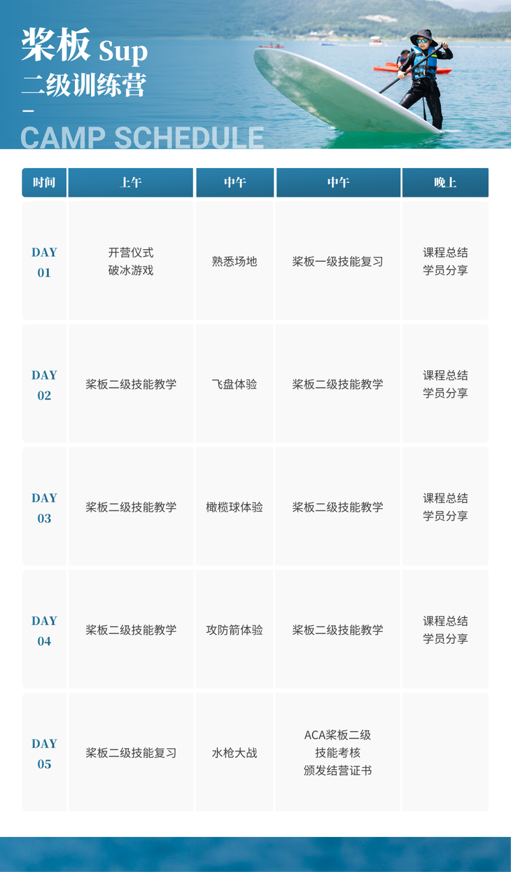 ◆ 二级进阶营:桨板/皮划艇任选,毕业颁发二级证书