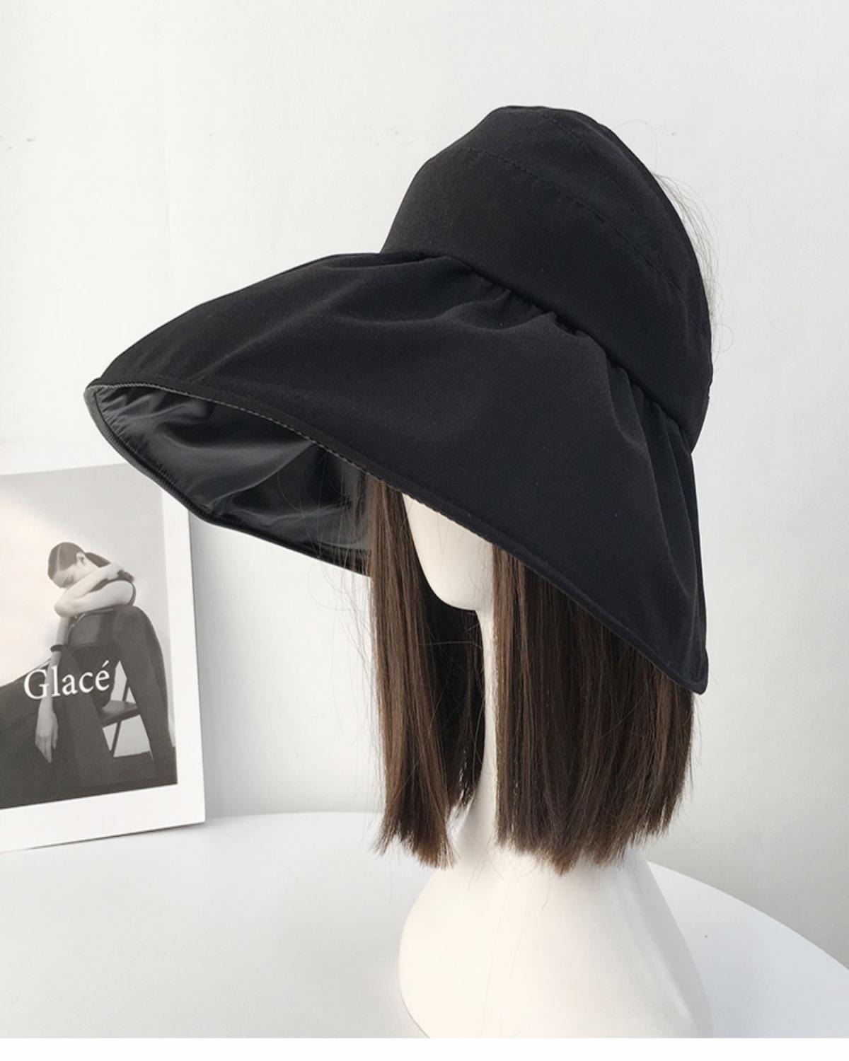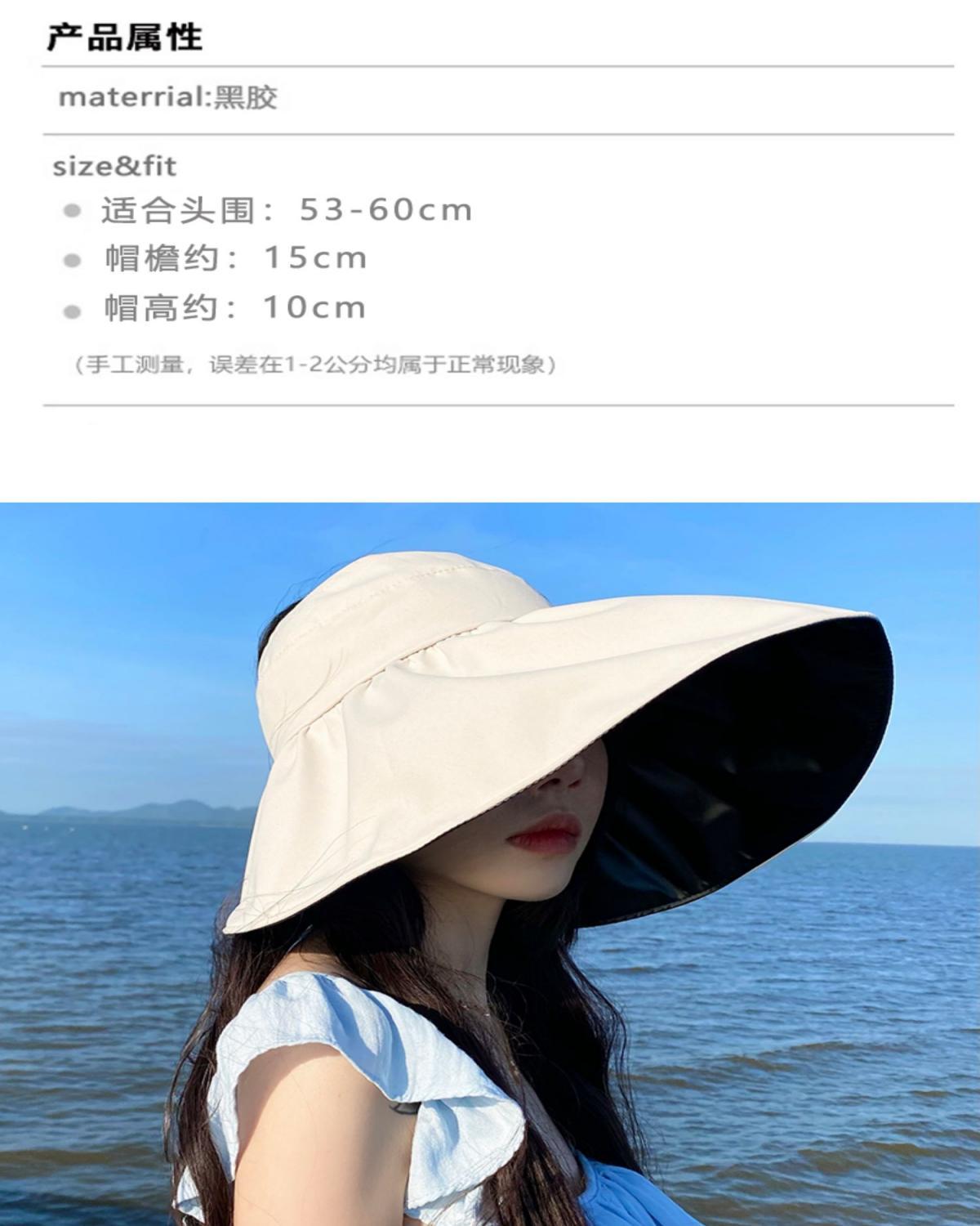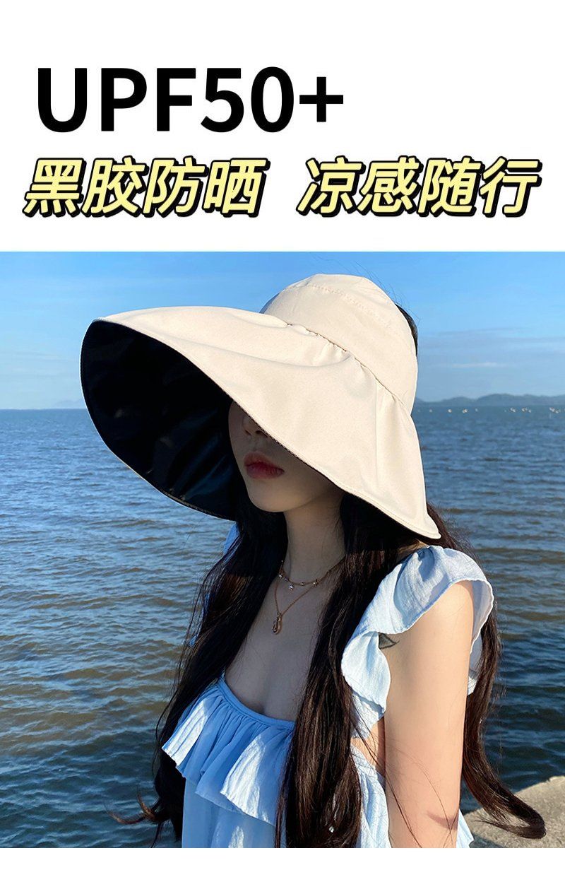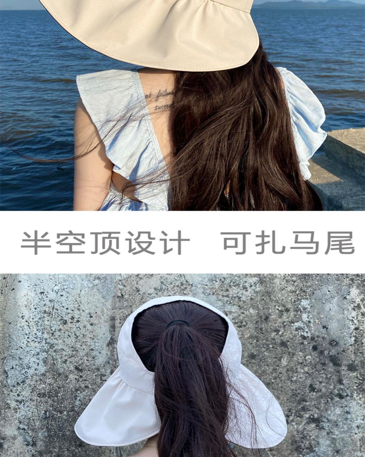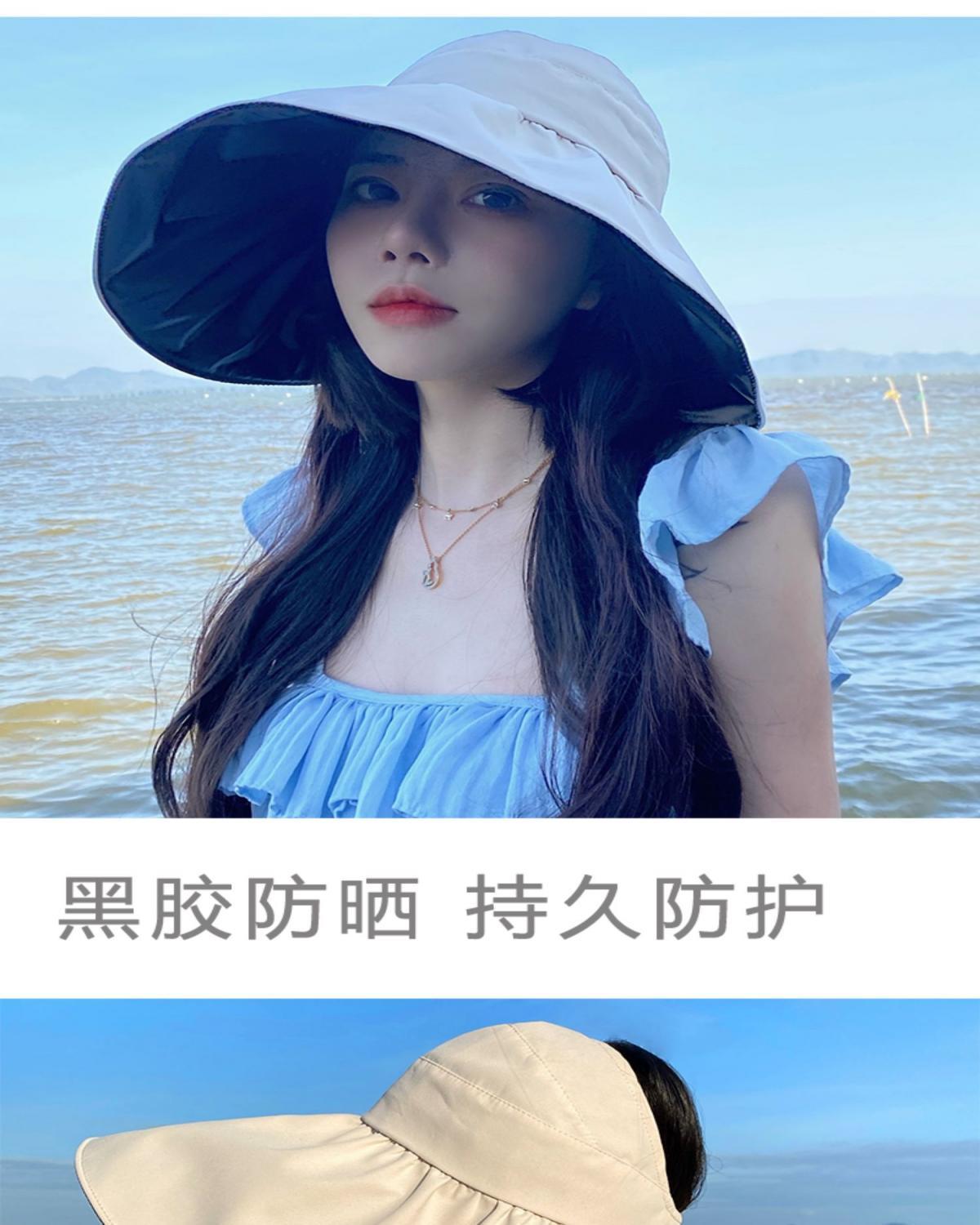 黑胶空顶遮阳帽女夏防晒帽子防紫外线遮脸渔夫帽可折叠调节