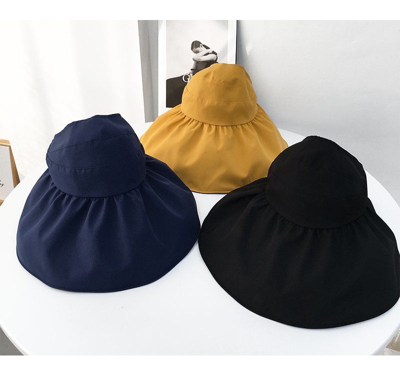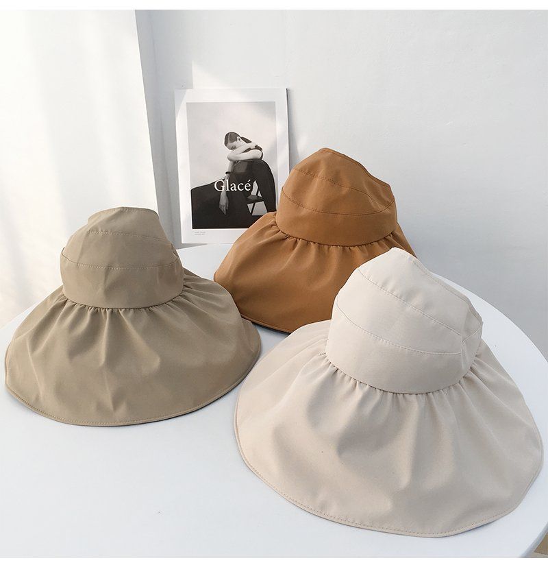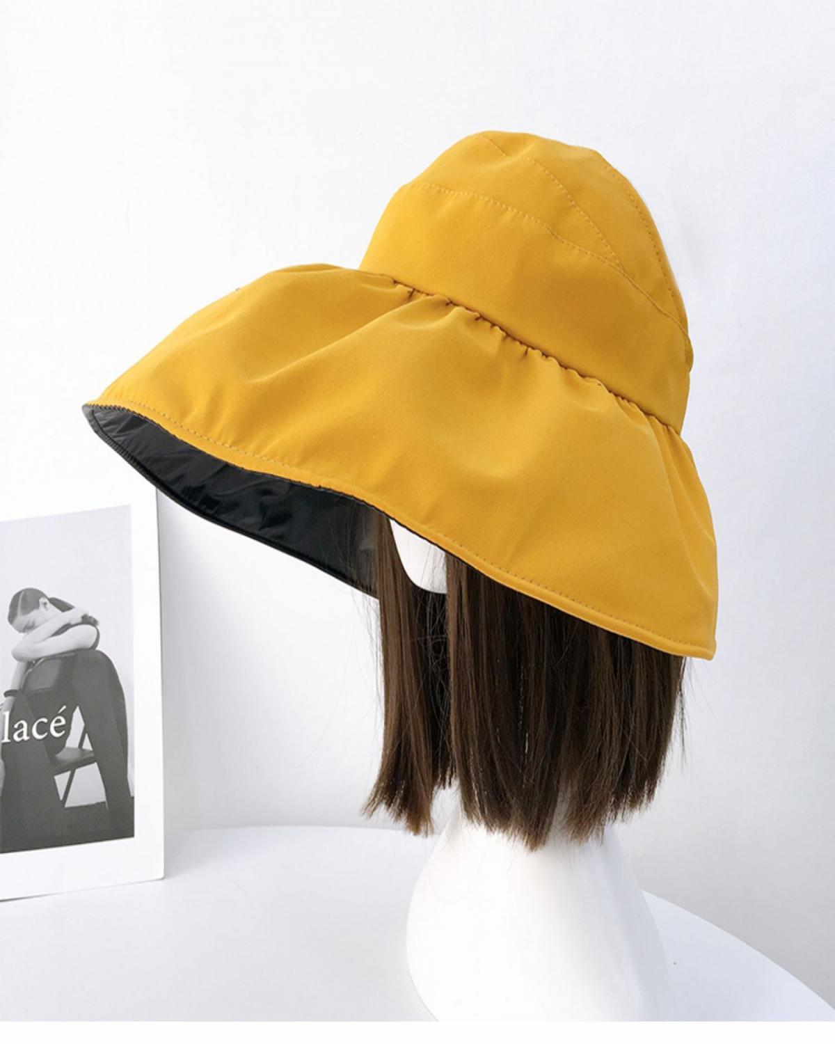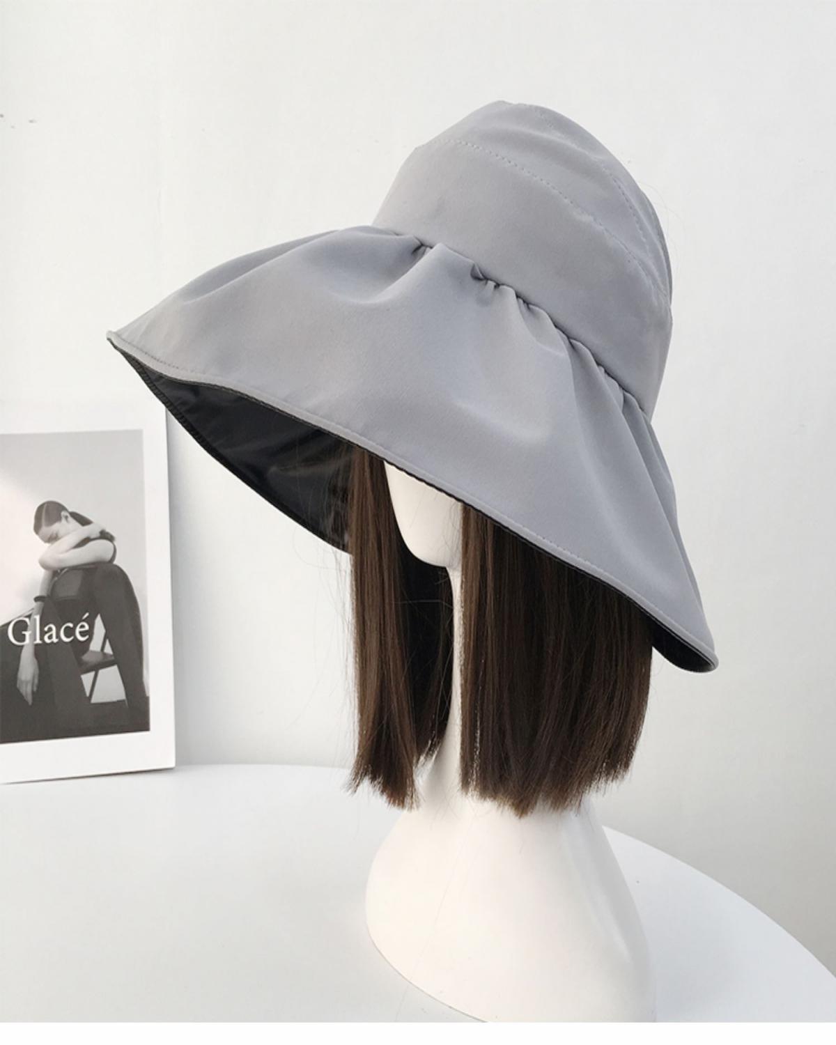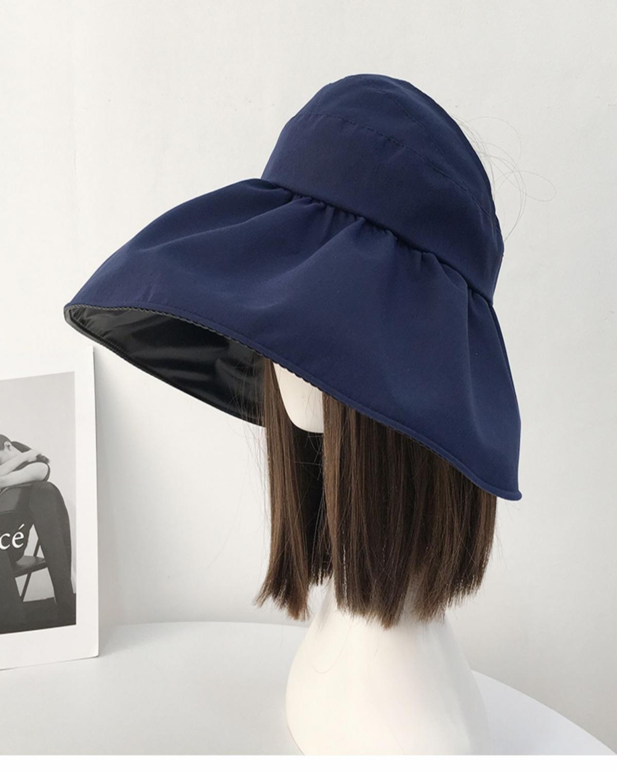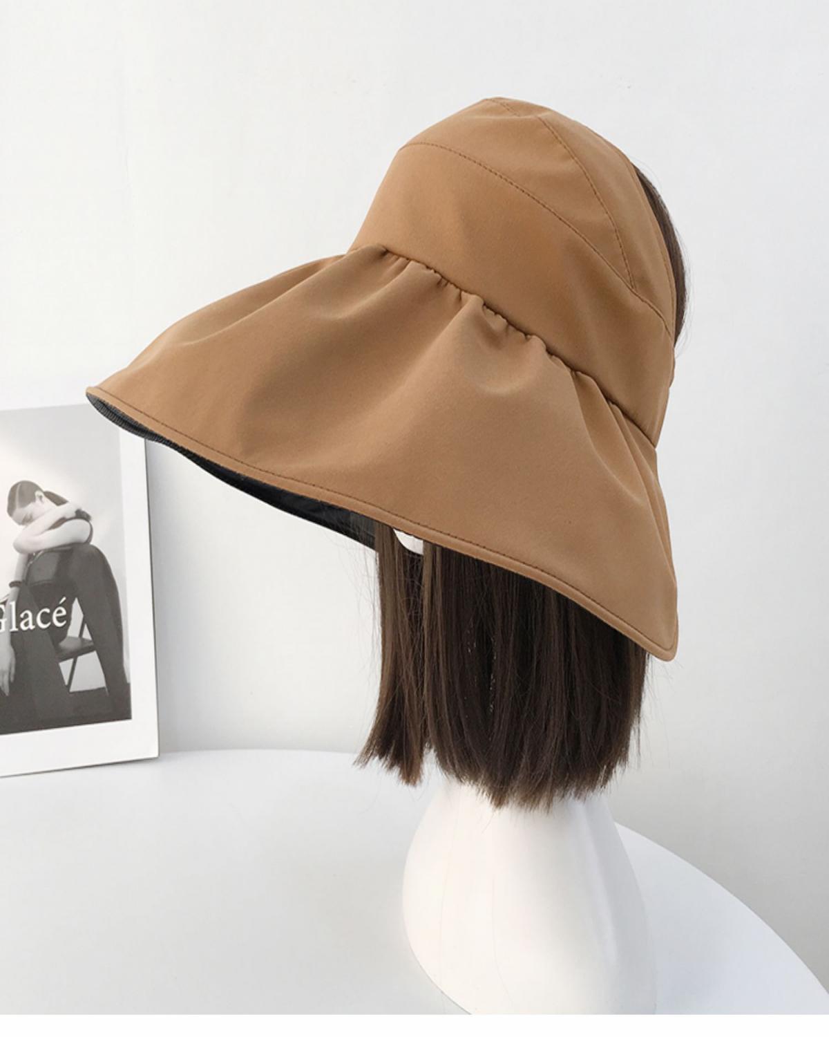 黑胶空顶遮阳帽女夏防晒帽子防紫外线遮脸渔夫帽可折叠调节