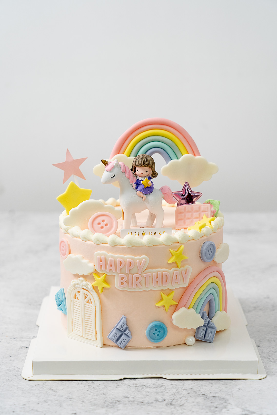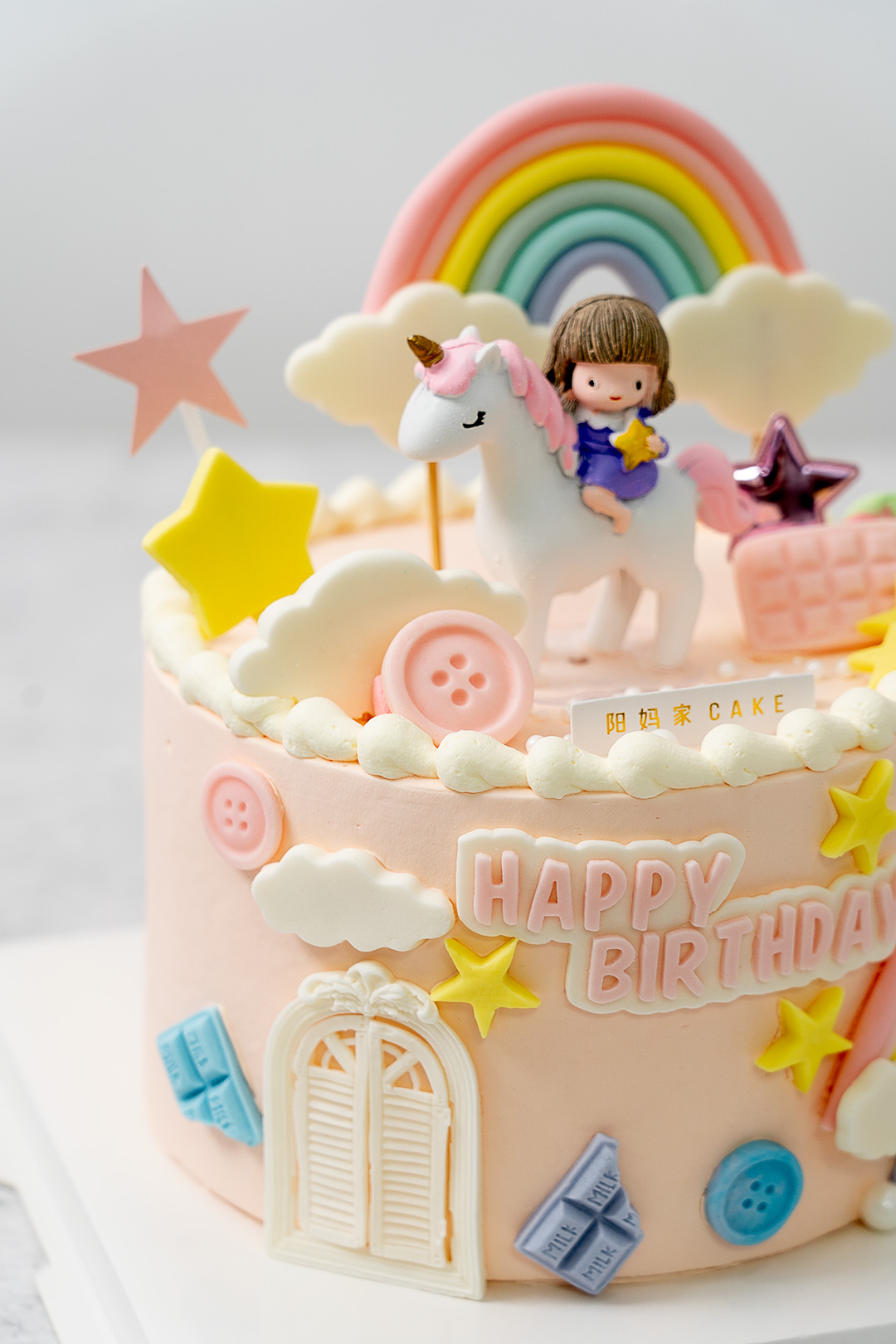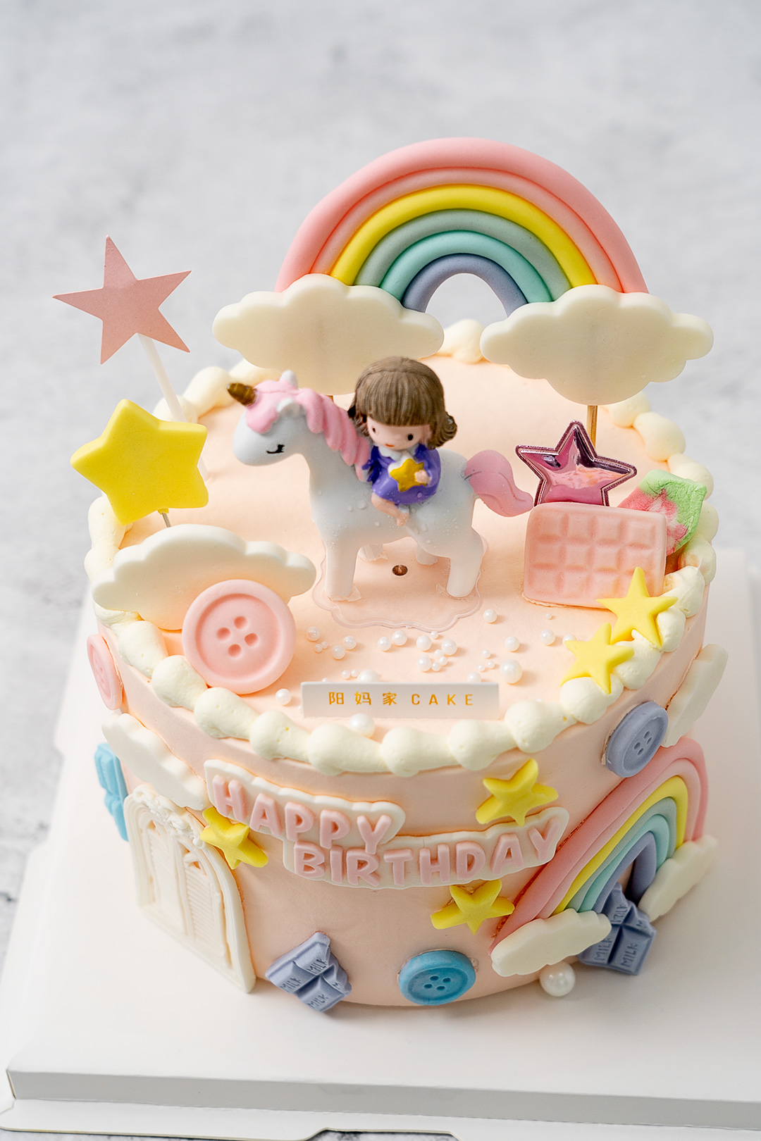 彩虹、纽扣、城门等为翻糖或巧克力制作。