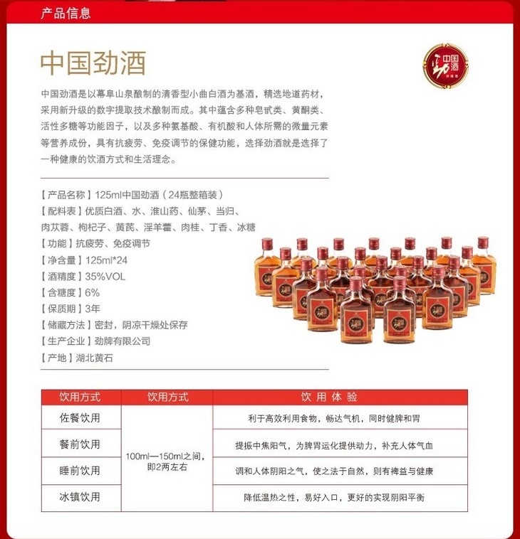 【劲牌】中国劲酒35° 125ml/瓶