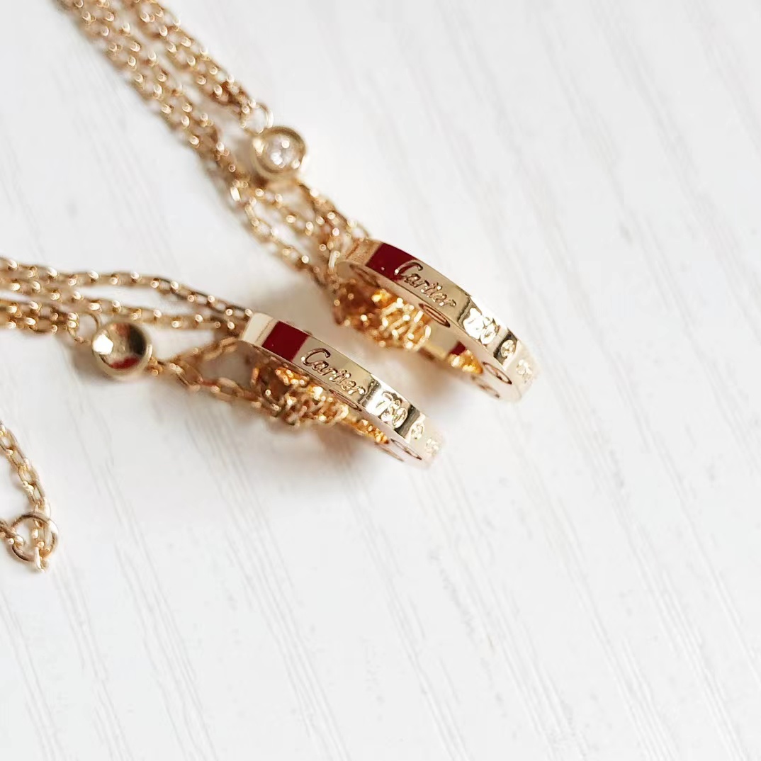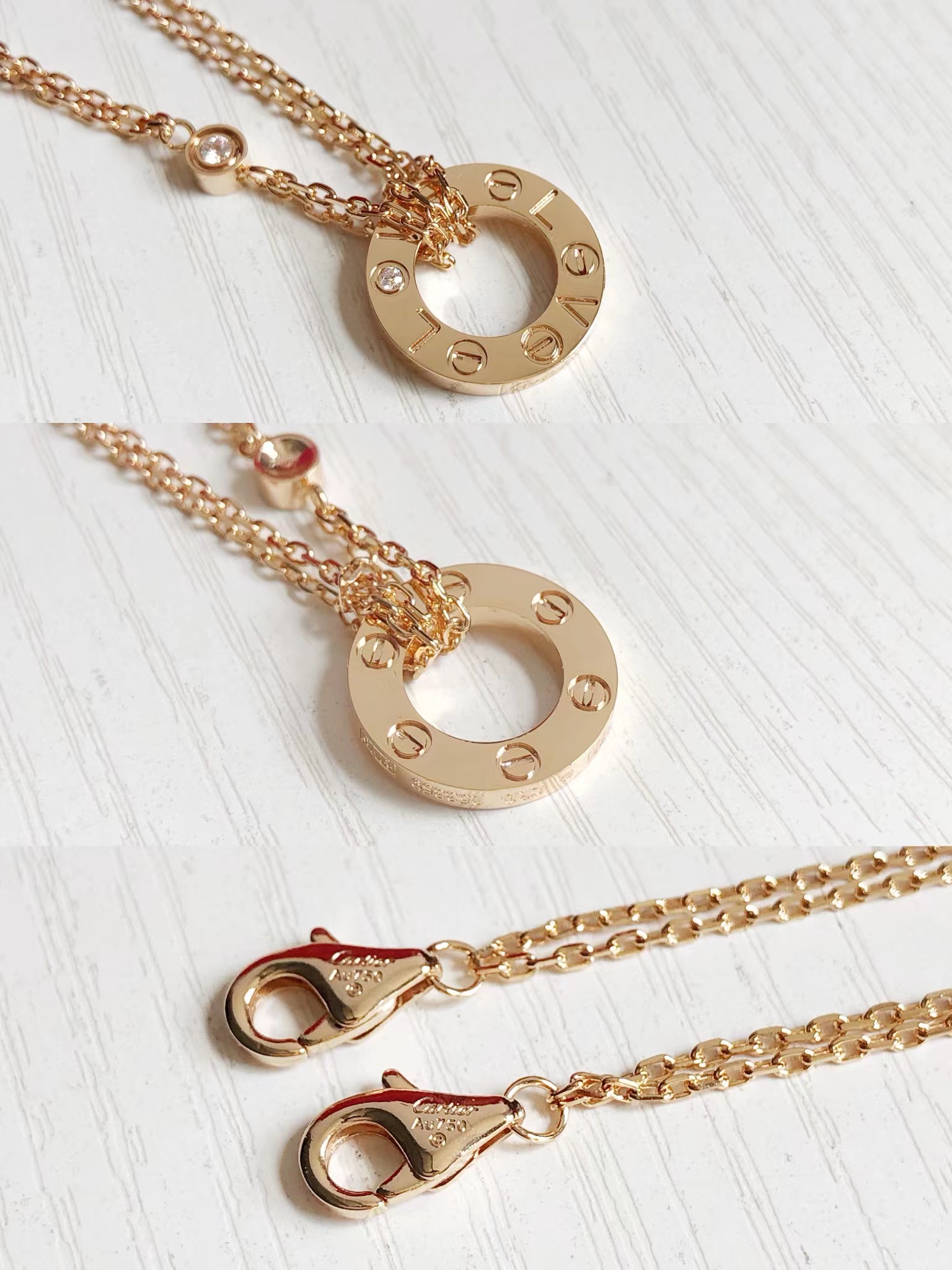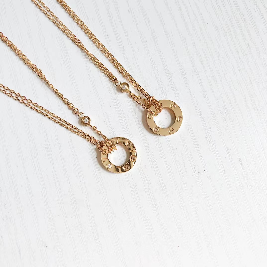 设计灵感: LOVE 系列诞生于上世纪七十年代的纽约锁入矢志不渝的爱之誓约见证了诸多缠绵悱恻的爱情标志性的螺钉设计、精 美椭圆形镯身 和鲜明的优雅风格LOVE 系列传递着炽热的情感镶嵌璀璨钻 石,Love 系列象征着爱之宣言的表白 爱无止这款项链一面刻着字母love面刻着圆圈logo 简约时尚还有-颗小钻点缀双面可佩带
