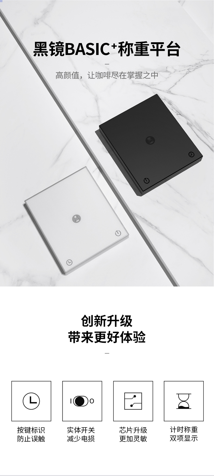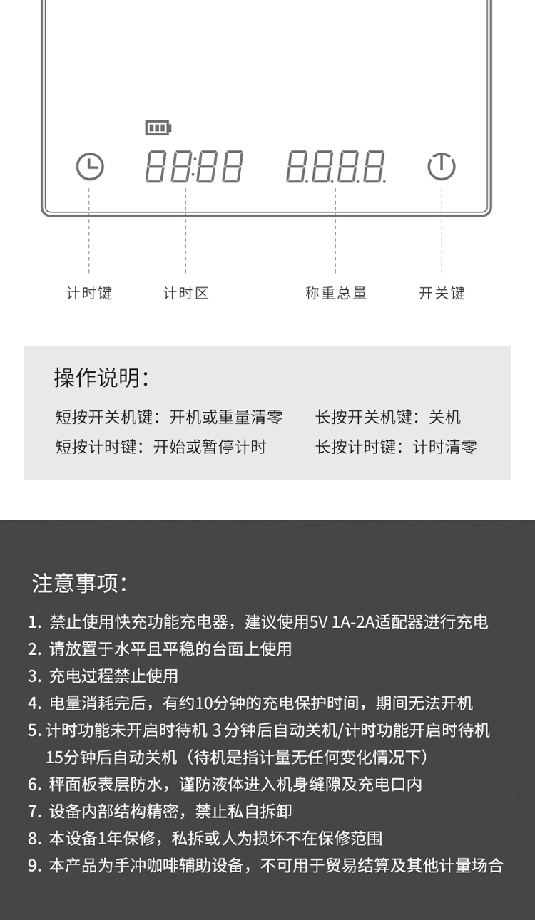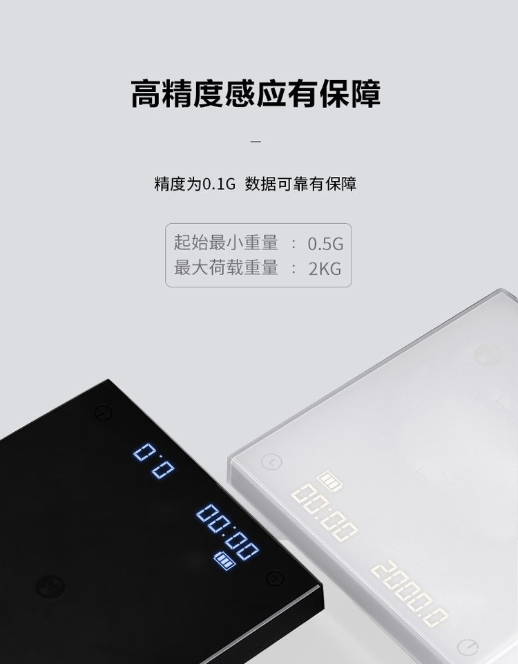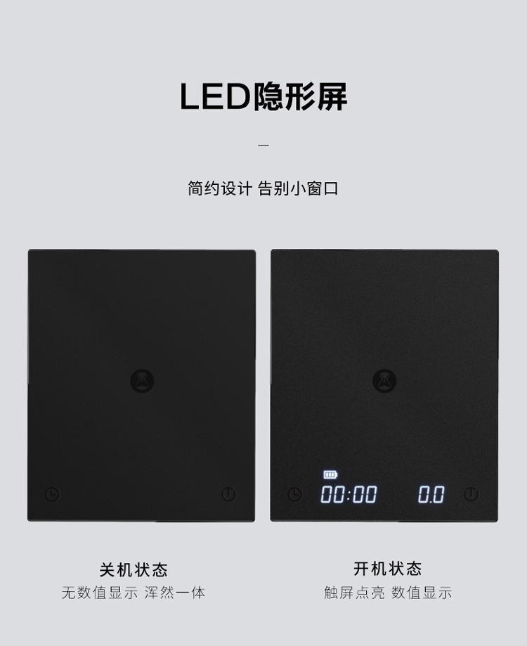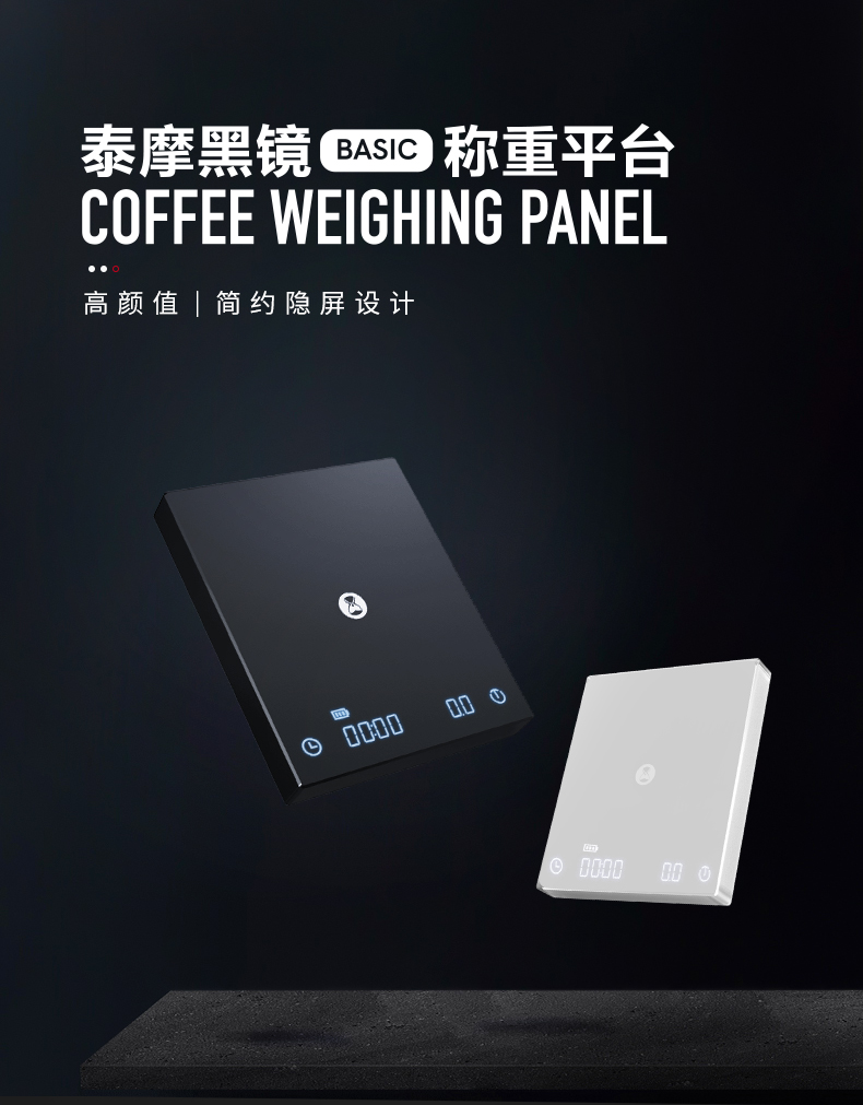 泰摩 黑镜BASIC咖啡电子秤 家用充电意式手冲咖啡壶 称重计时秤