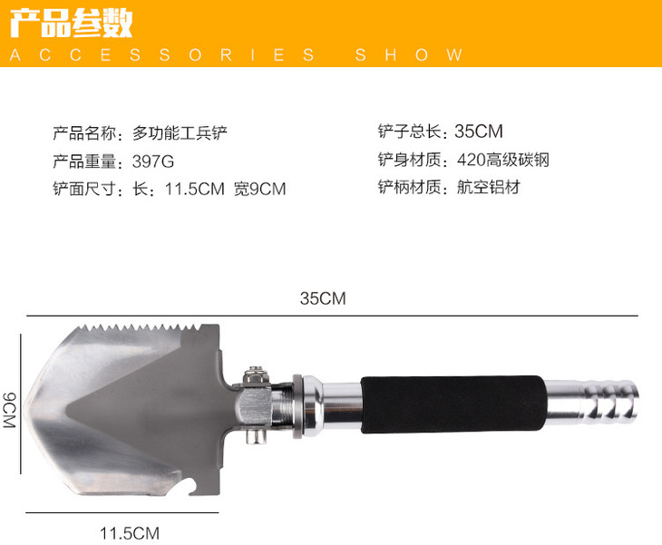 【运动装备】户外用品迷你多功能工兵铲 野营求生装备 mini军工铲 户外自驾游防身用
