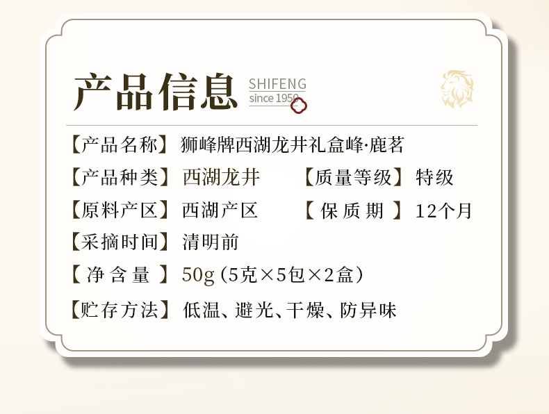 2026年新茶预定狮峰牌龙井茶经典禧狮礼盒
