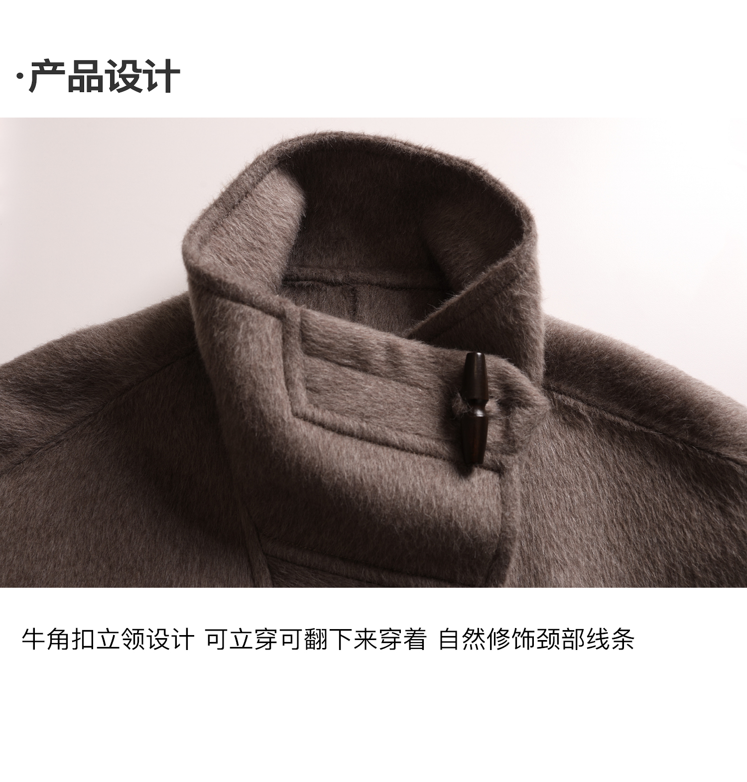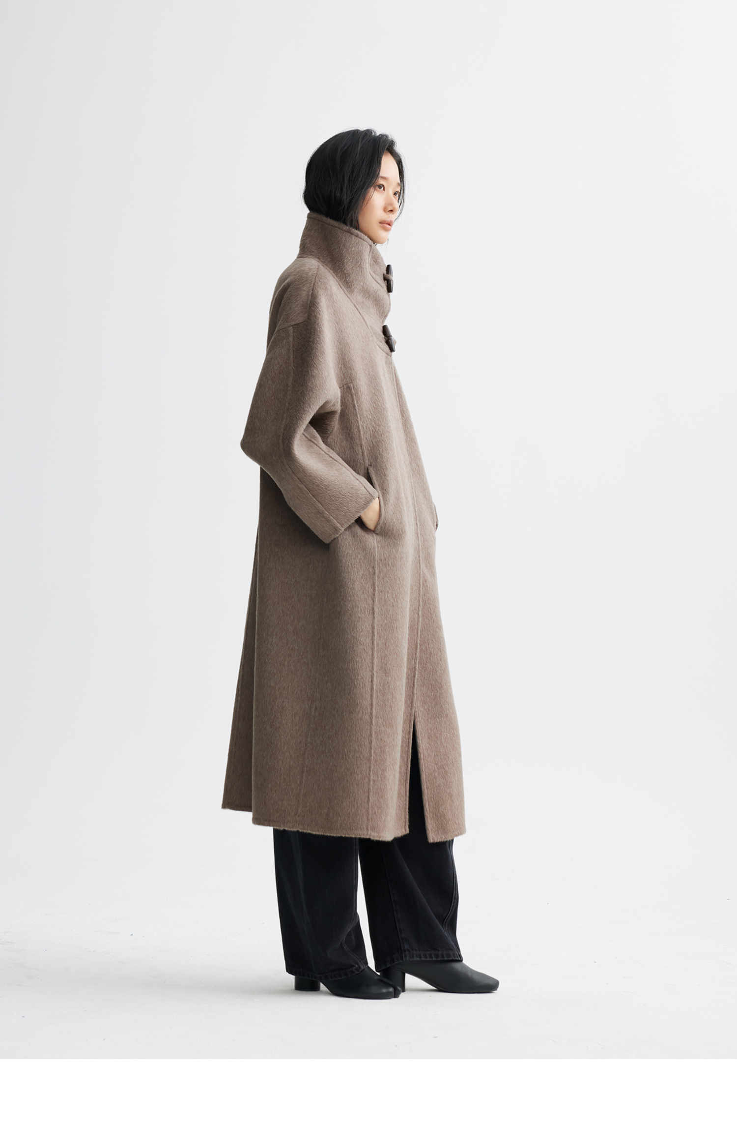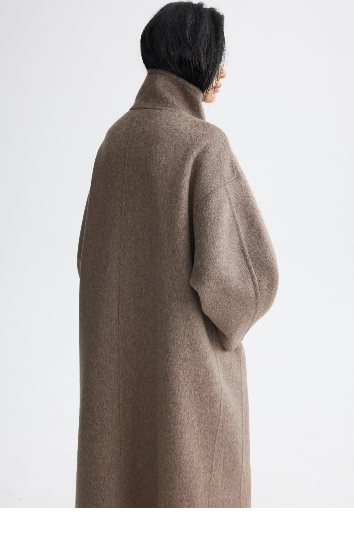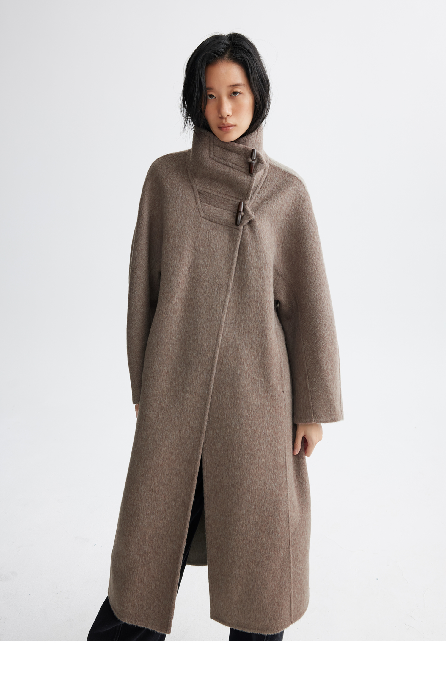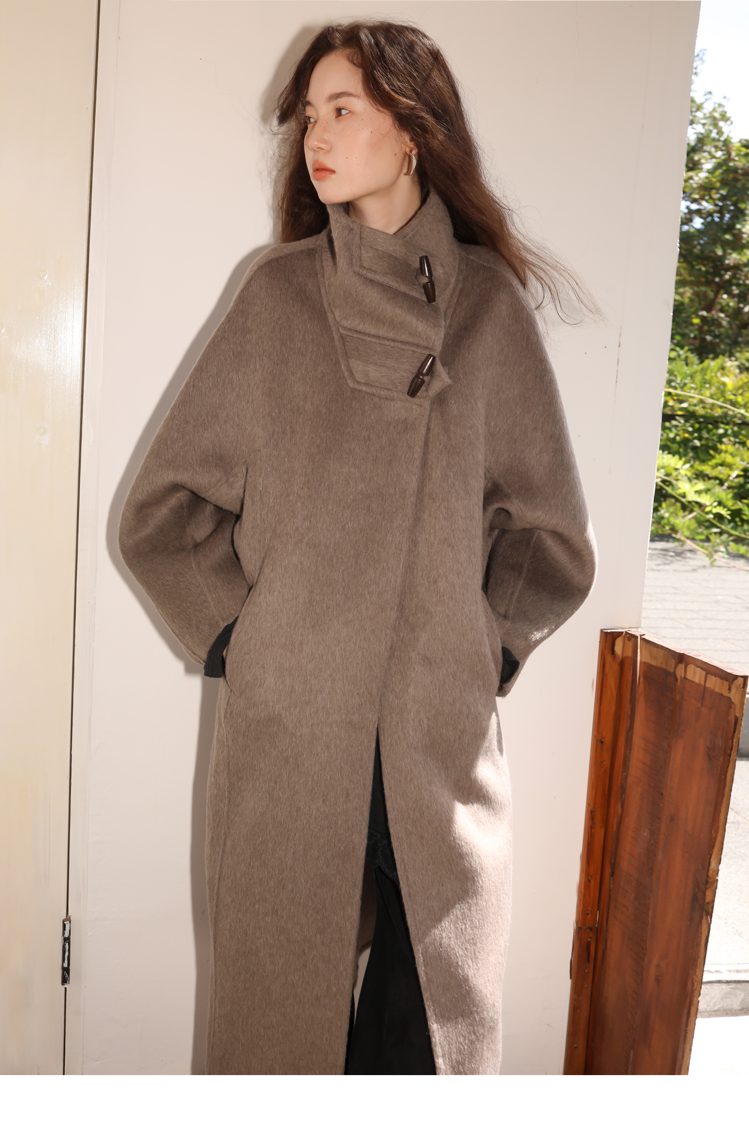 素舶 羊驼毛兔毛羊毛混纺软糯保暖亲肤牛角扣设计感立领长款大衣
