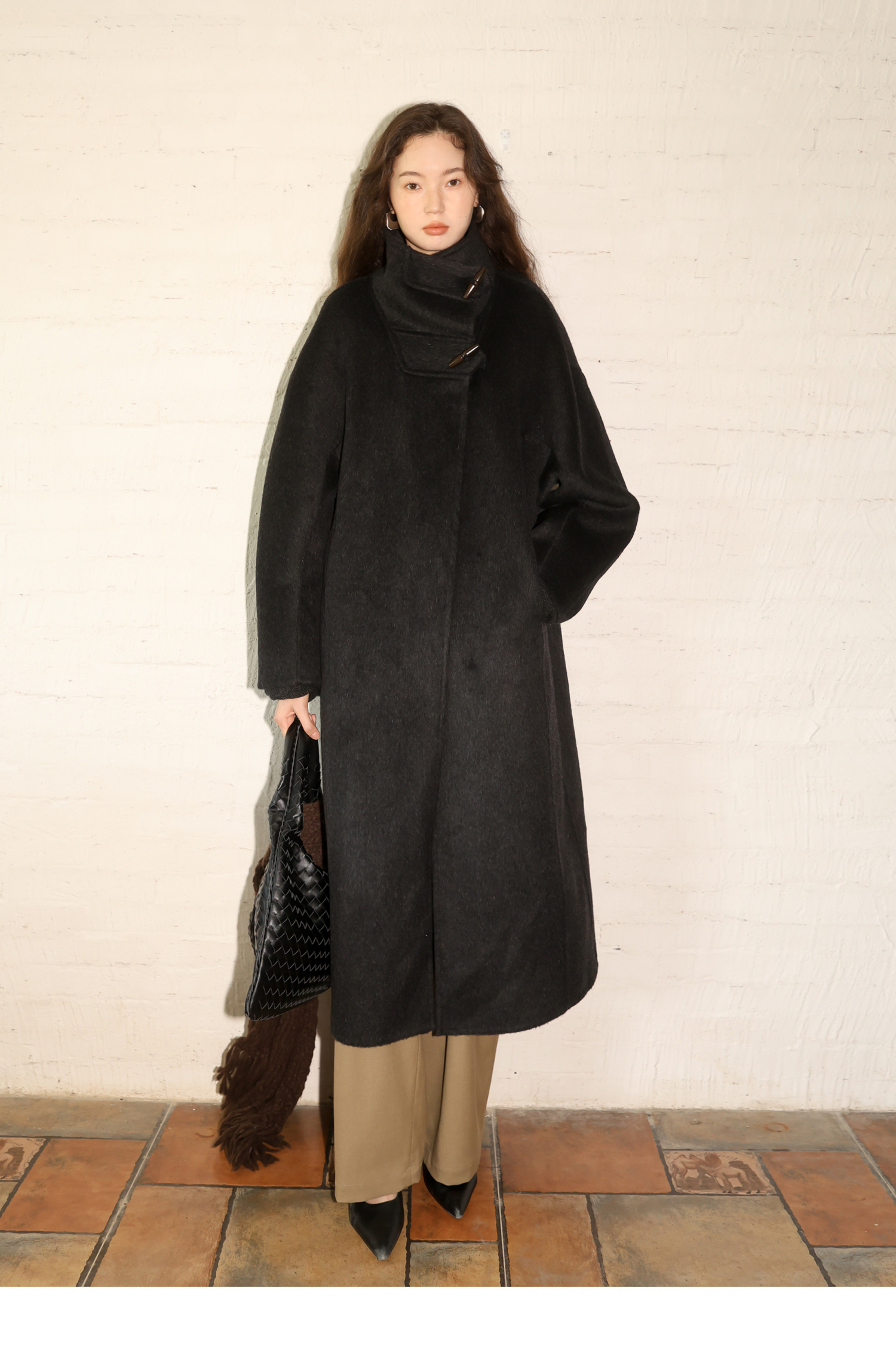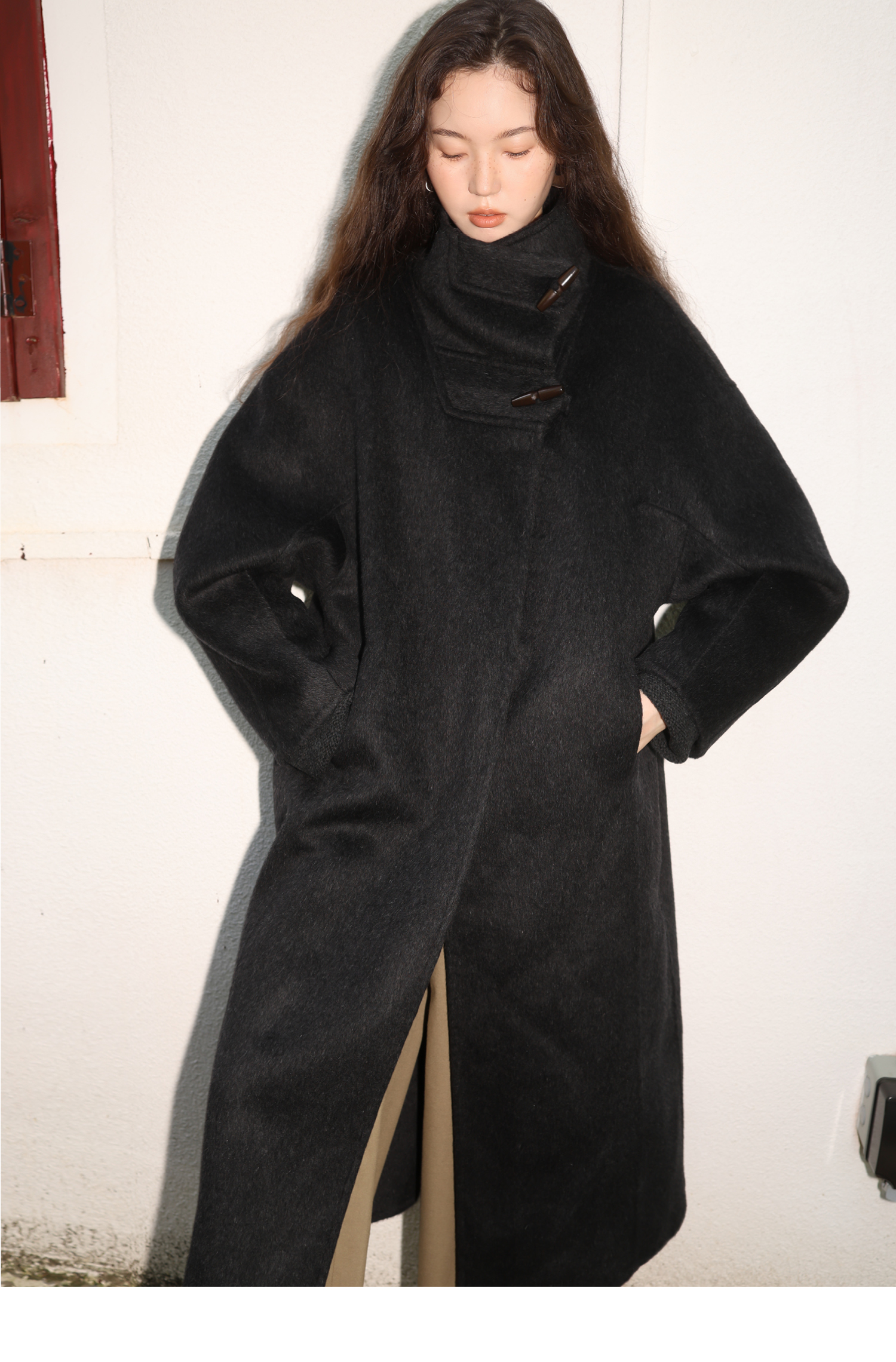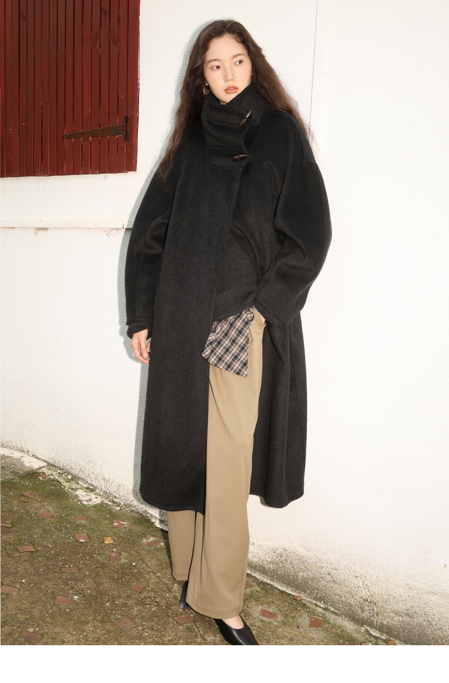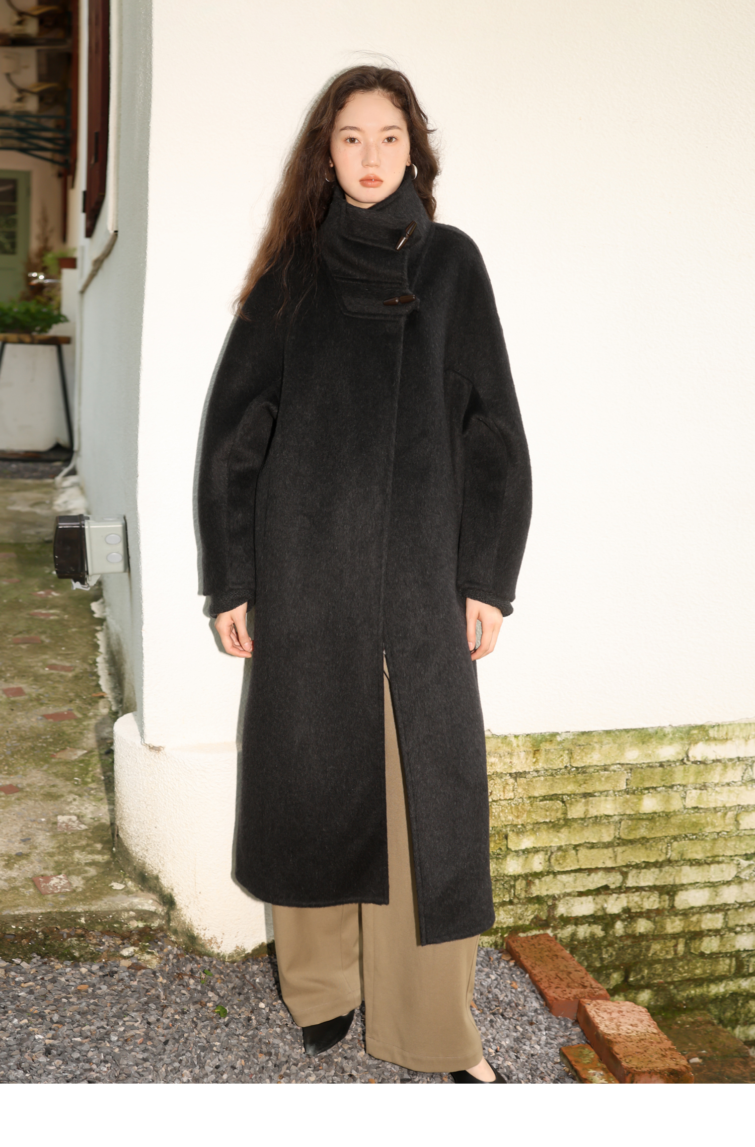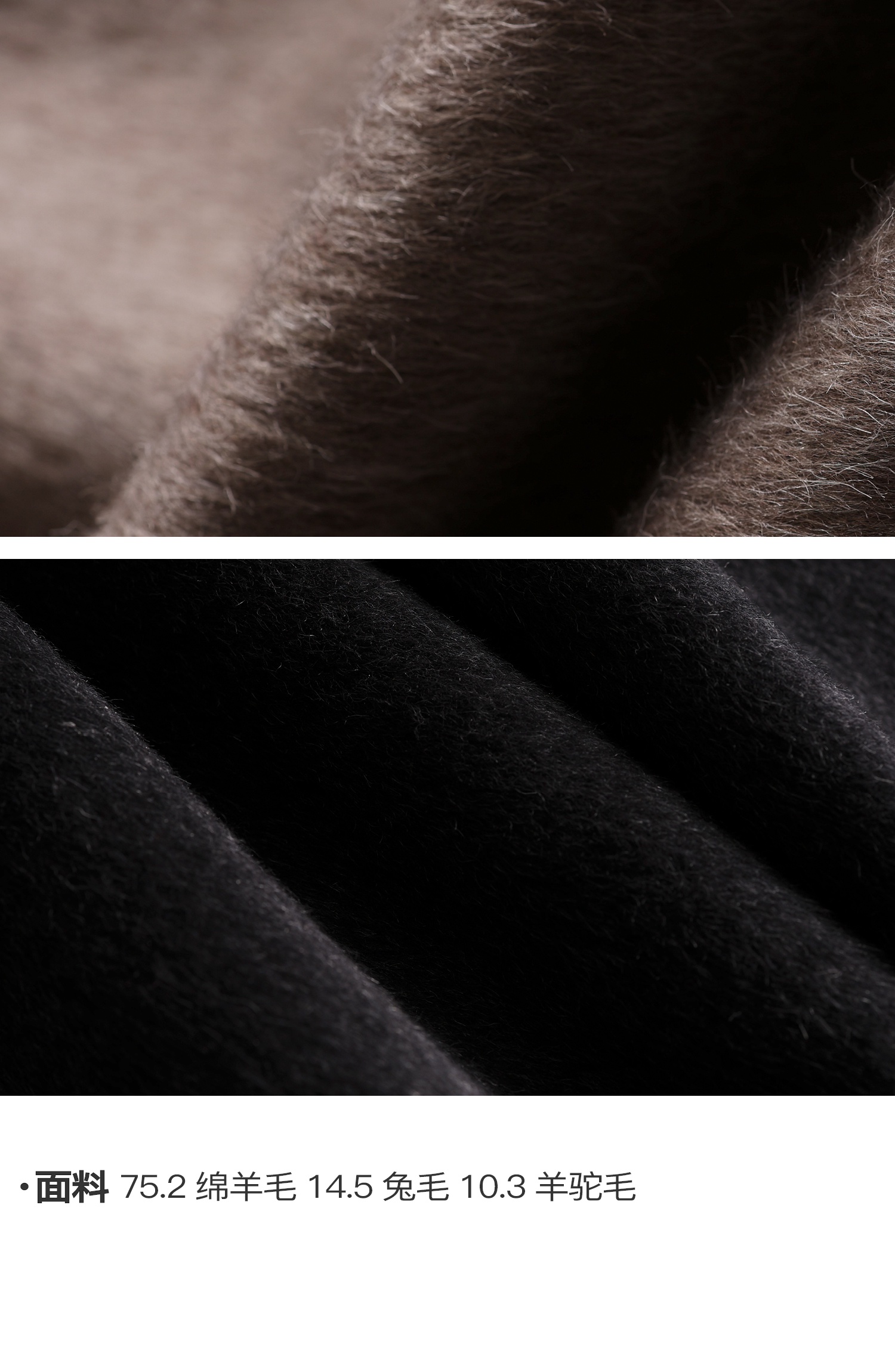 素舶 羊驼毛兔毛羊毛混纺软糯保暖亲肤牛角扣设计感立领长款大衣