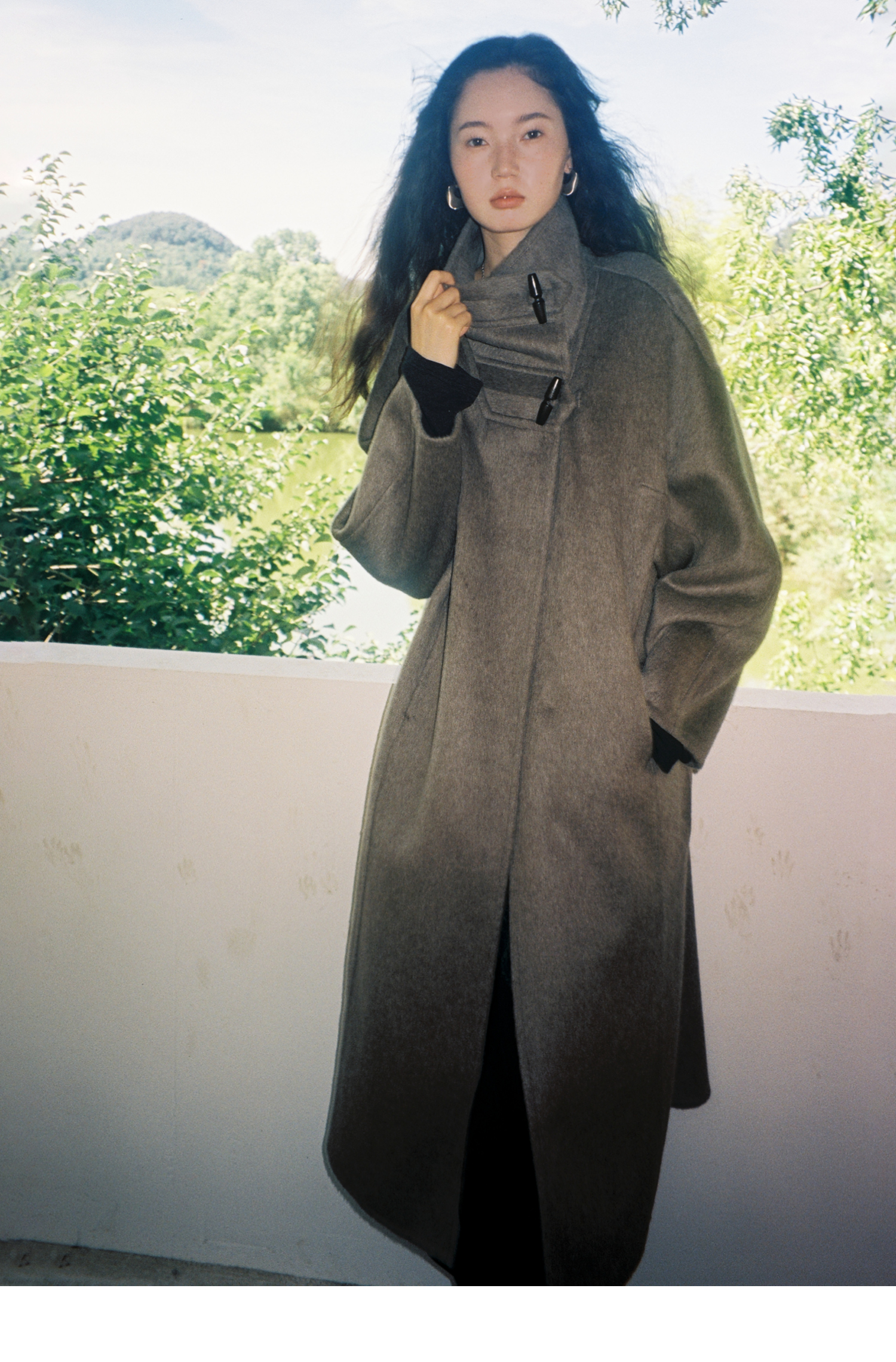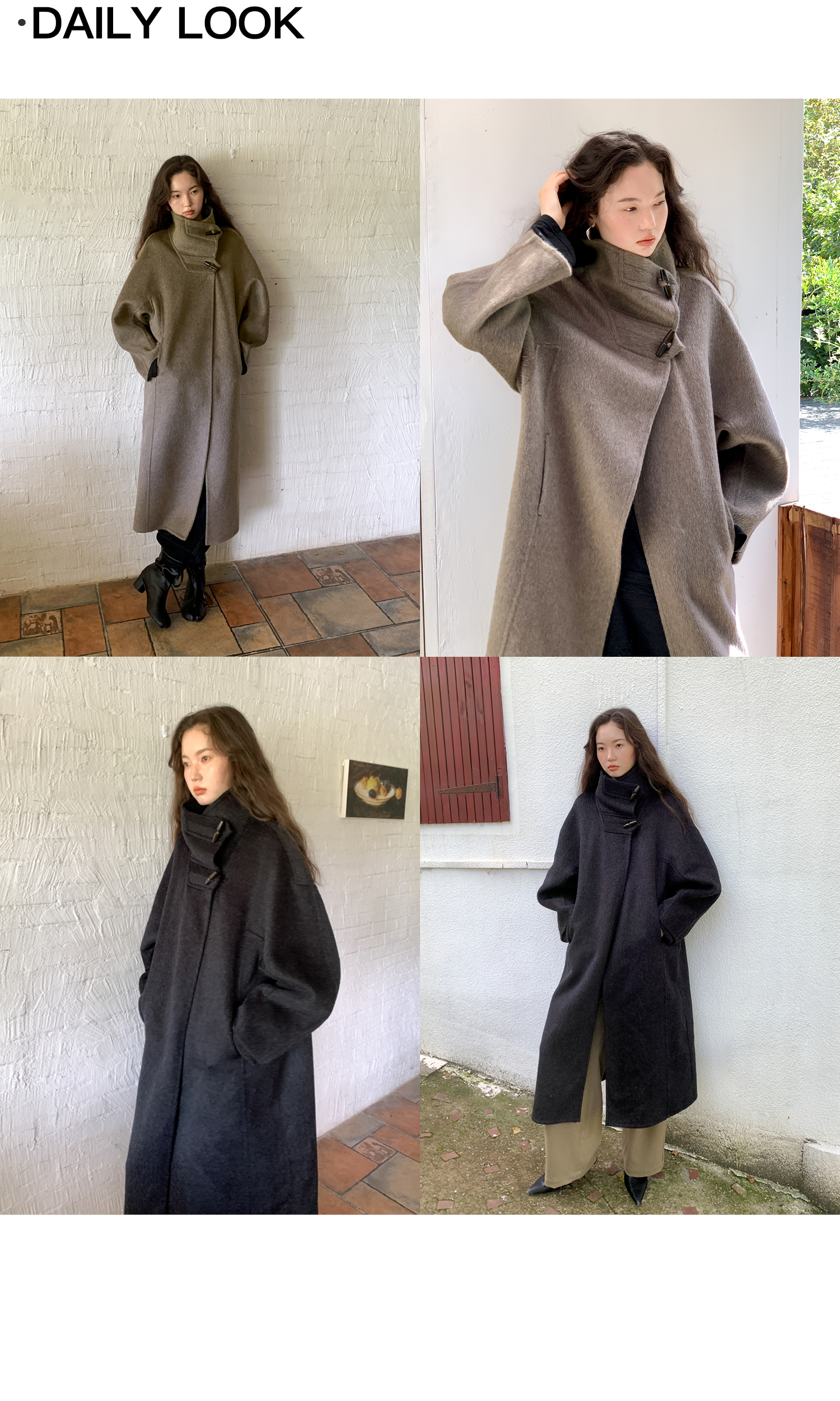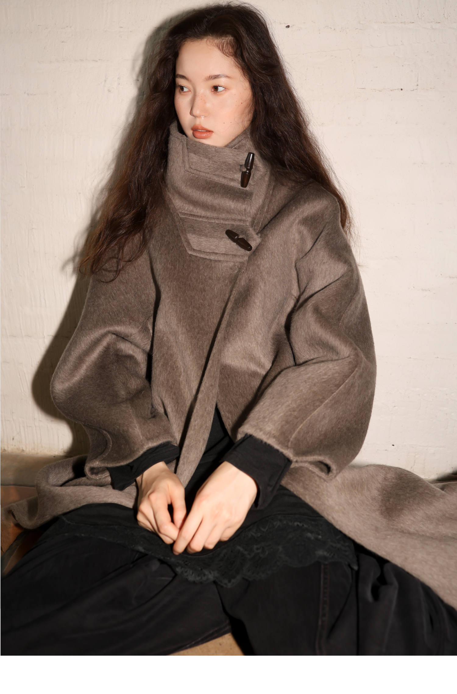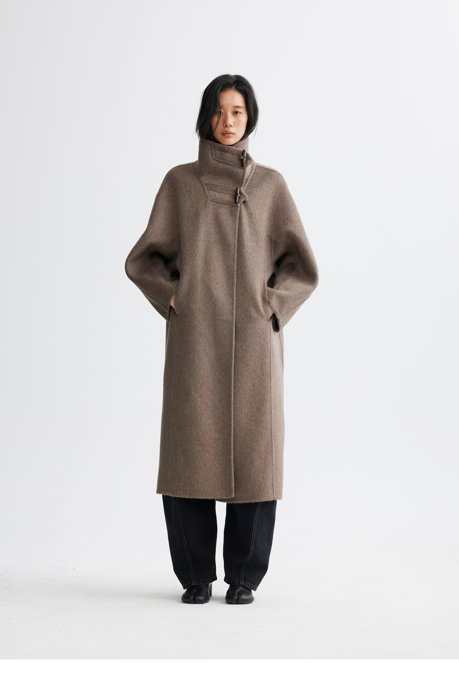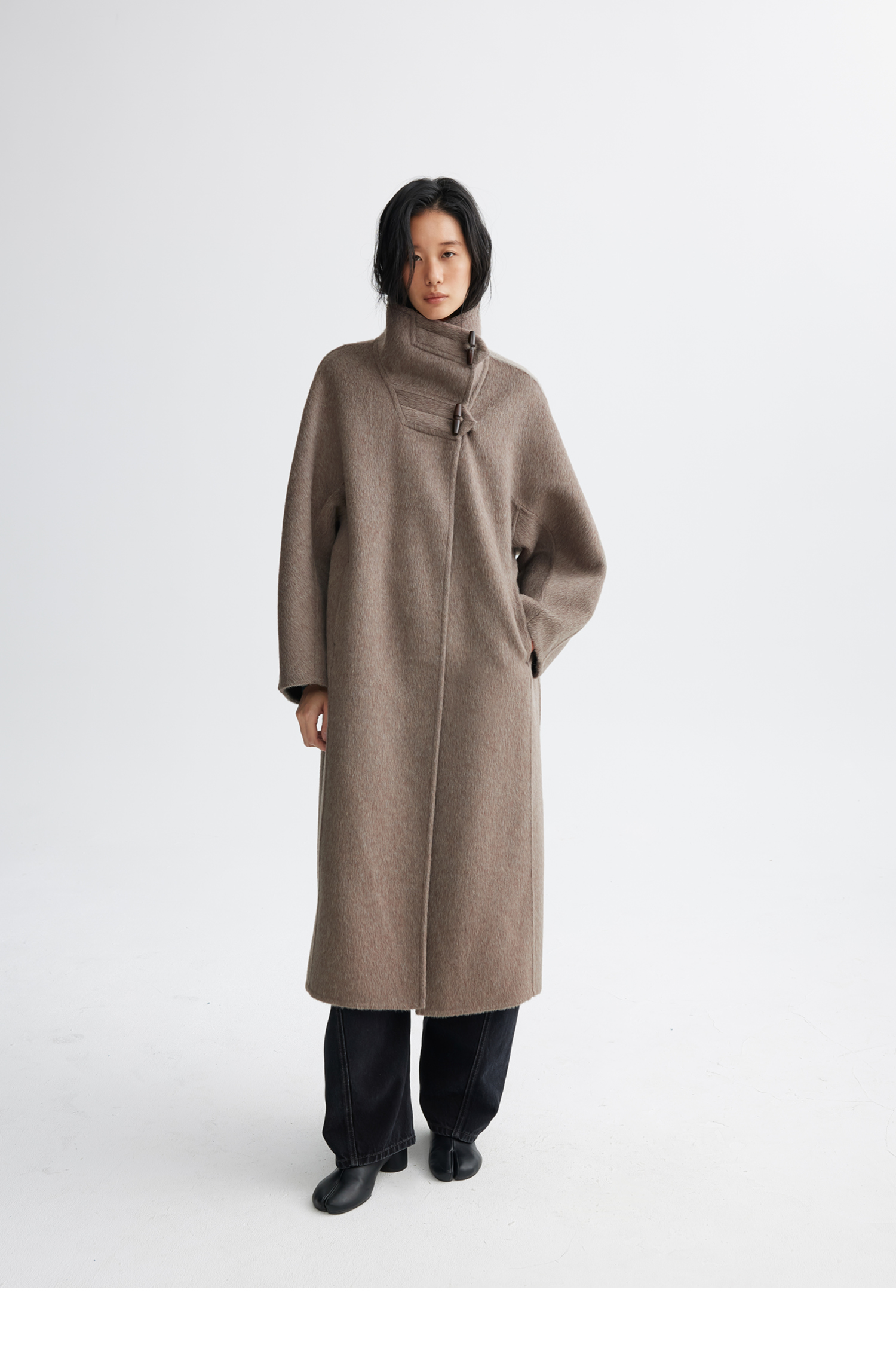 素舶 羊驼毛兔毛羊毛混纺软糯保暖亲肤牛角扣设计感立领长款大衣