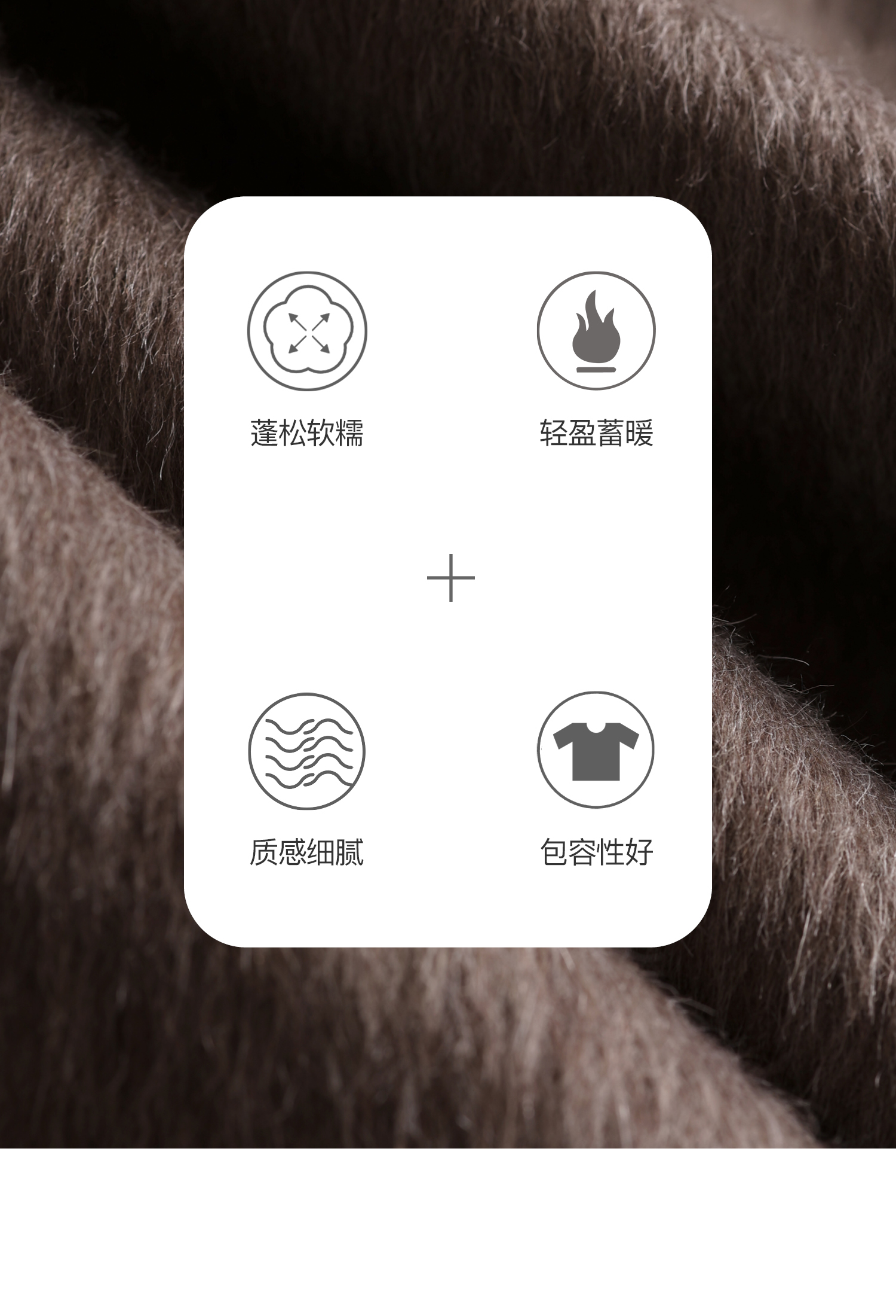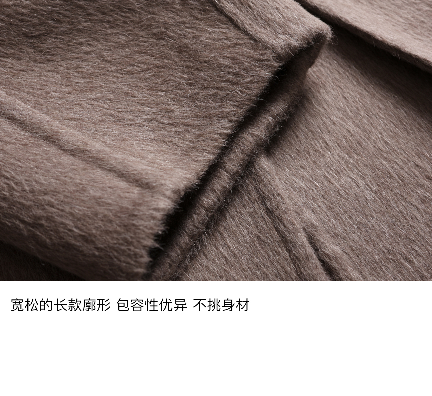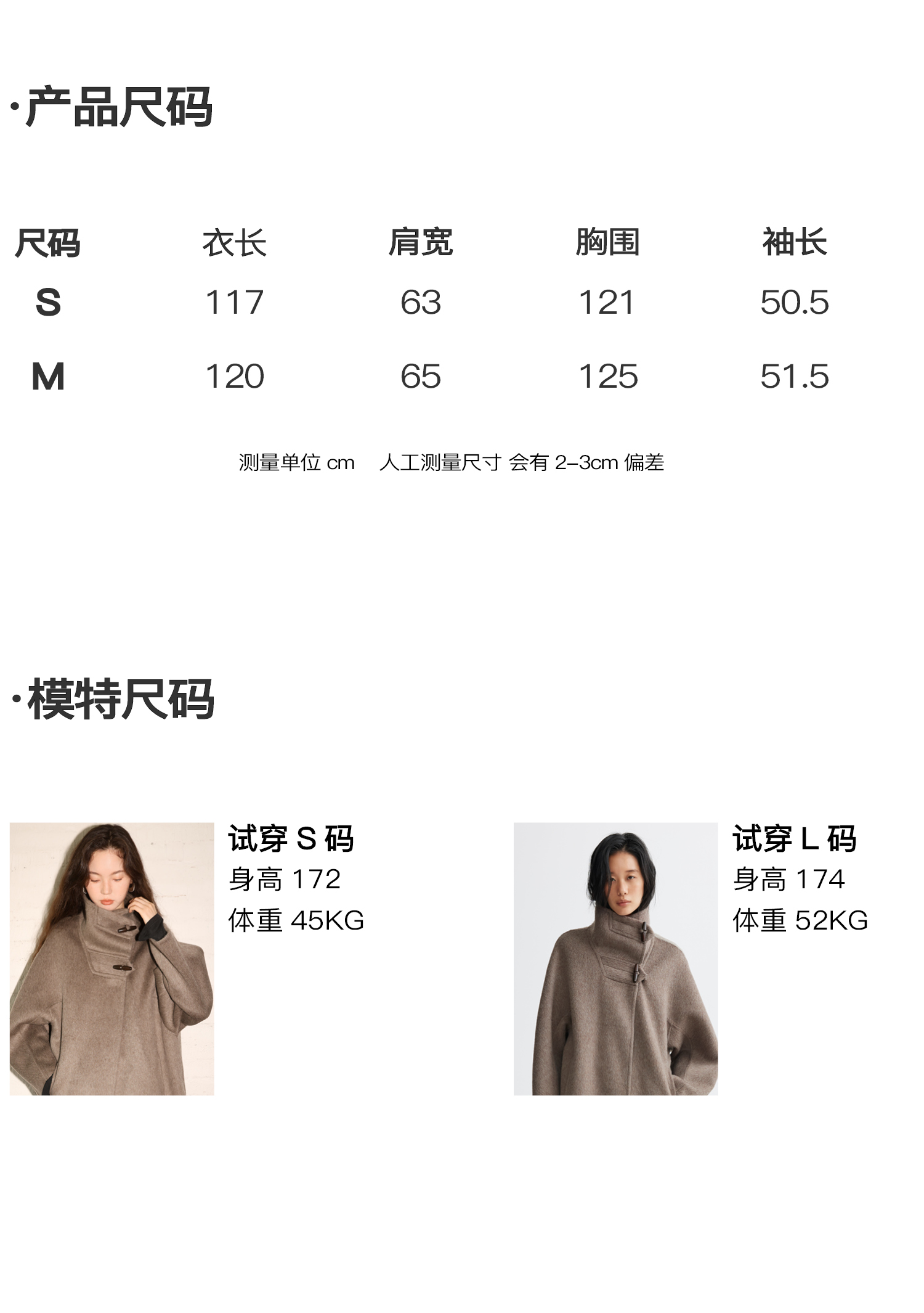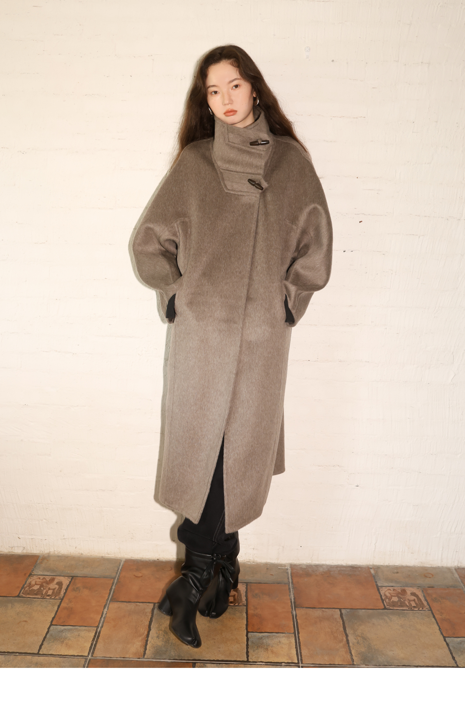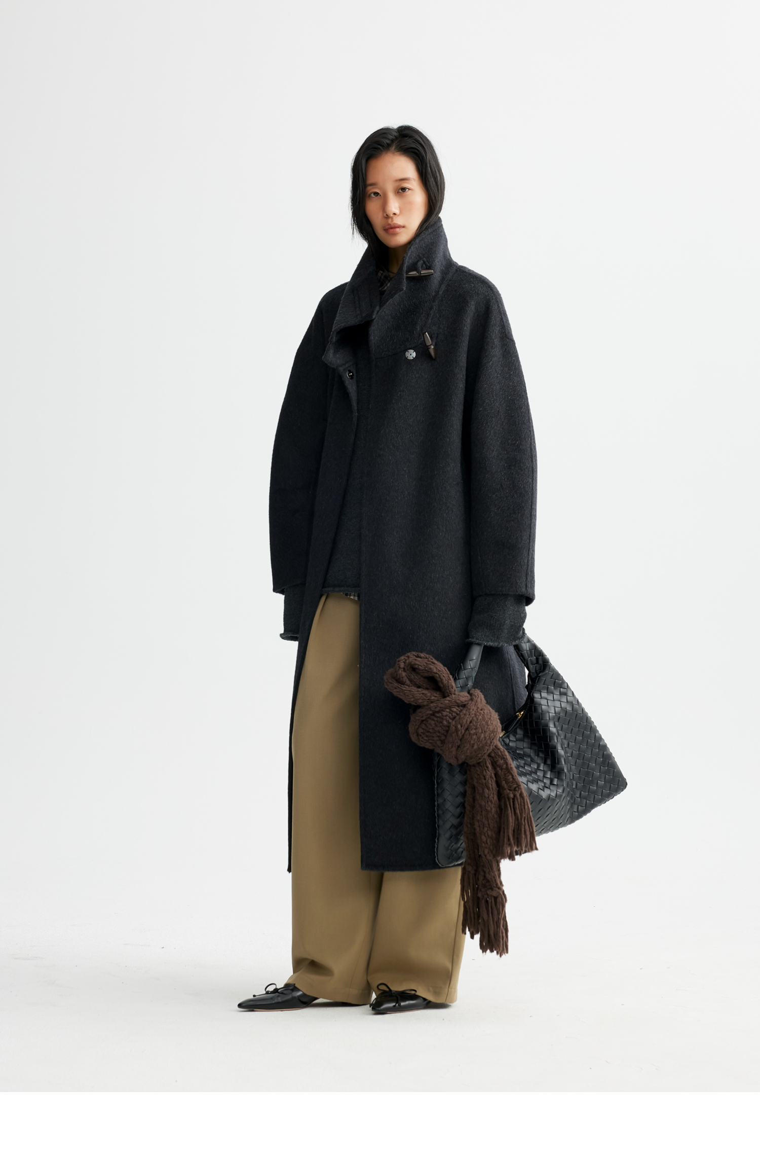 素舶 羊驼毛兔毛羊毛混纺软糯保暖亲肤牛角扣设计感立领长款大衣