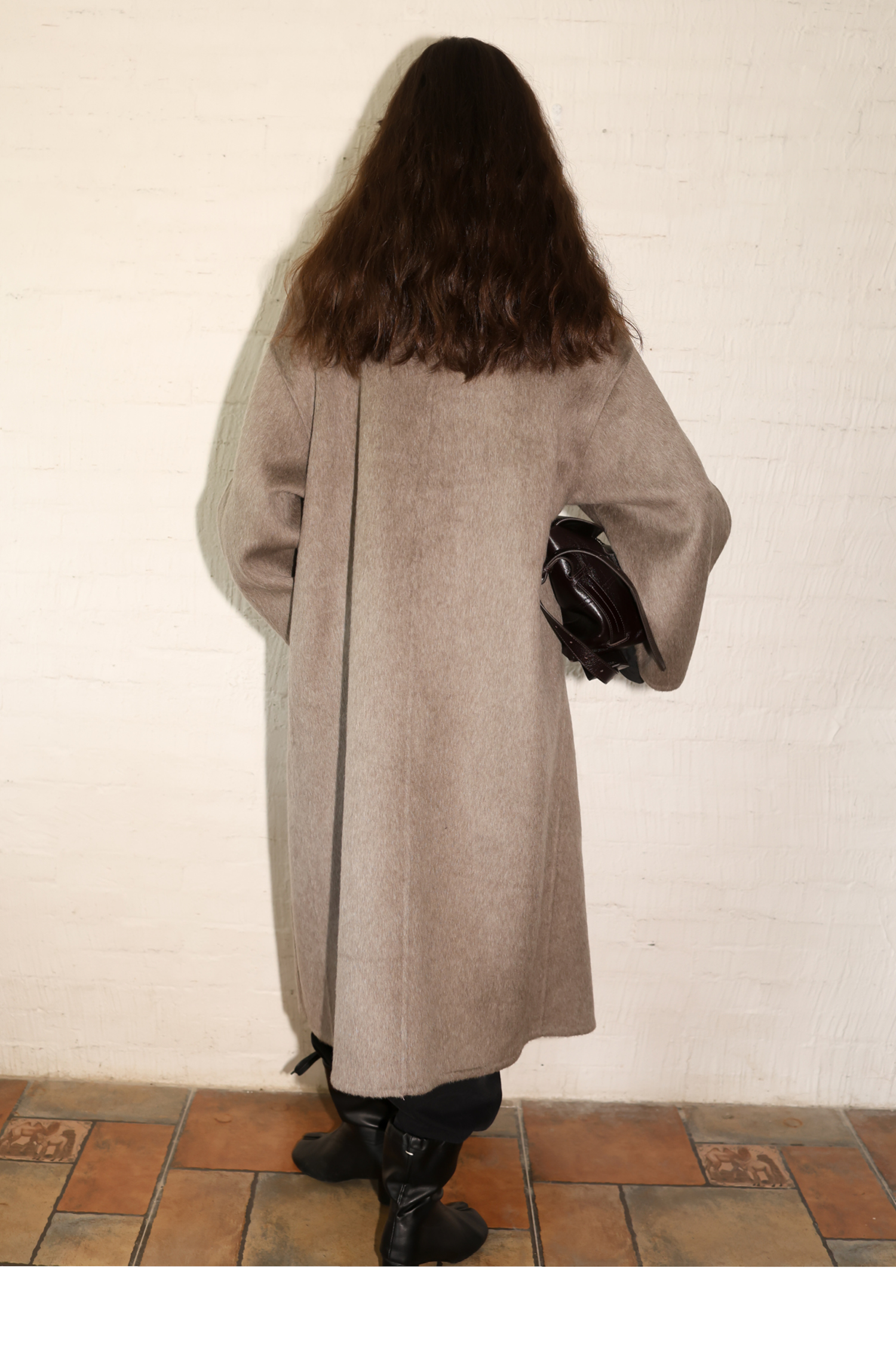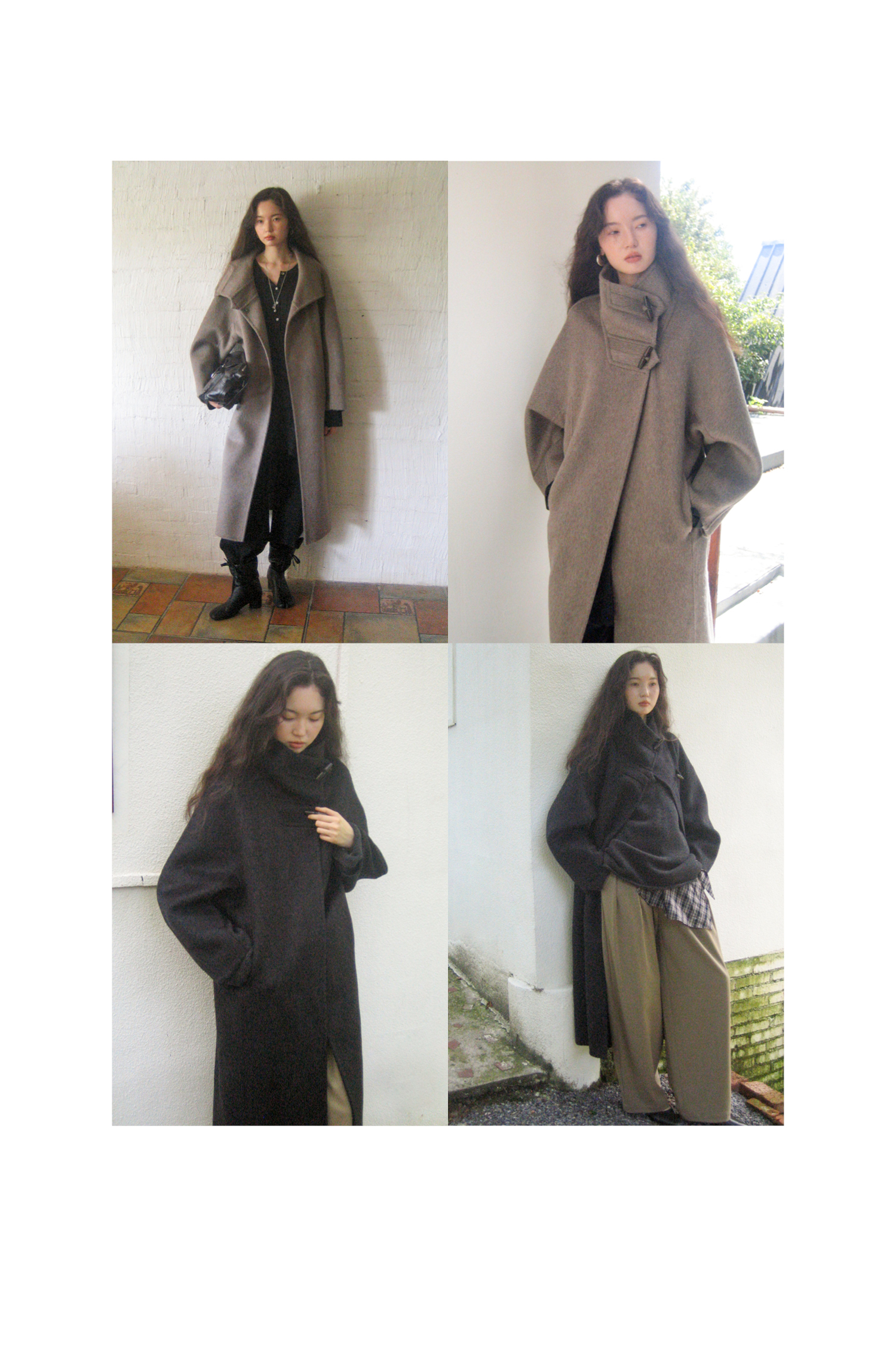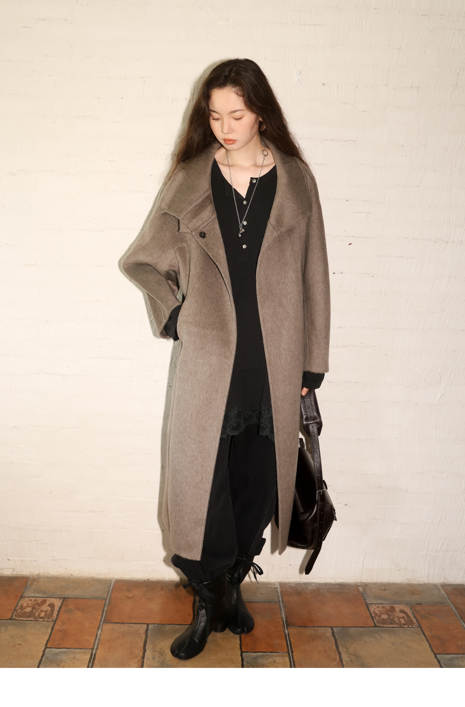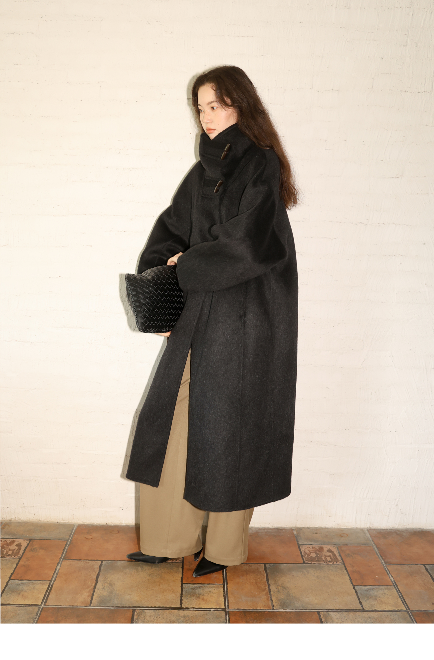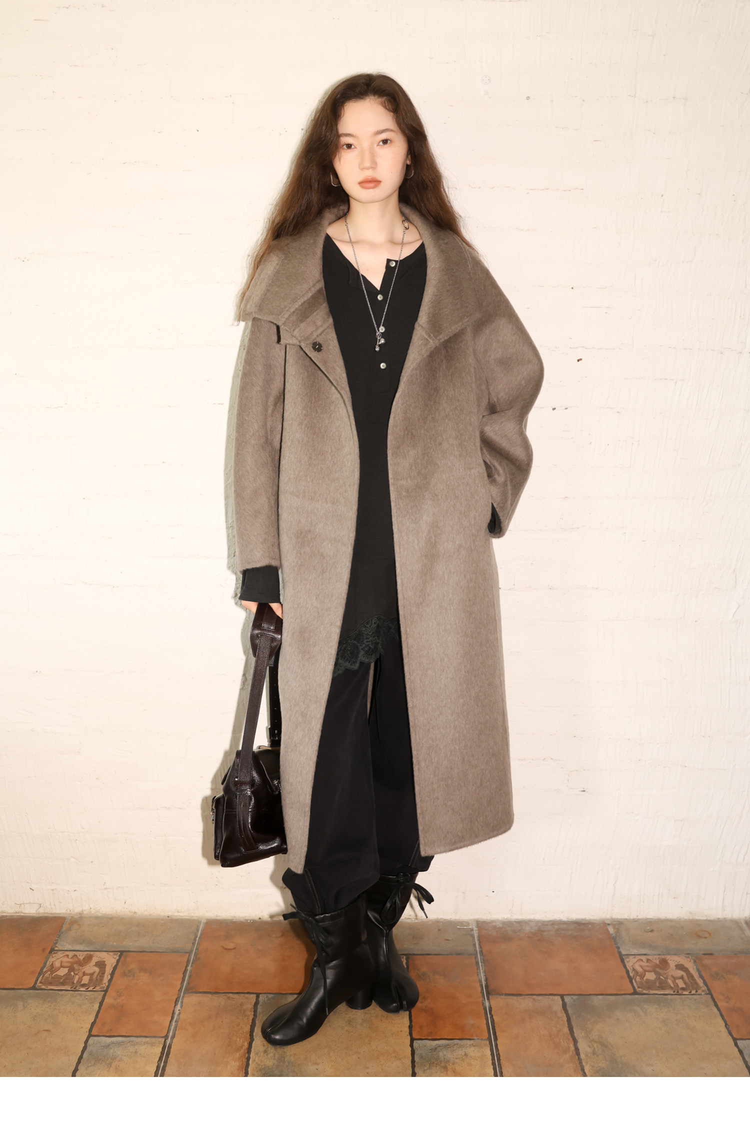 素舶 羊驼毛兔毛羊毛混纺软糯保暖亲肤牛角扣设计感立领长款大衣