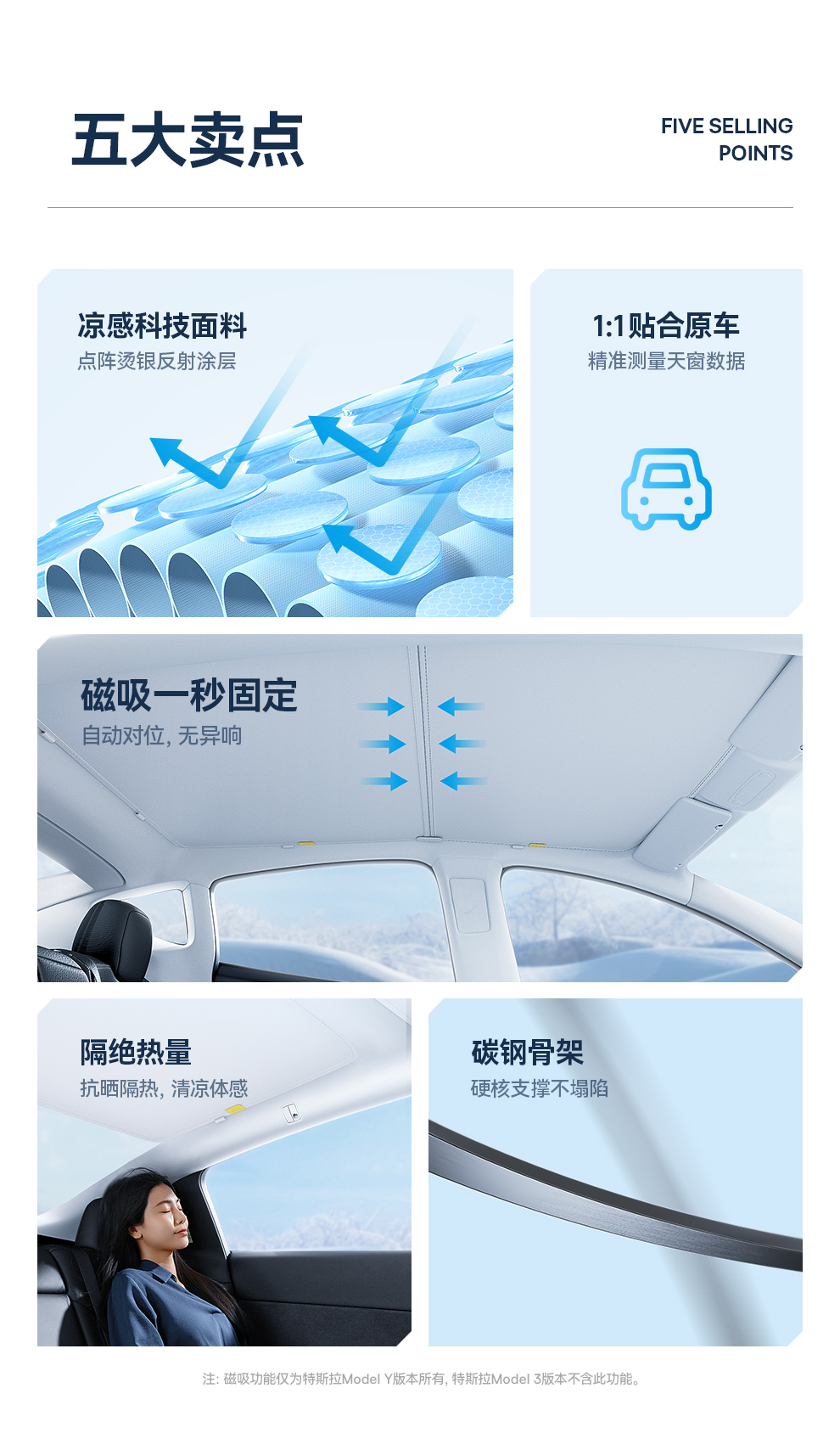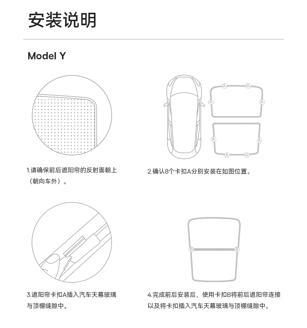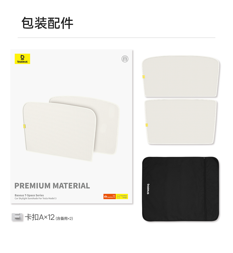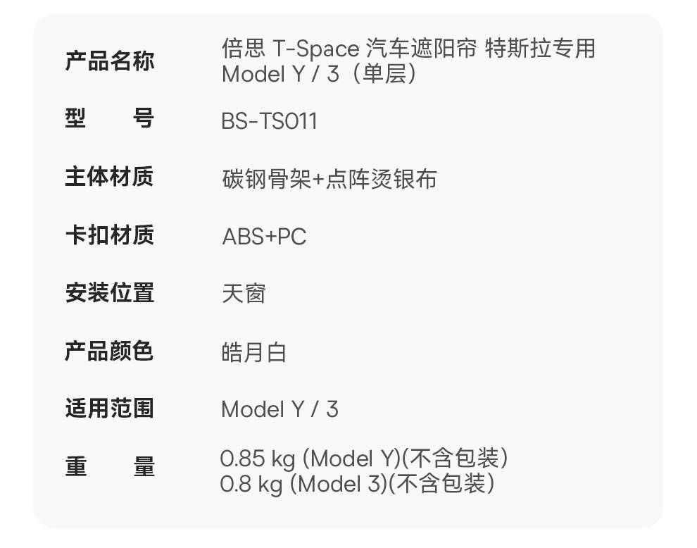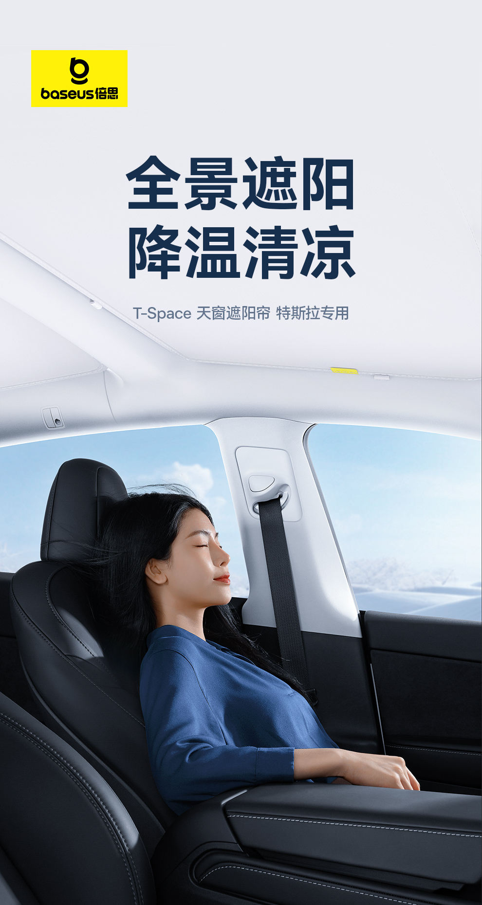 倍思 T-Space 天窗遮阳帘 特斯拉Model Y/Model 3专用