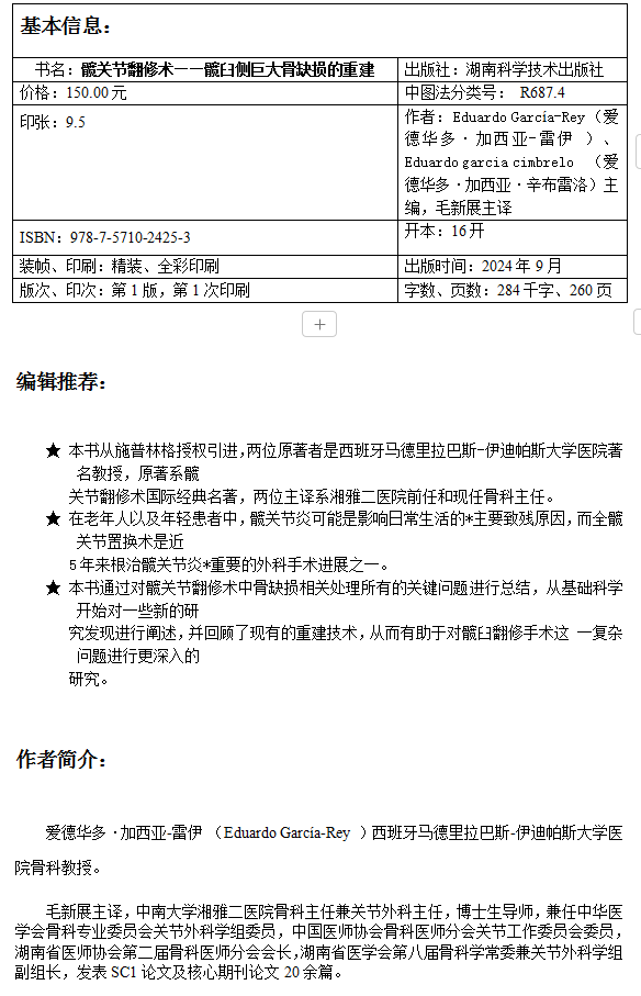 髋关节翻修术——髋臼侧巨大骨缺损的重建 原版授权全彩呈现 中文翻译经典推荐