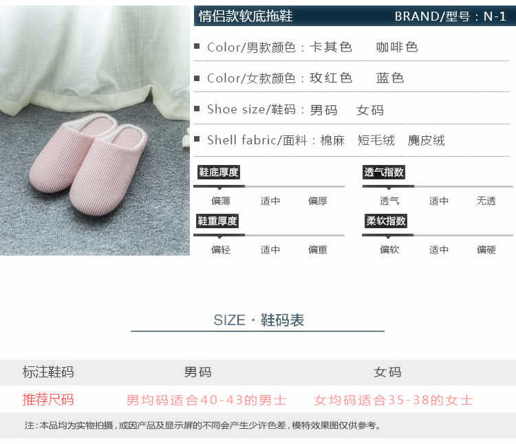【优美】日式居家居无声棉拖鞋 不伤地板