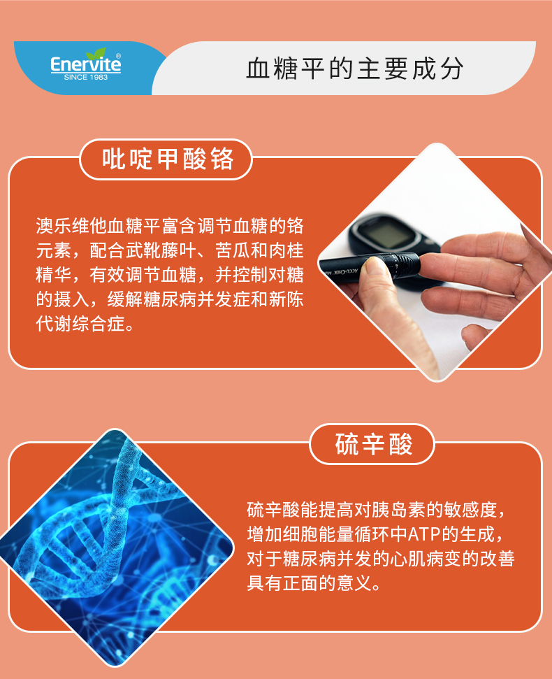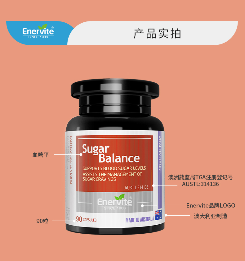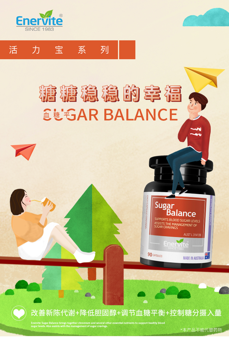 【义乌保税】EnerVite澳乐维他血糖复合营养素 铬 肉桂净化平衡片配方90粒/瓶