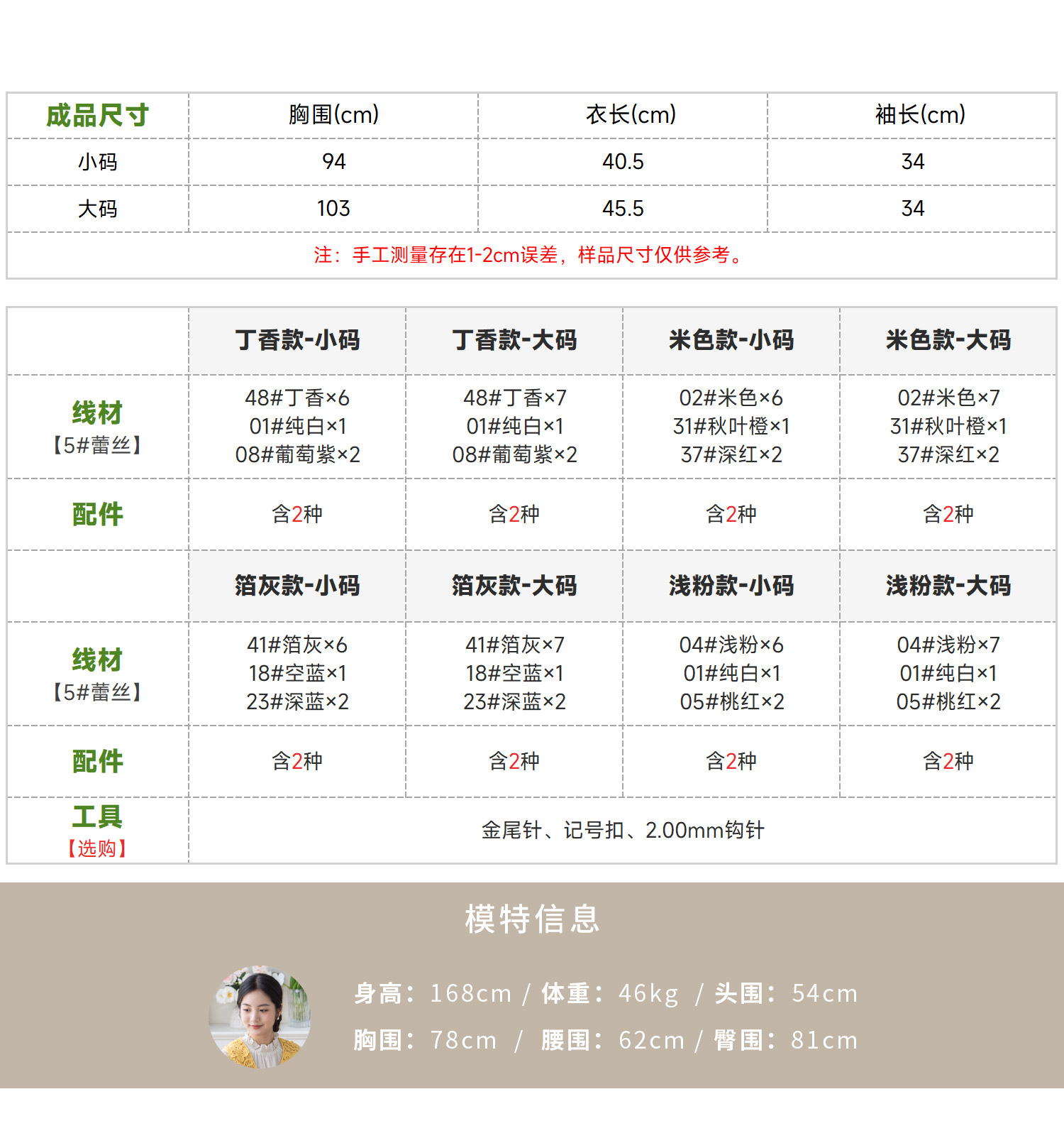 苏苏姐家妍钦小开衫手工DIY钩针纯棉蕾丝线毛线团自制材料包