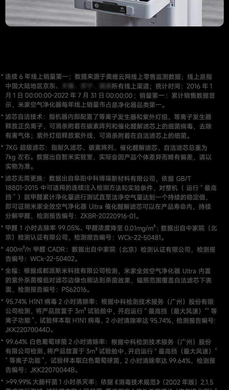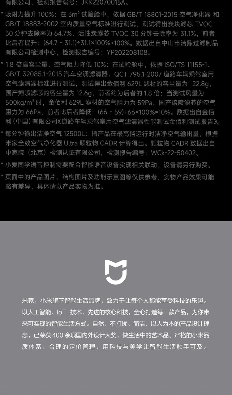 米家分解式除甲醛空气净化器 除菌除过敏原滤芯自清洁空气净化器Ultra