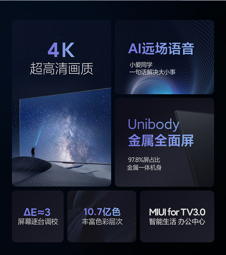 【小米】小米电视EA75 2022款 75英寸 金属全面屏 远场语音 逐台校准4K超高清智能教育电视机