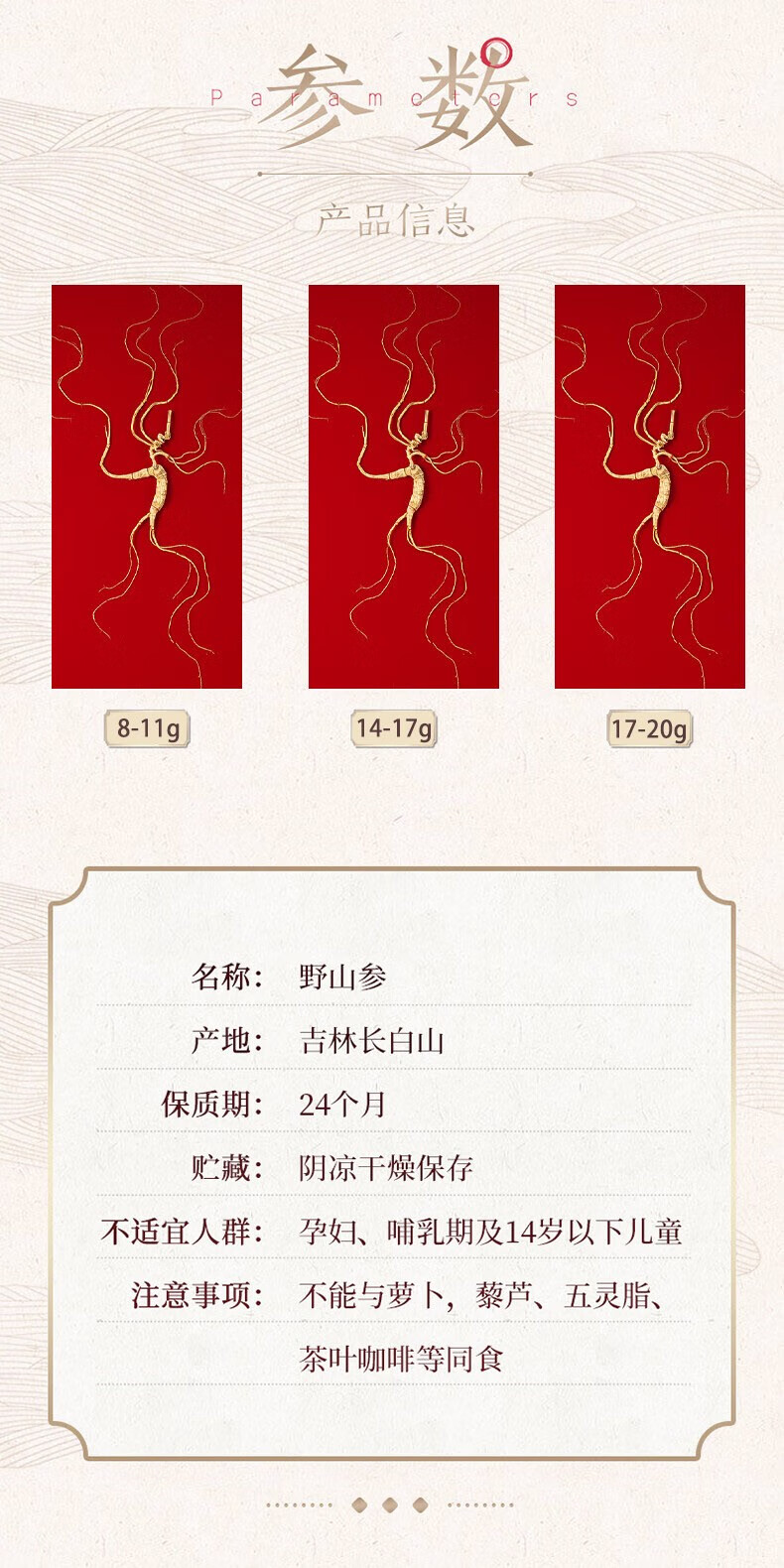 长白山人参 野山参A1一等 约20年/8-11g/盒