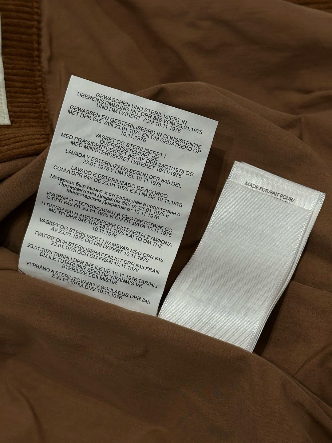 内衬75%纯棉、25%尼龙,袖子内衬100%尼龙。