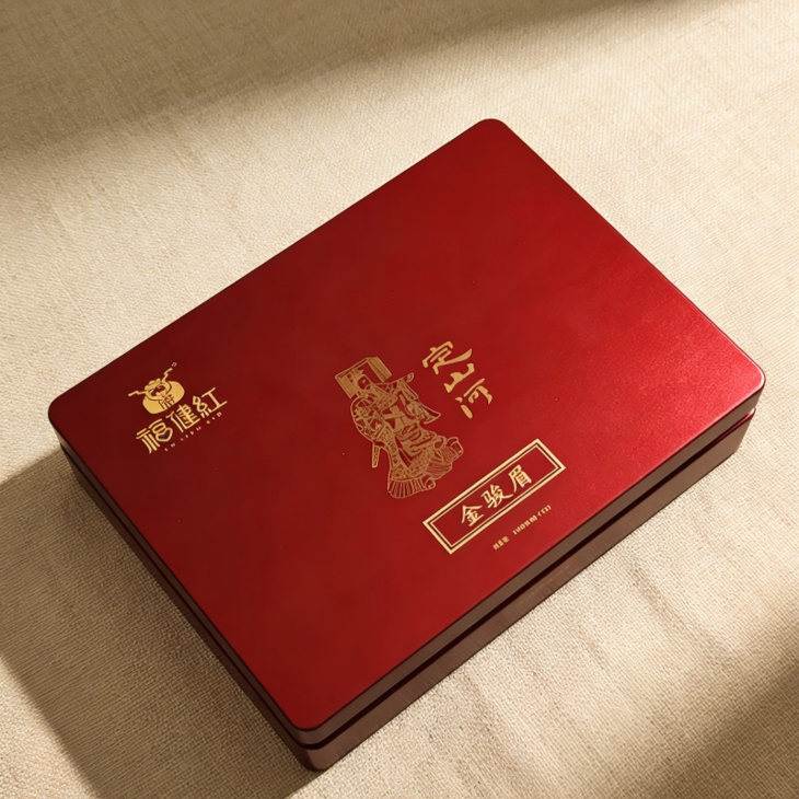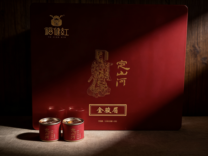悉心匠造的福健红・定山河金骏眉新年茶礼,钢琴烤漆衬烫金 “定山河” 纹样,恰似一轴铺展的新春盛卷。