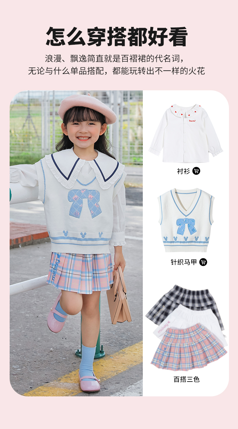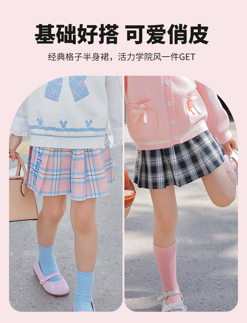 【商城同款】迪士尼春夏新款学院风格子半身裙231DQ0209
