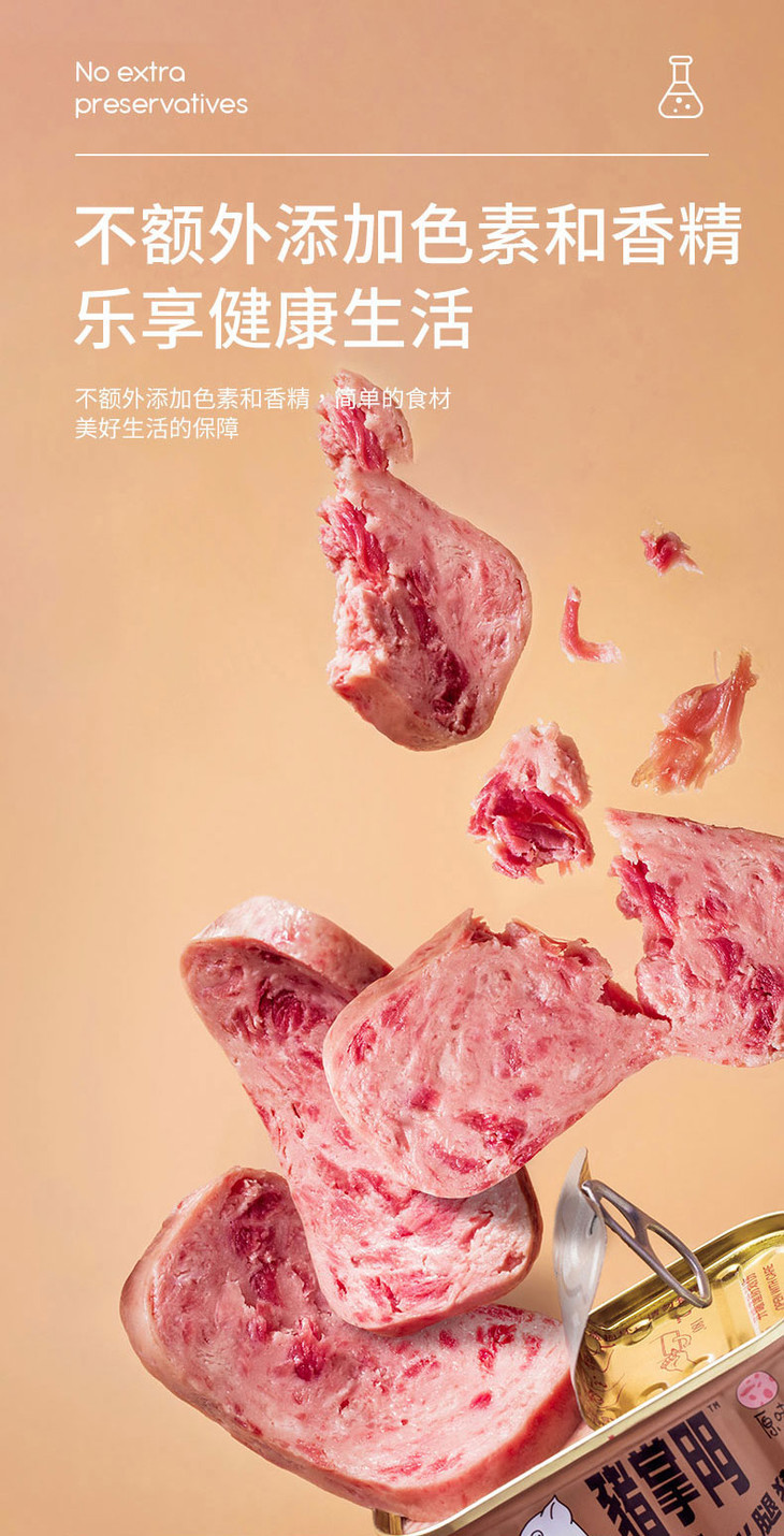 先来科普下,符合国家标准的午餐肉共有三个类别:优质的是火腿猪肉罐头(含猪肉量在85%以上),次之,火腿午餐肉(淀粉增多,肉减少),还有次次之:普通午(淀)餐(粉)肉(真的是感觉在吃面粉那种)。这款猪掌门火腿猪肉罐头,猪肉含量高达90%,吃过就真的刷新对“午餐肉”的认知。
