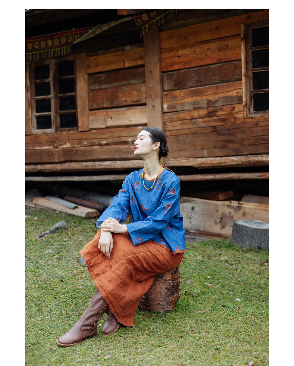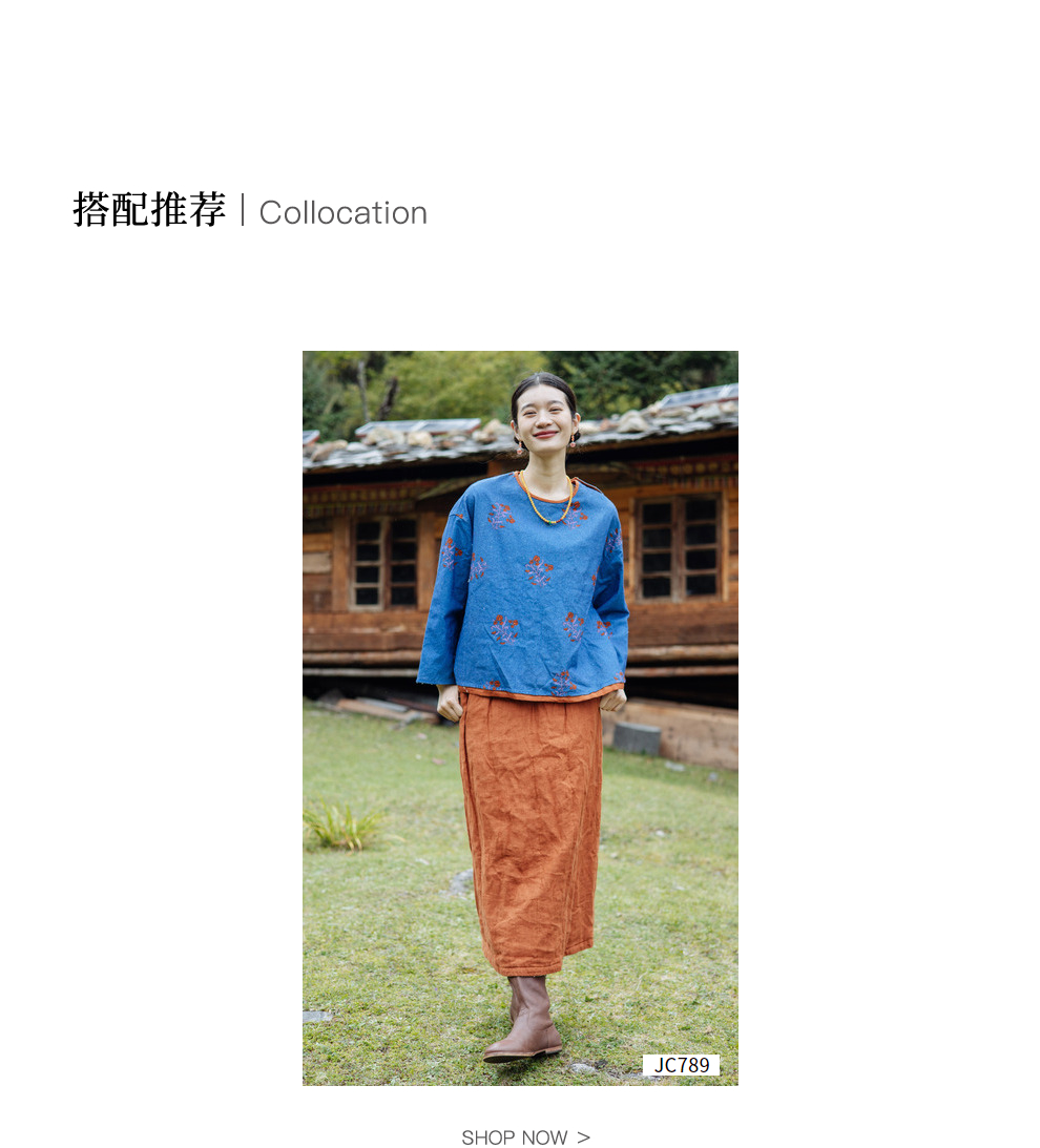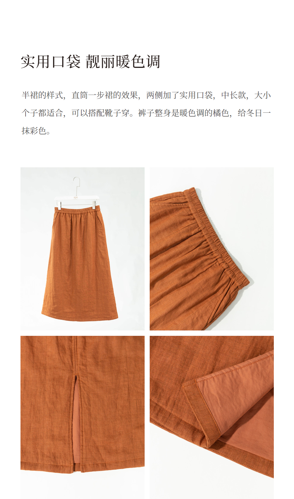 绽放旅行女装785朵/冬季士林色织亚麻松紧腰绗棉百搭半身中长裙