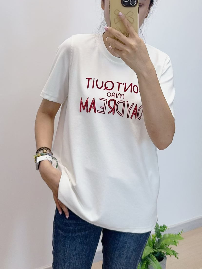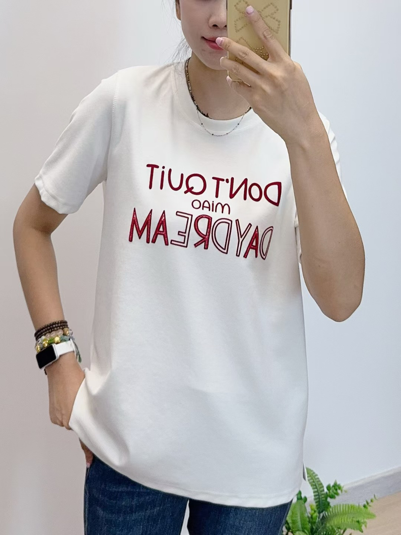水淼2025秋新款高弹休闲字母钉珠T恤1248