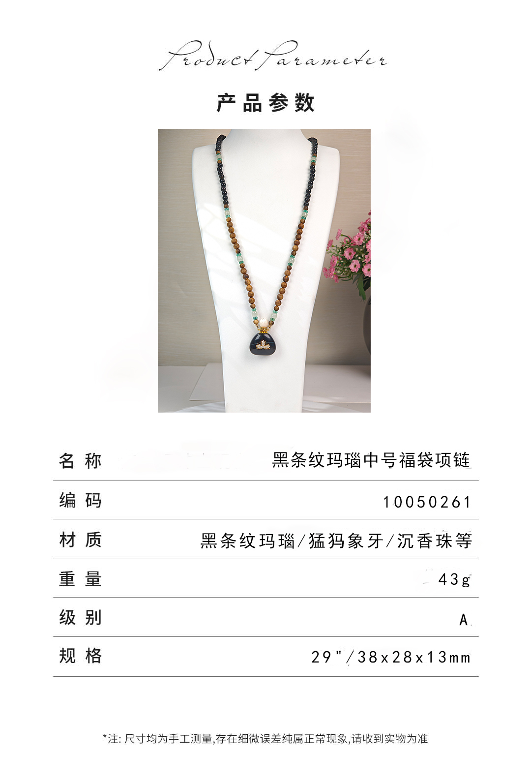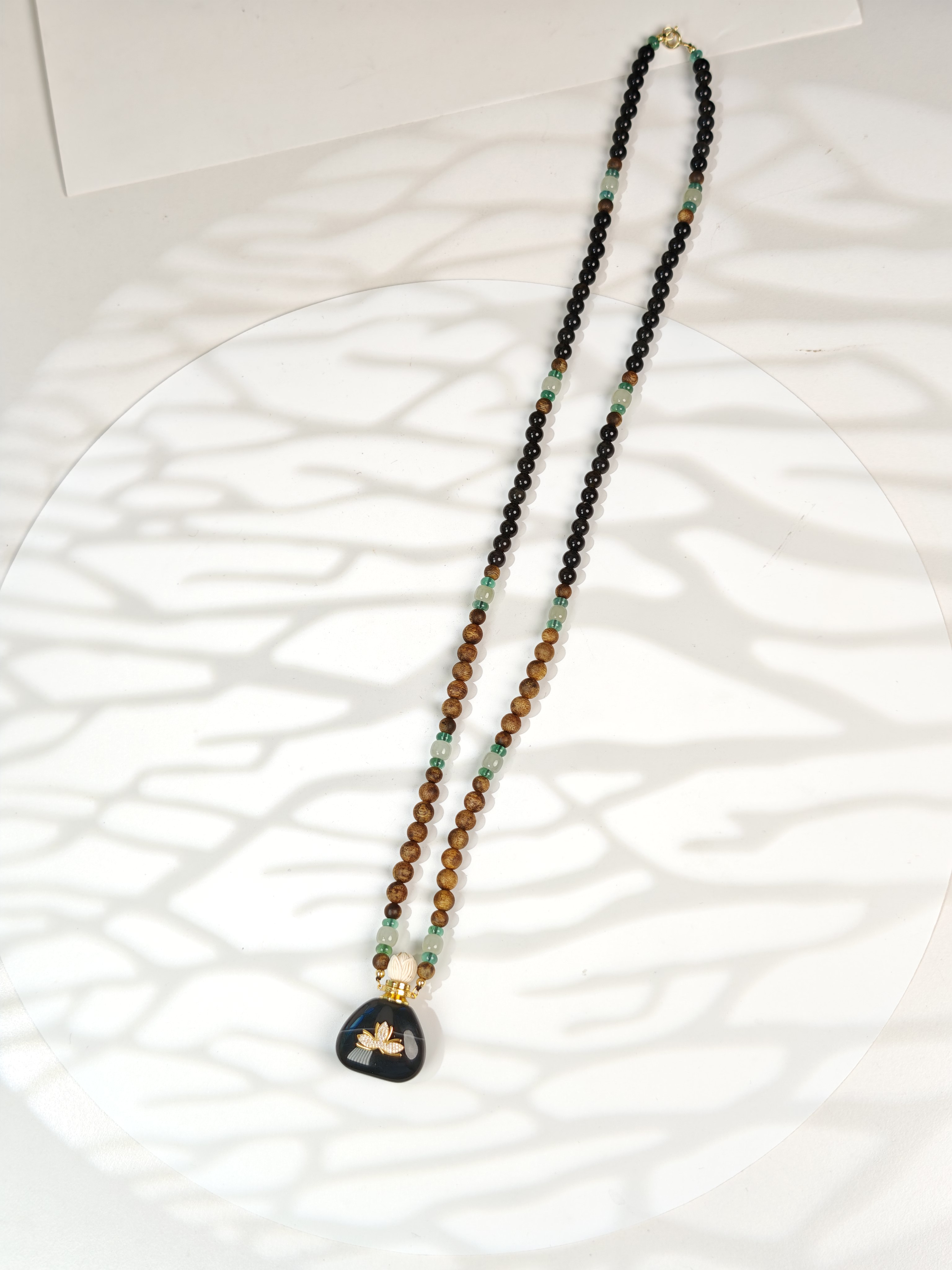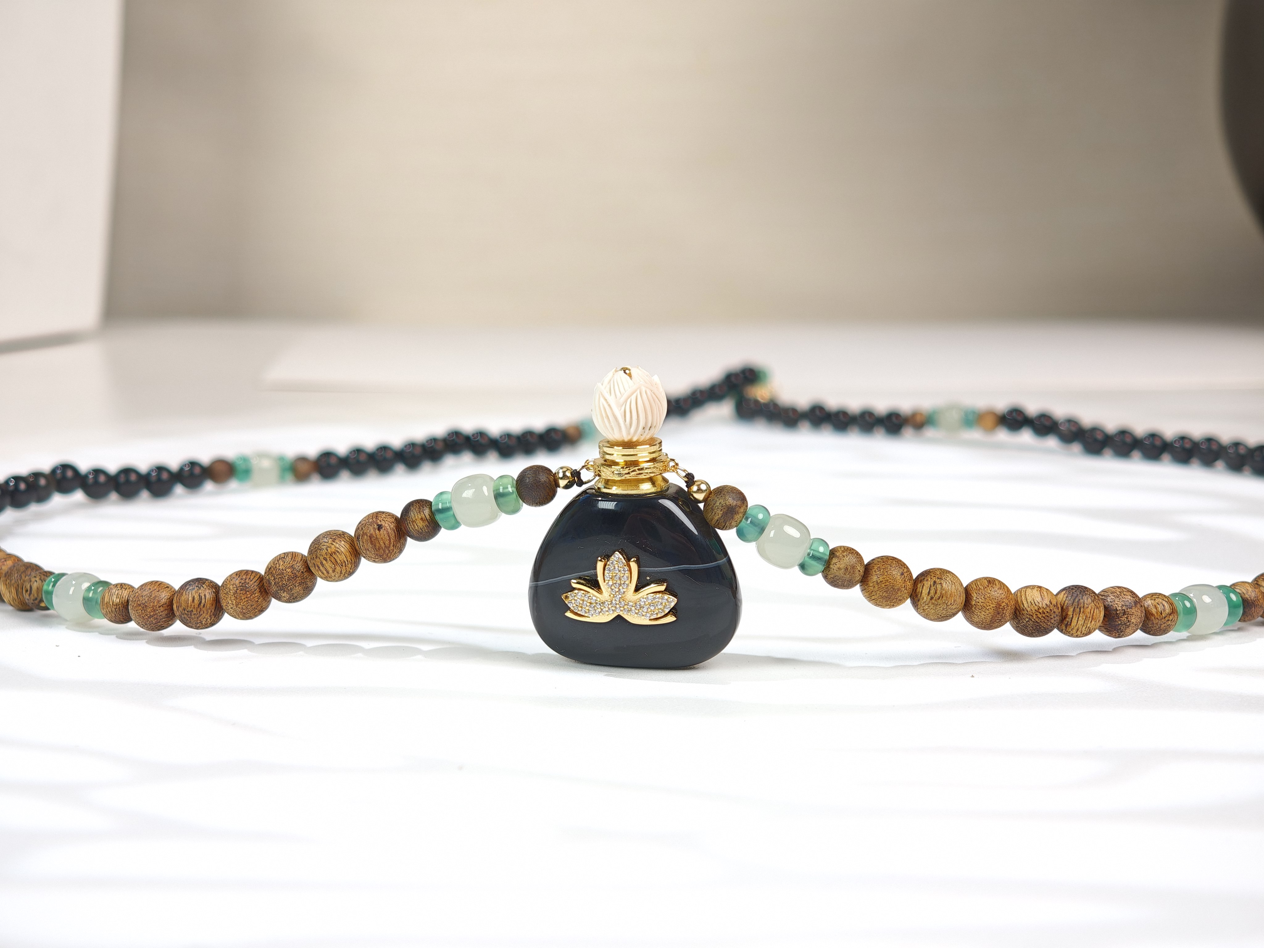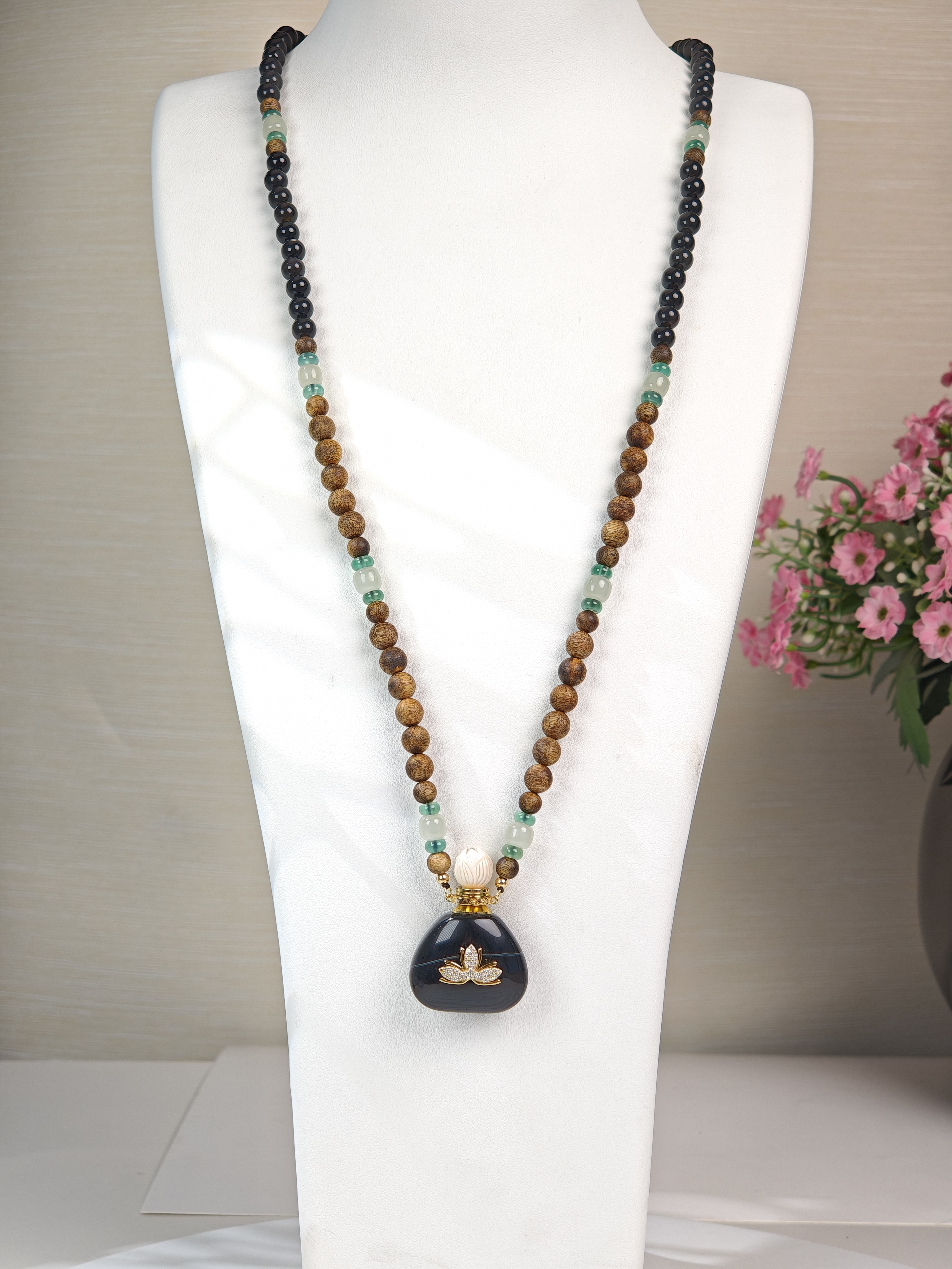 MELI&MOLI| 黑条纹玛瑙中号福袋莲花吊坠沉香珠点缀珠串项链