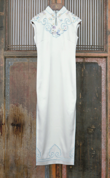 盛唐牡丹大师系列-卢梅红 | 云罗真丝如意纹手绣旗袍裙