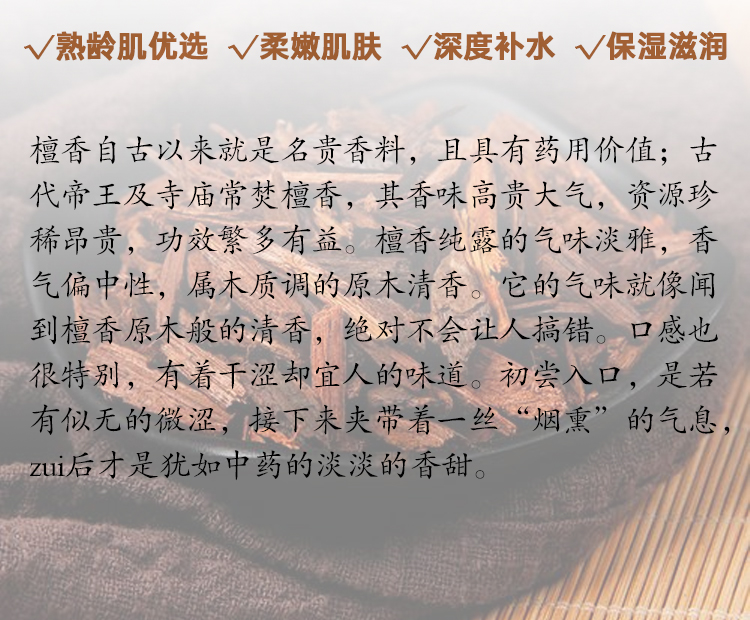 檀香:全能型护肤,抗yang化+kang衰,紧致收敛,私&密yan症,异味,瘙&痒,尿路感ran等