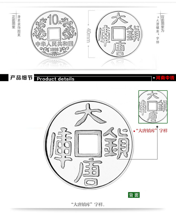 河南中钱  1998年大唐镇库金银纪念币  仿古方孔金银币 商品图5