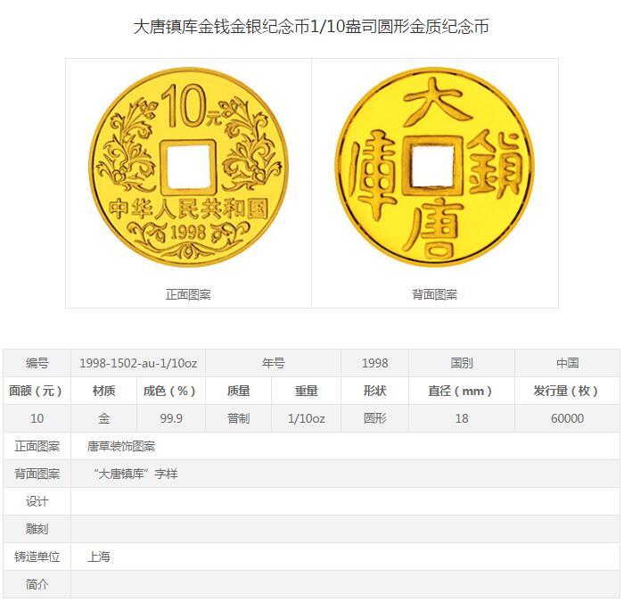 河南中钱  1998年大唐镇库金银纪念币  仿古方孔金银币 商品图1