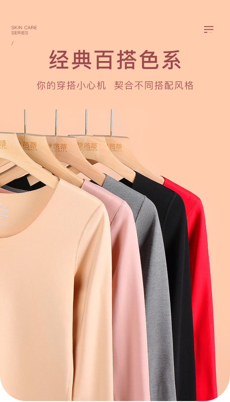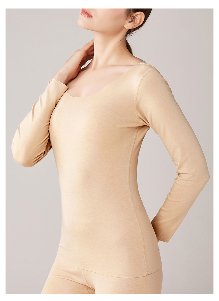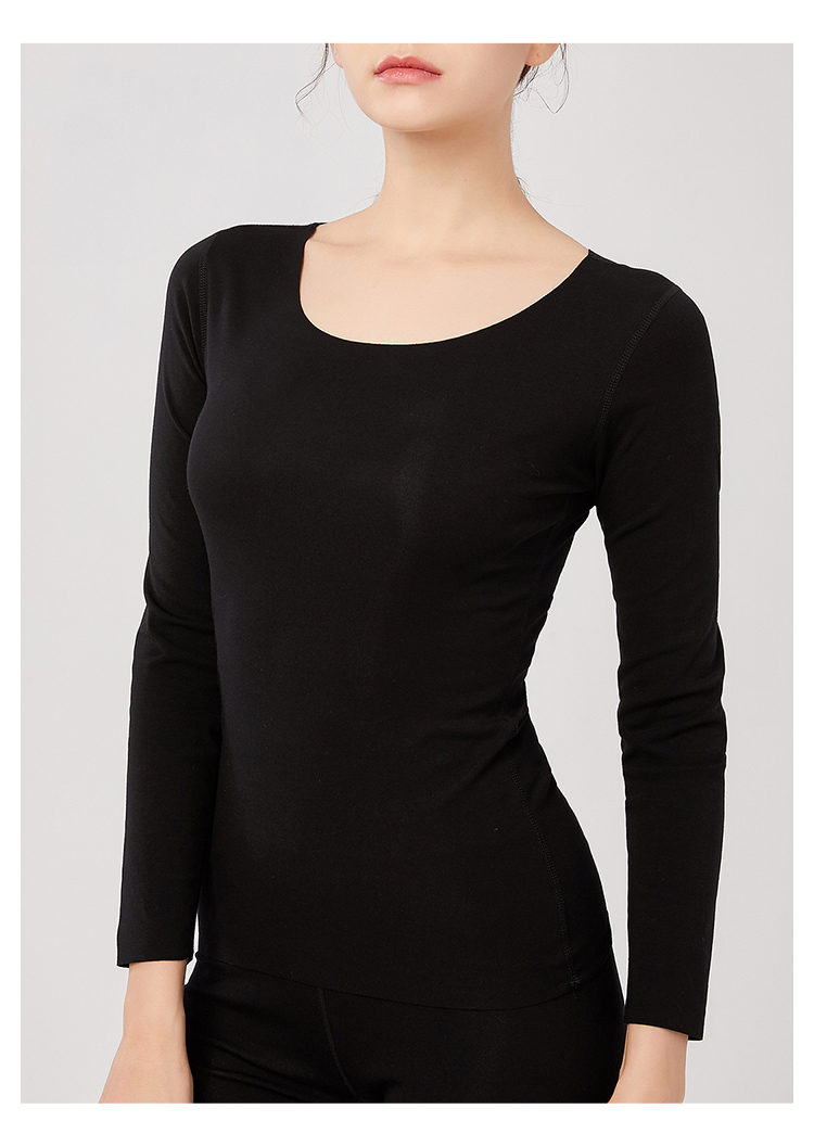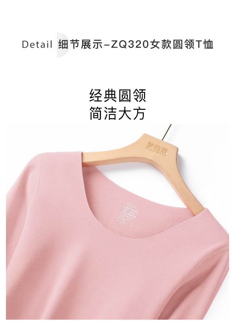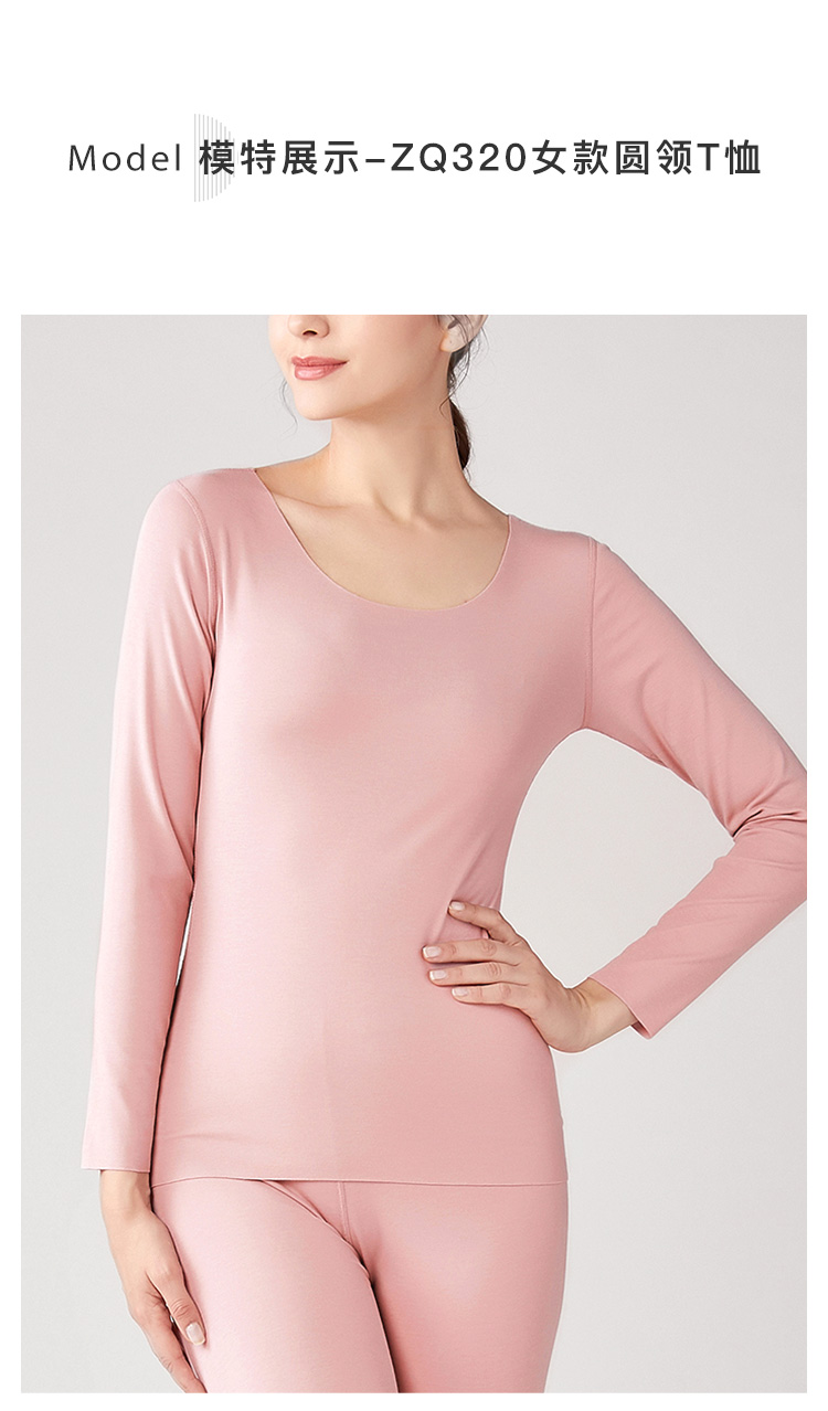 保暖内衣女德绒恒温打底衫无痕自发热德绒秋冬季秋衣上衣ZQ320女款圆领T恤