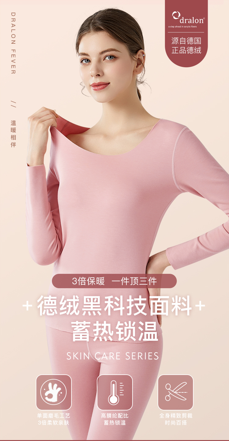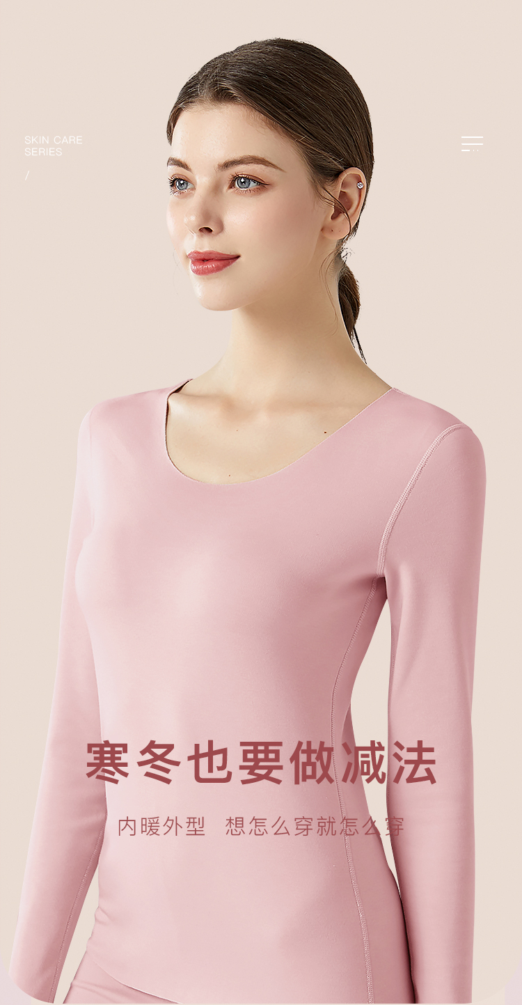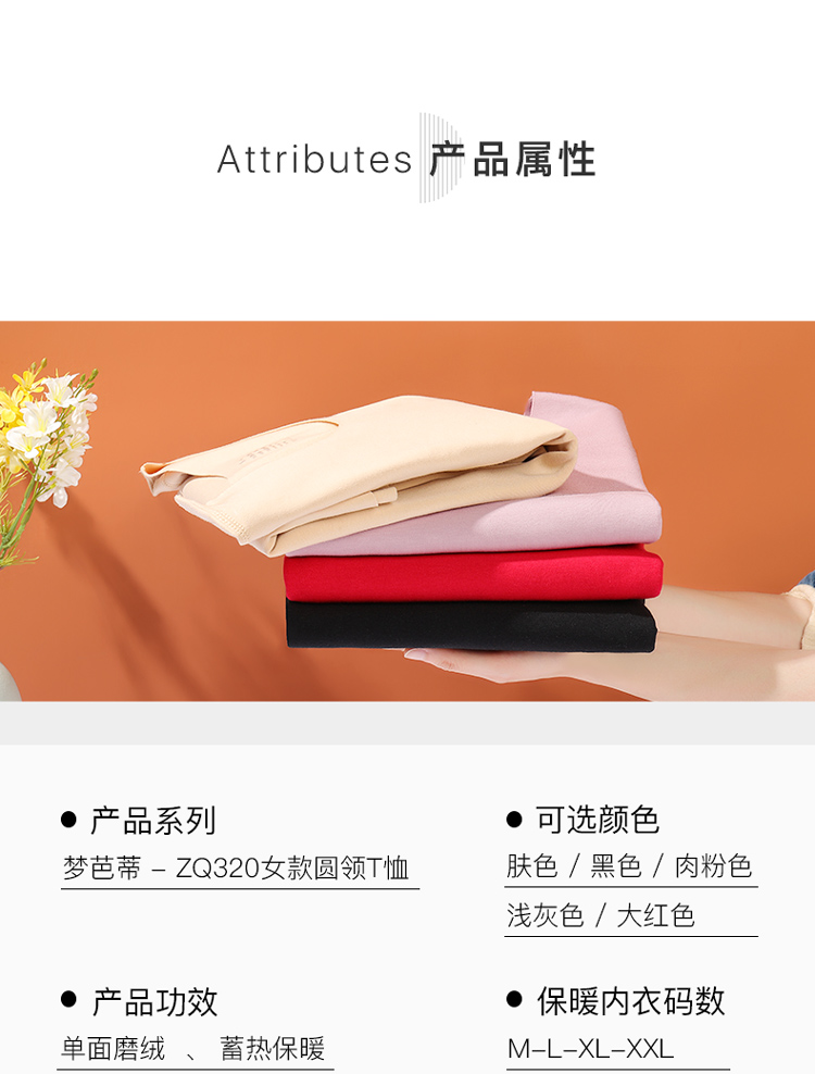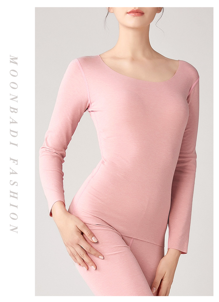 保暖内衣女德绒恒温打底衫无痕自发热德绒秋冬季秋衣上衣ZQ320女款圆领T恤