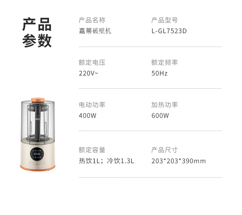 歌林(kolin) 嘉蒂破壁机 L-GL7523D【ZXZQ6.4】