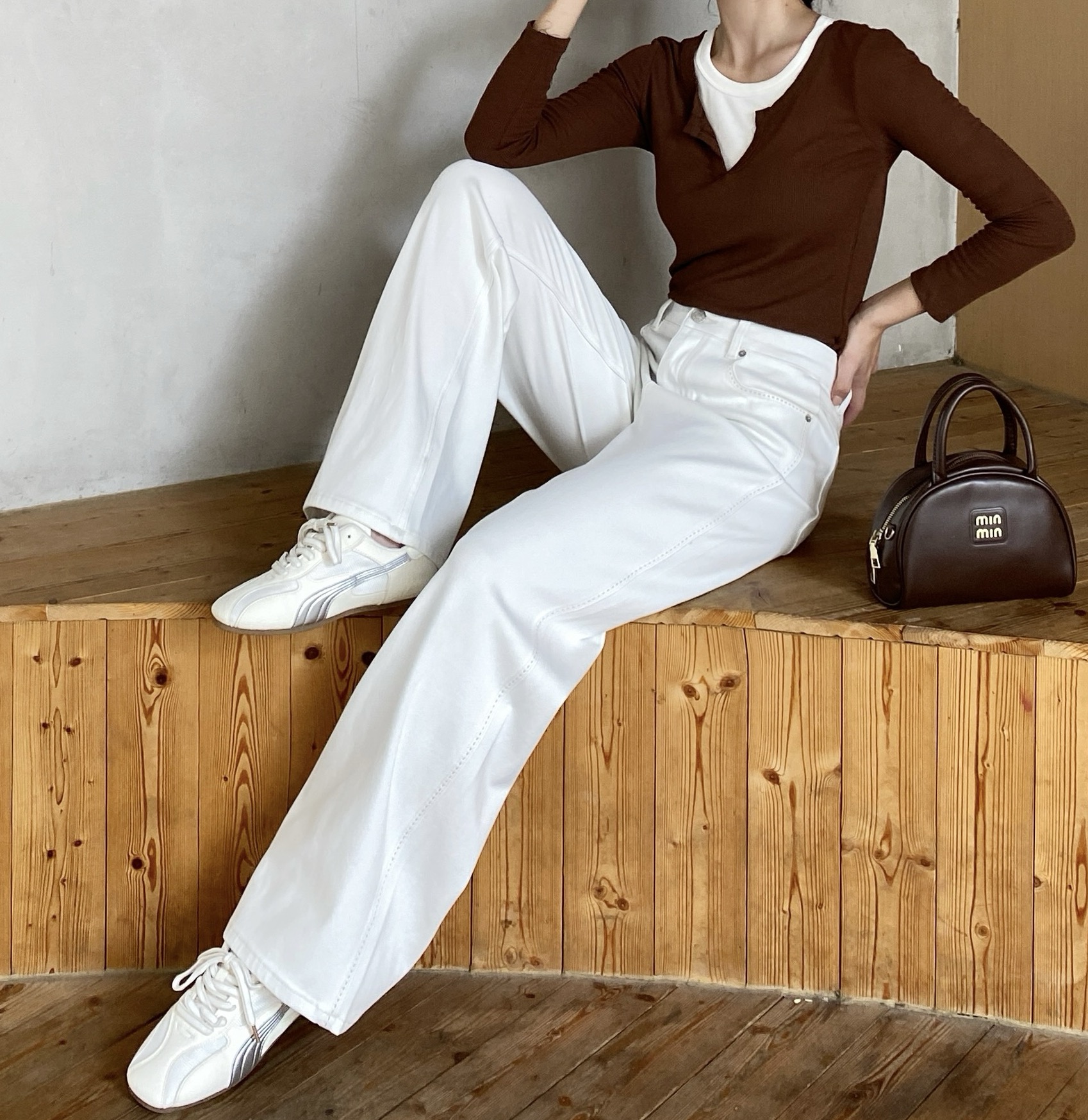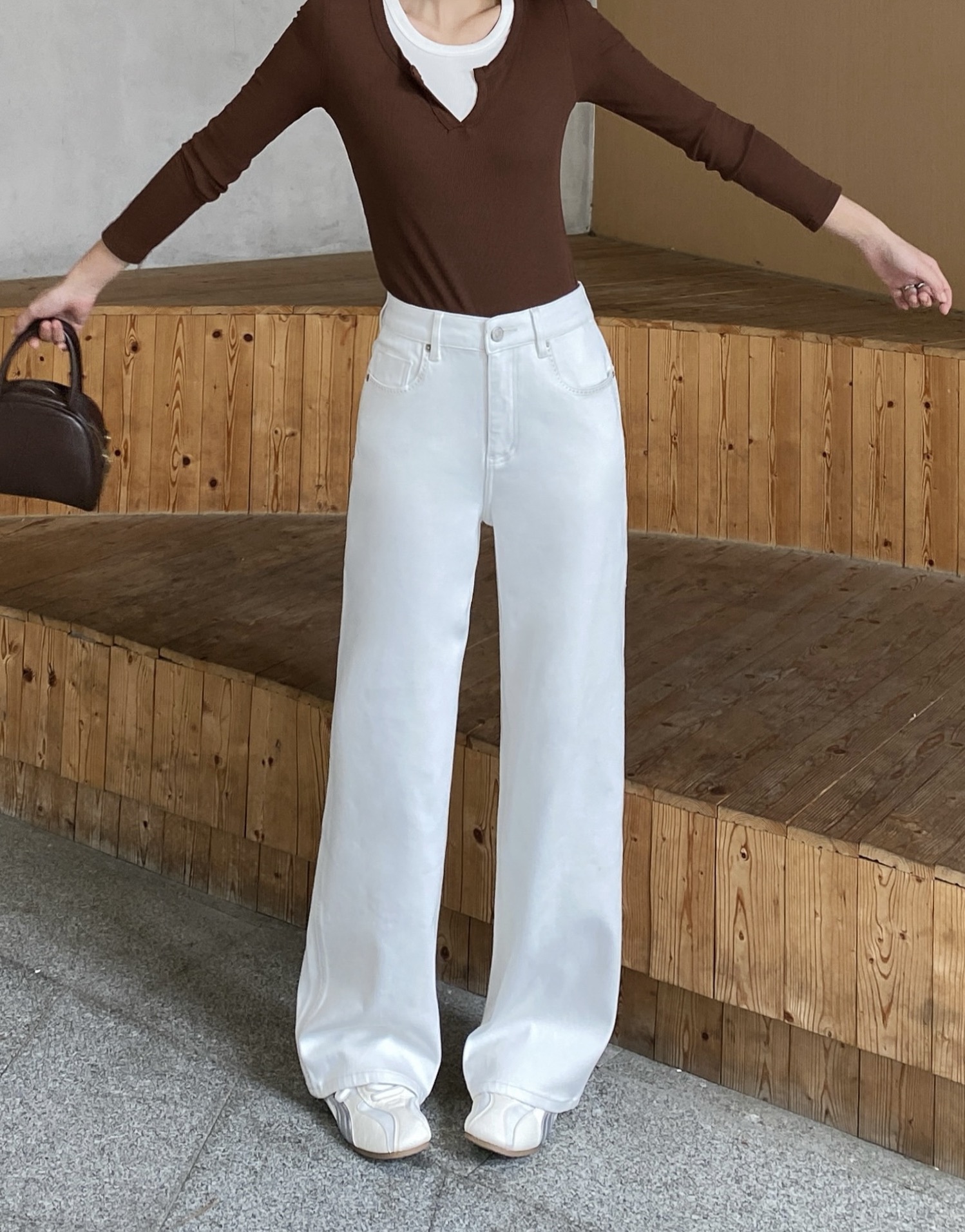 SZ3L23_皓色_裤子_春秋_高腰显瘦水洗直筒阔腿_高级女装_BERNIEELEN 伯妮斯茵