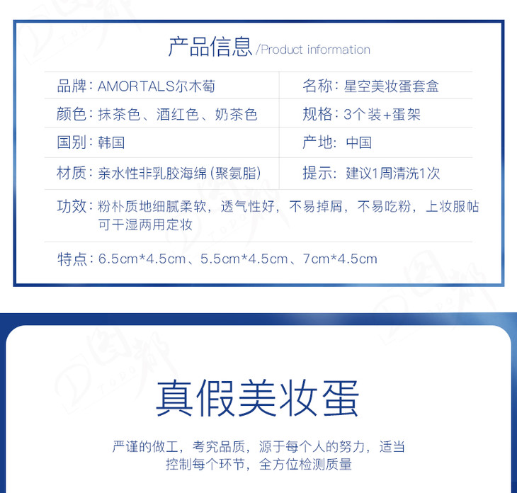【超好用带防伪】韩国AMORTALS尔木萄星空美妆蛋套盒干湿两用(3个美妆蛋+1个蛋架)
