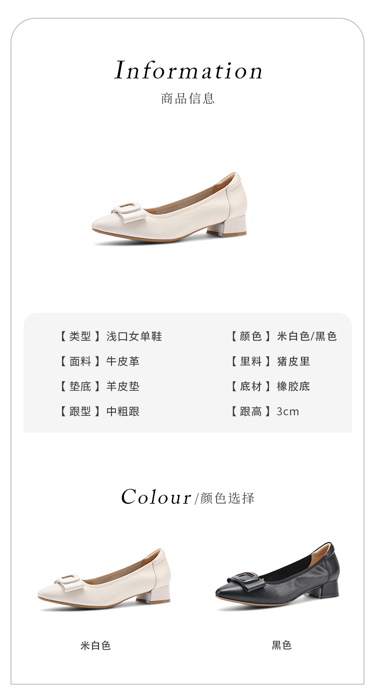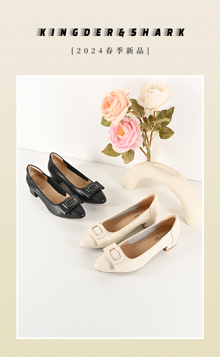 2024经典鲨春季女鞋新款中粗跟3cm优雅羊皮垫大众正装单鞋KG383-D17011