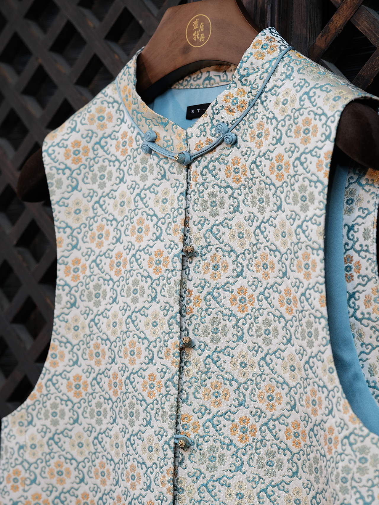 盛唐婧 |好运莲莲新中式宋锦对襟马甲