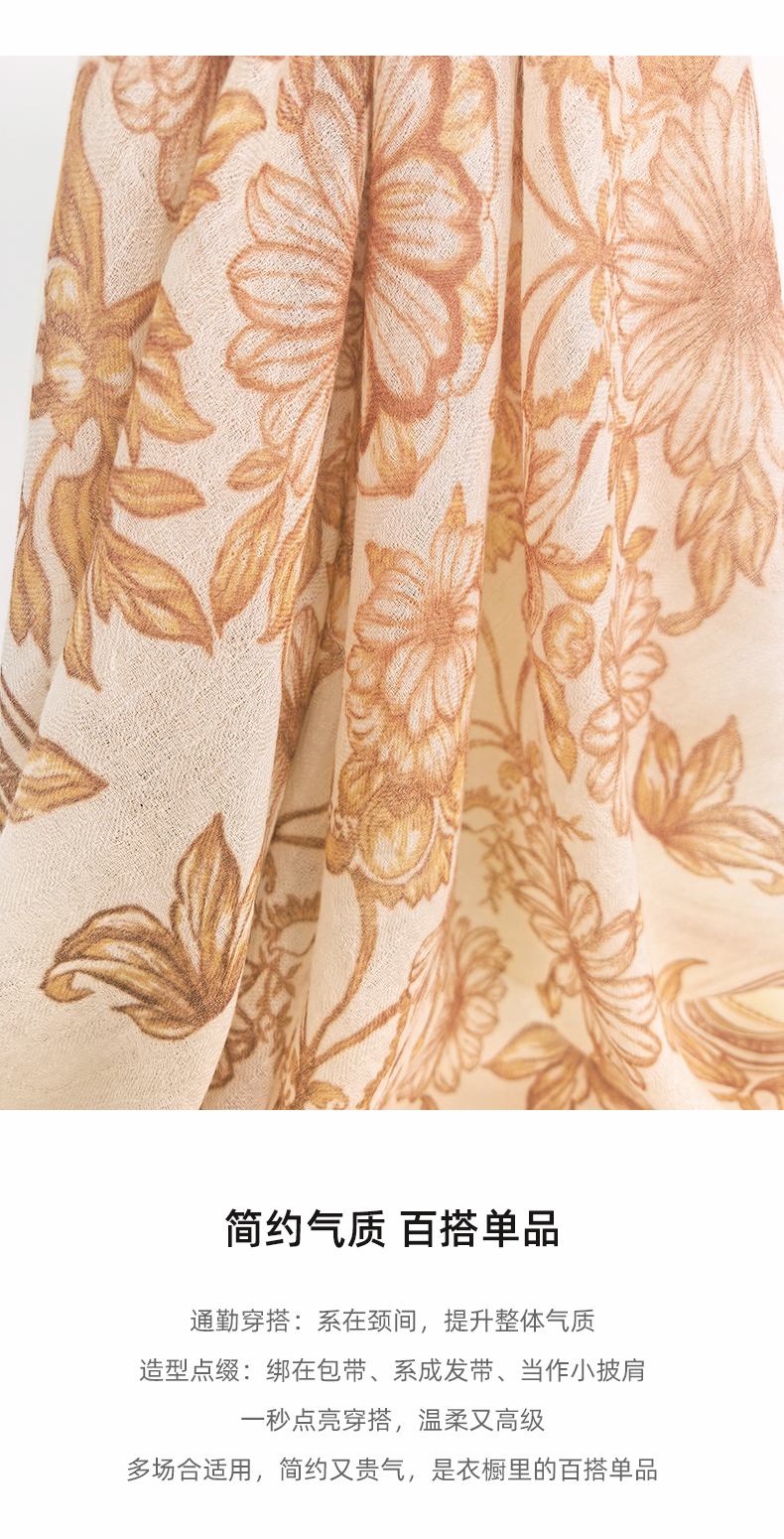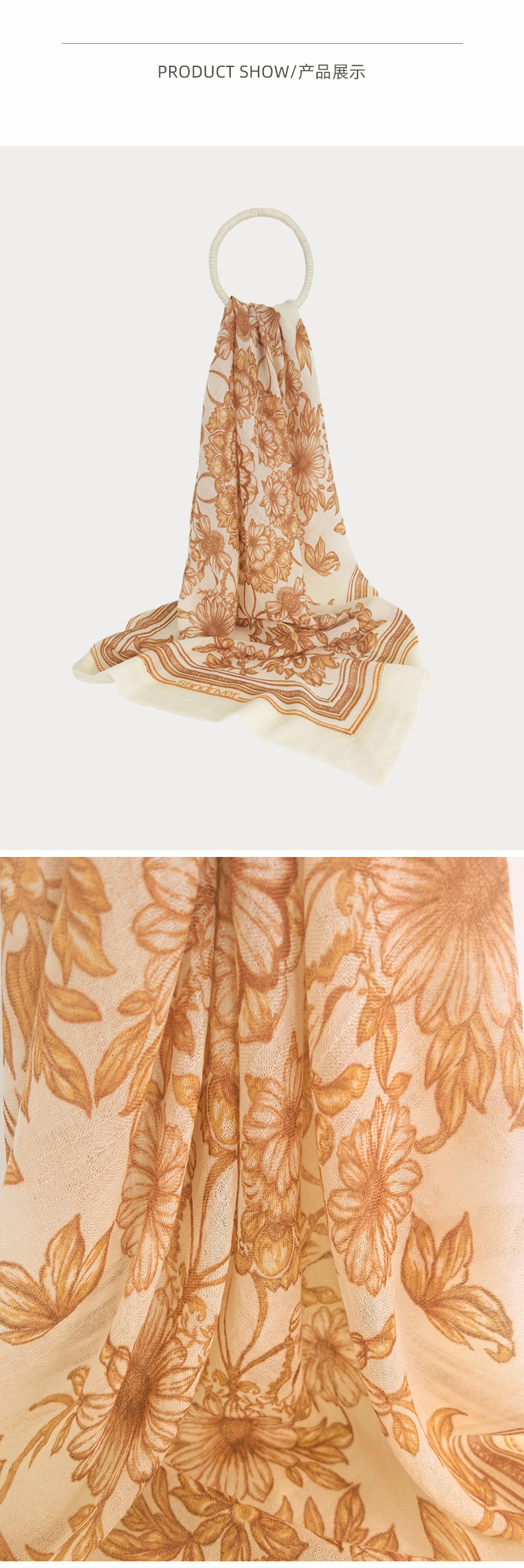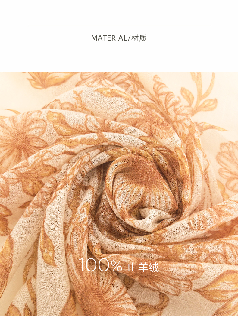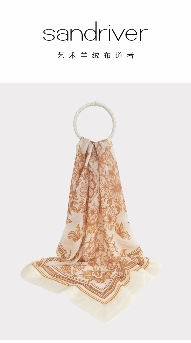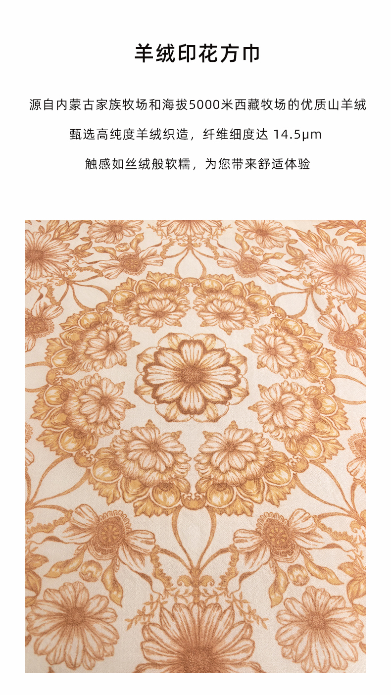 西藏格桑花唐卡印花羊绒轻薄款方巾 SJF98P777N
