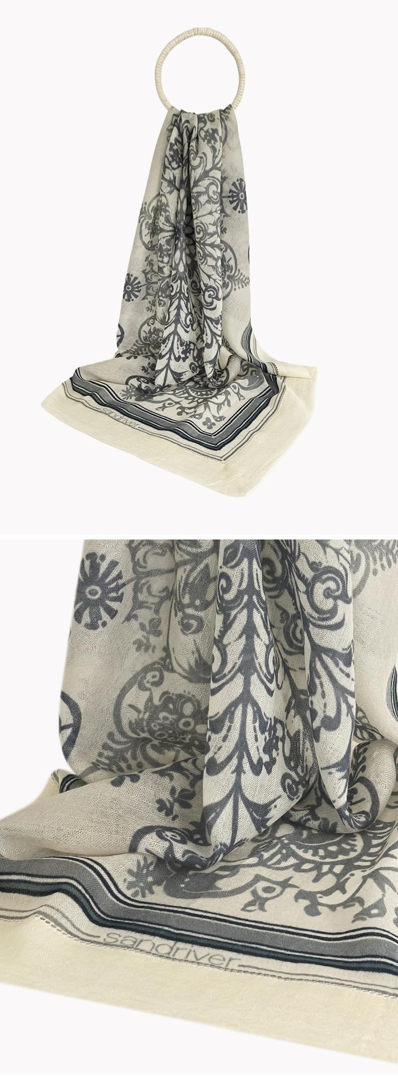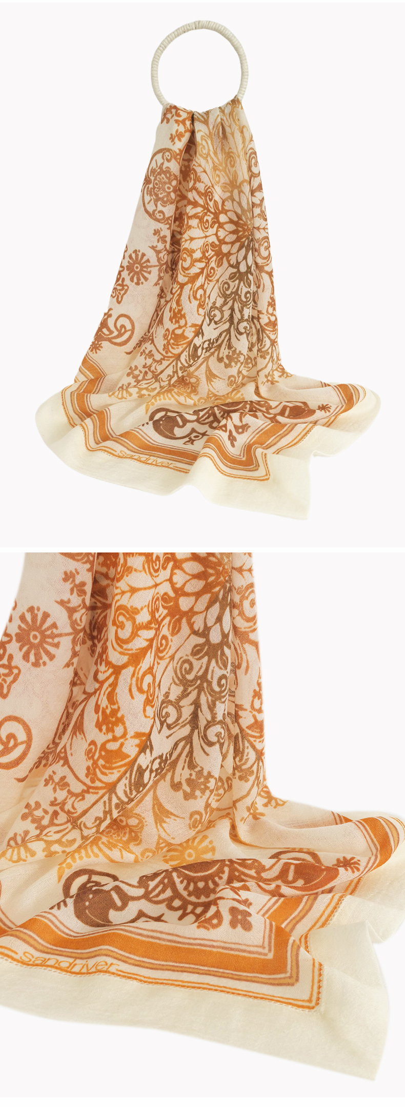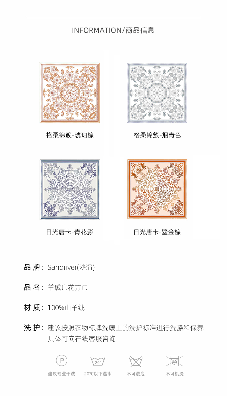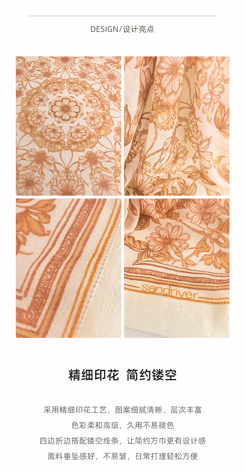 西藏格桑花唐卡印花羊绒轻薄款方巾 SJF98P777N
