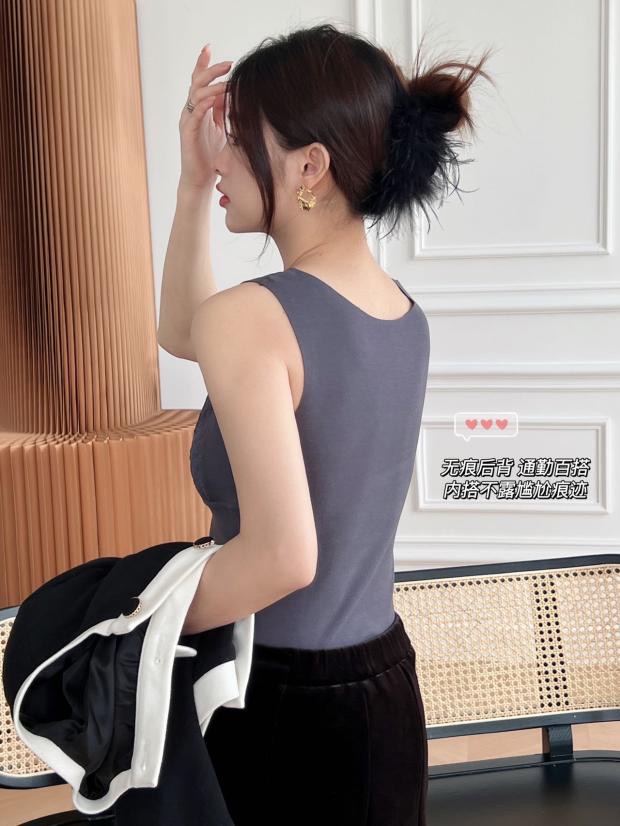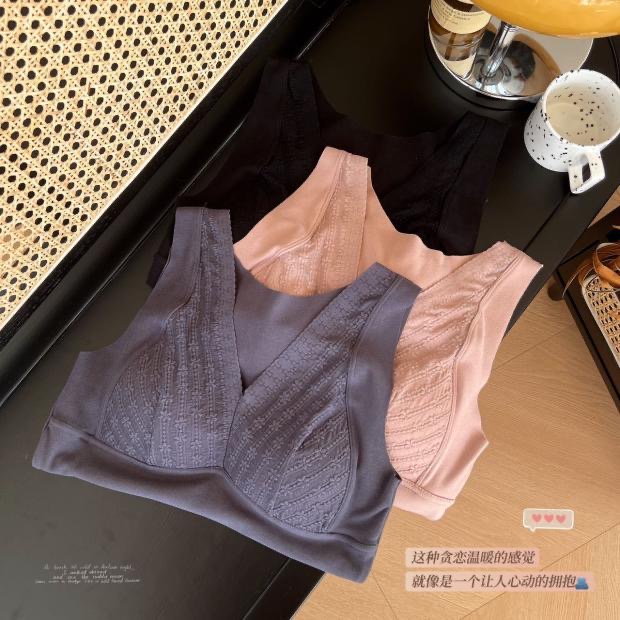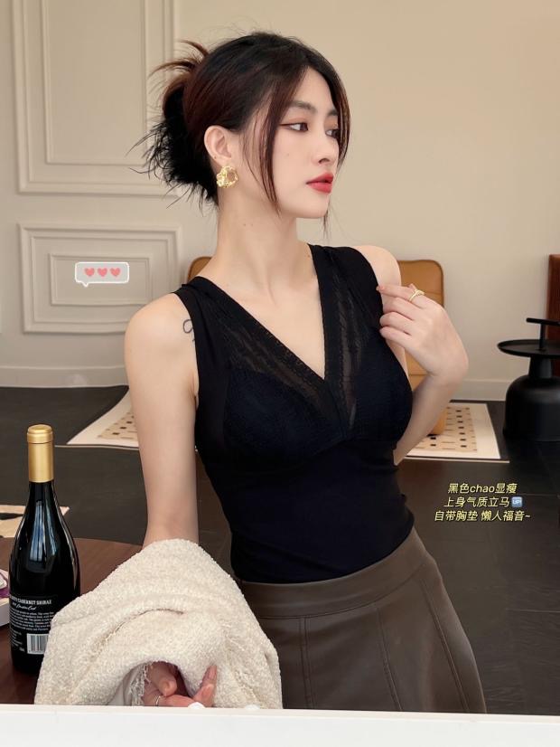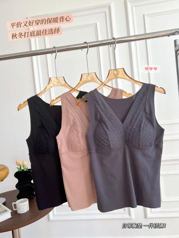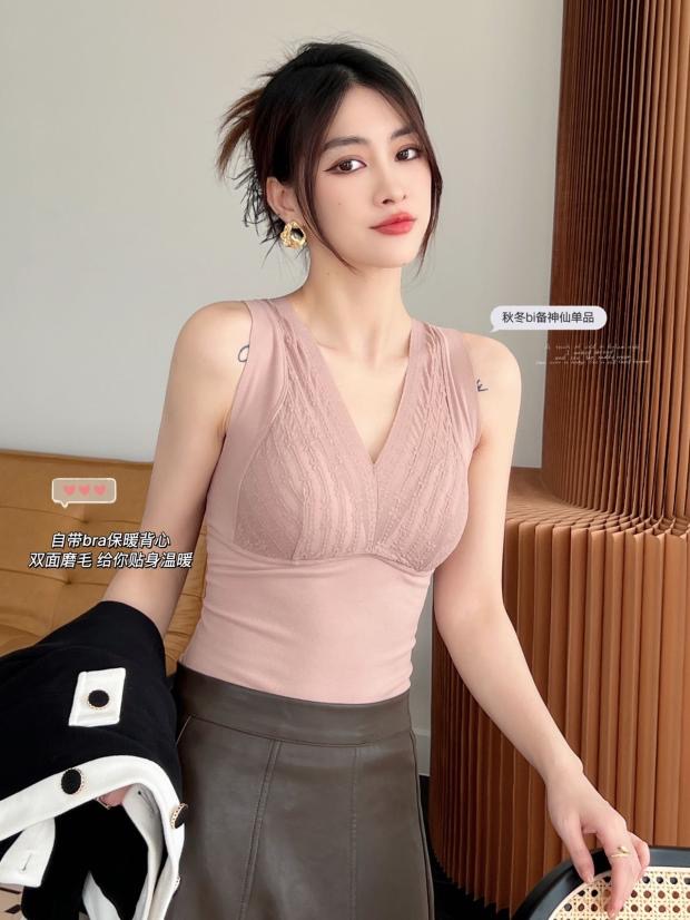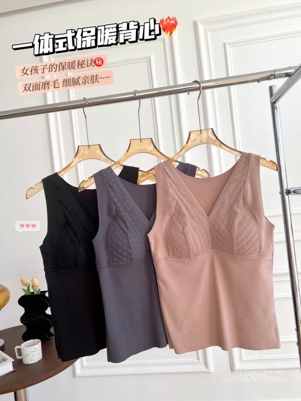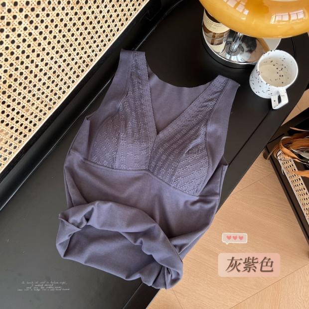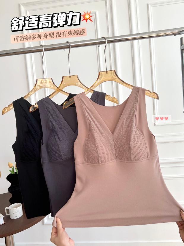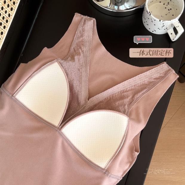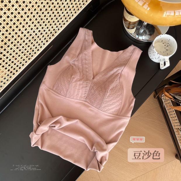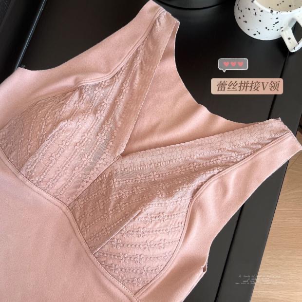 【舒适高弹力❗️蕾丝拼接v领】新款保暖背心女一体式带胸垫打底上衣自发热保暖内衣